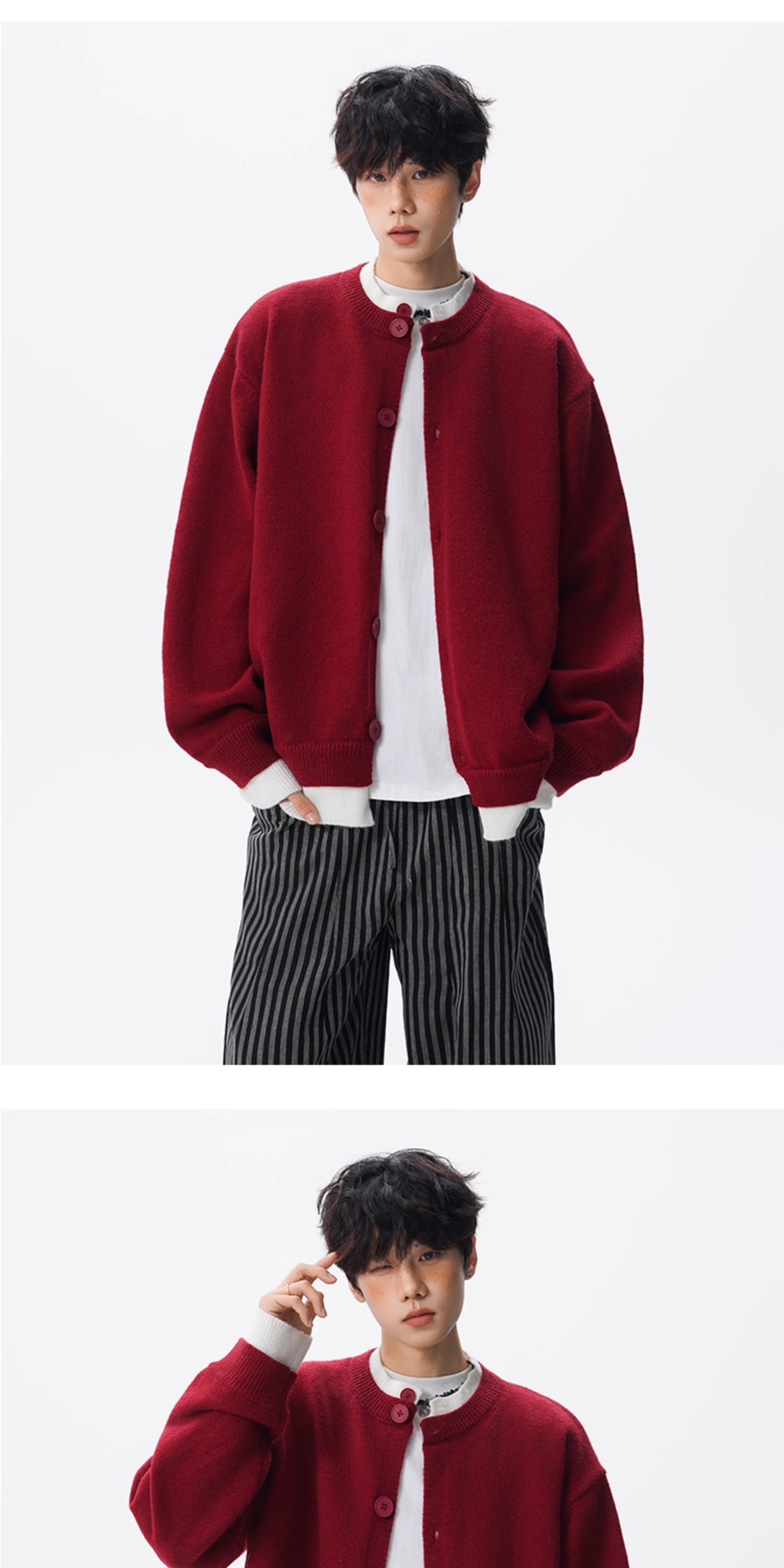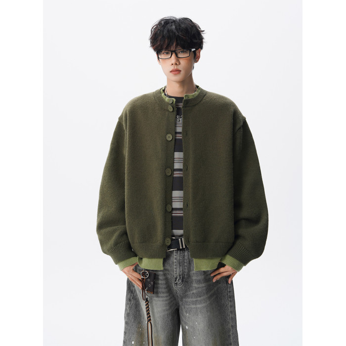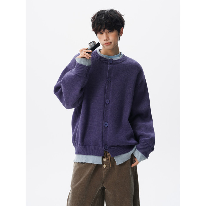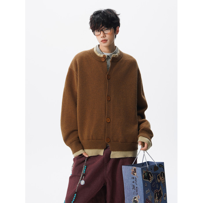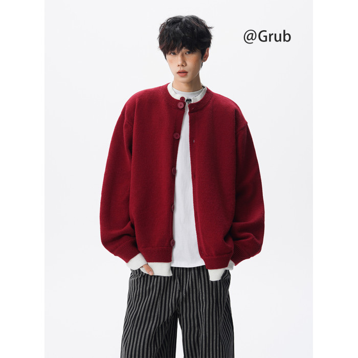 安哥拉紅針織衫開衫男女冬國潮假兩件情侶毛衣復古慵懶風線衣外套