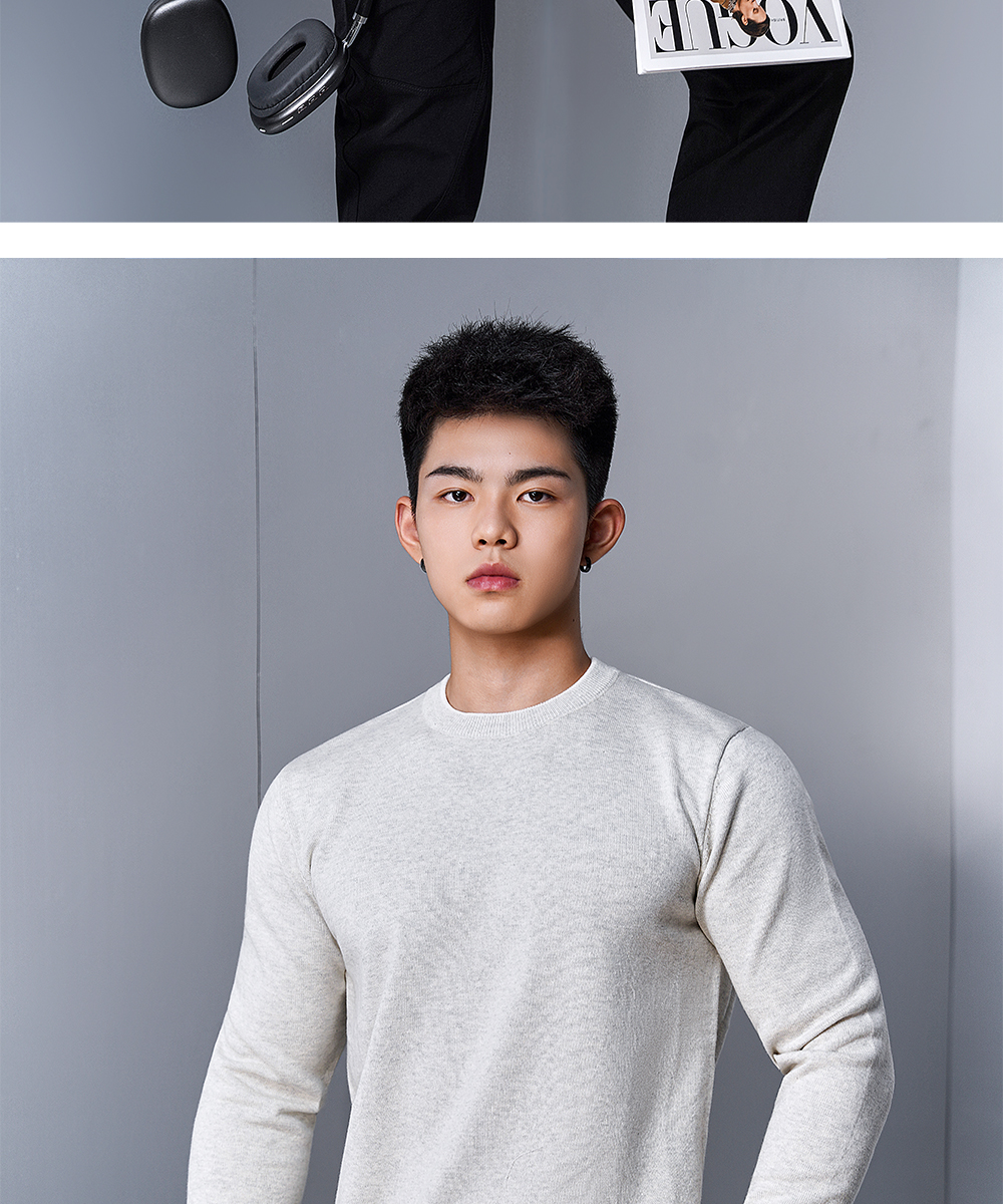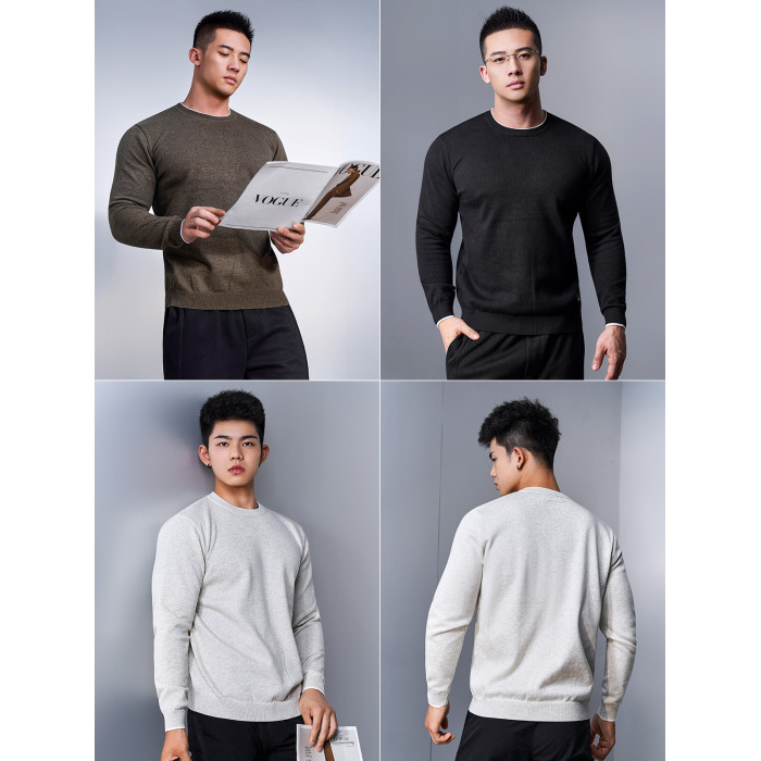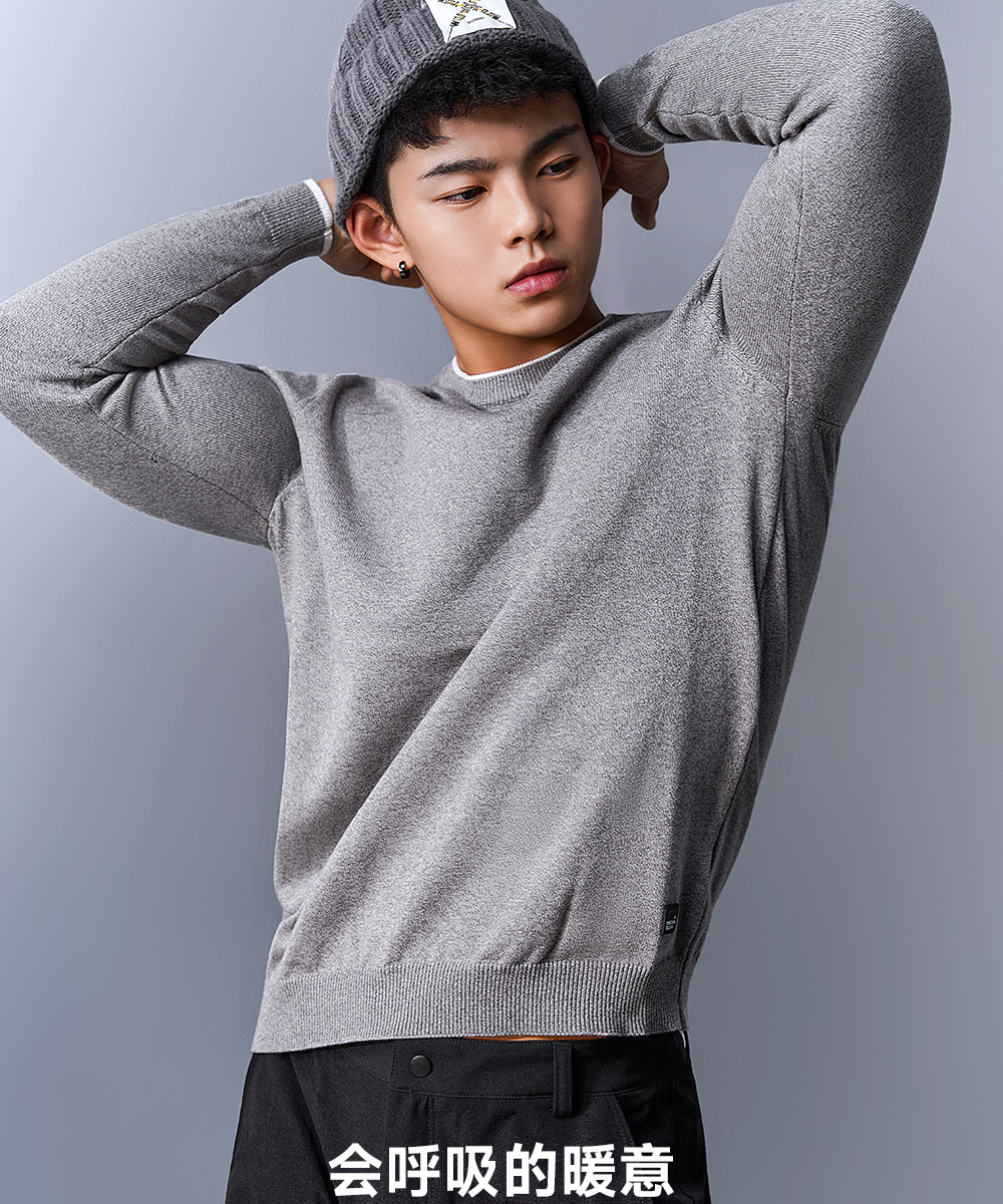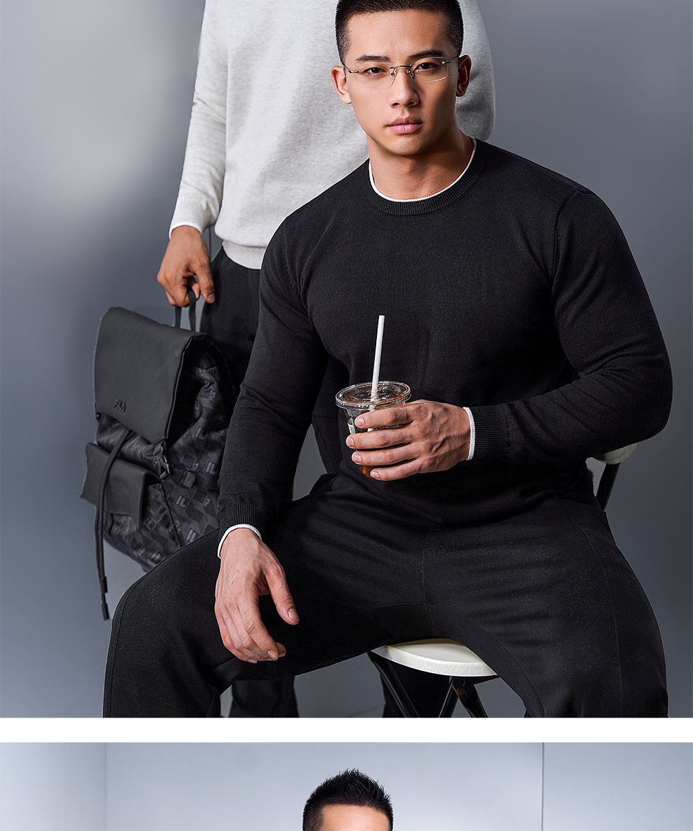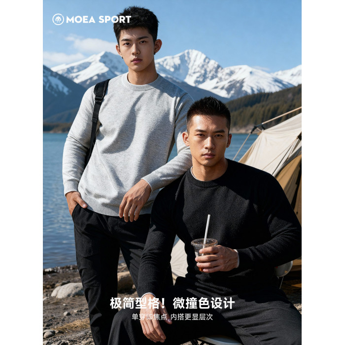 墨立方男士秋冬季圓領套頭毛衣純色內搭2025冬季加厚打底針織衫潮