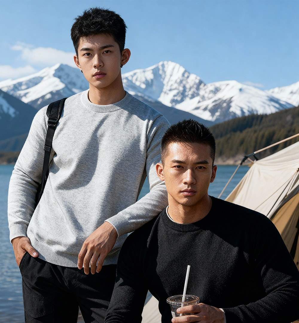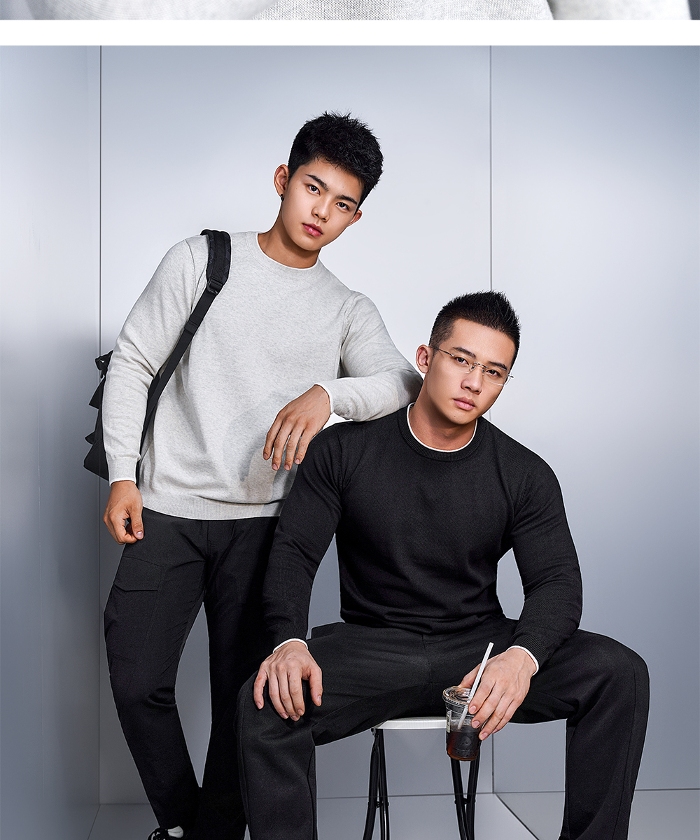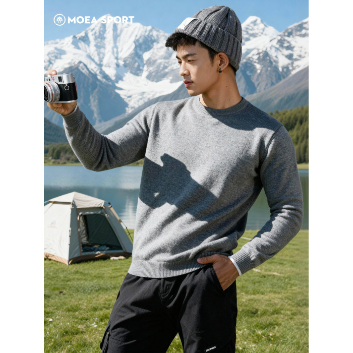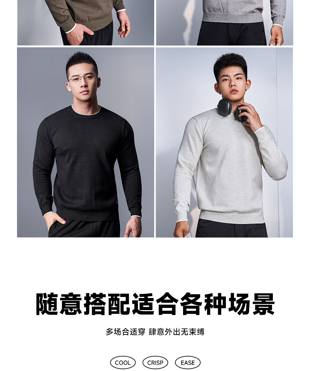 墨立方男士秋冬季圓領套頭毛衣純色內搭2025冬季加厚打底針織衫潮
