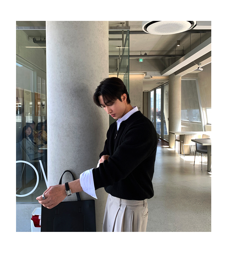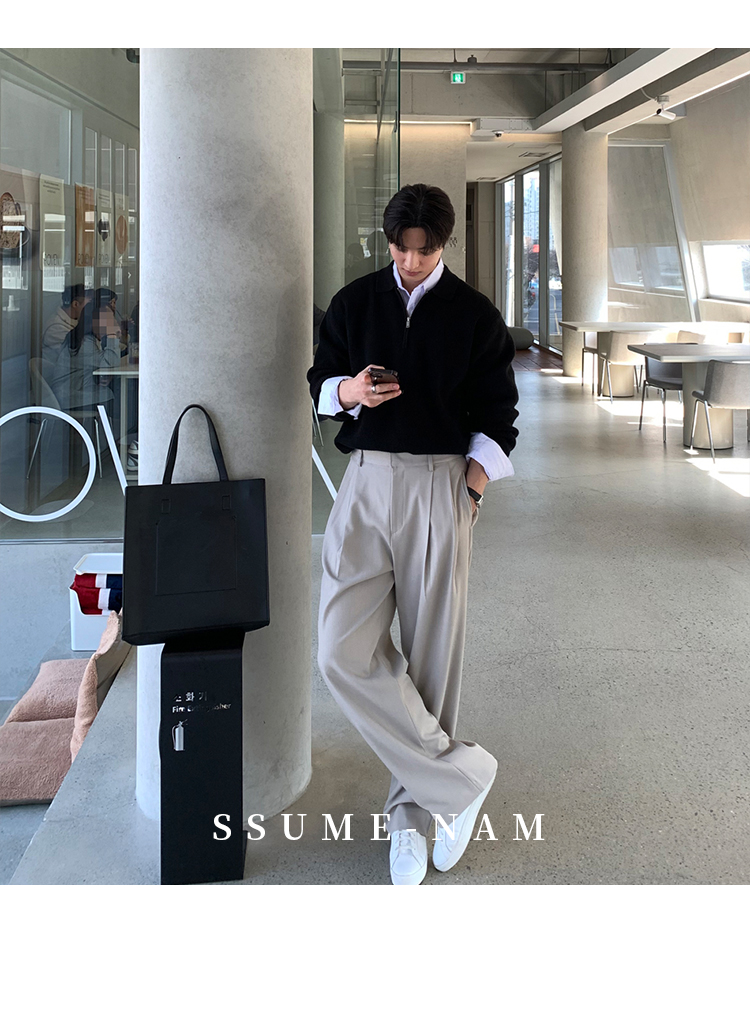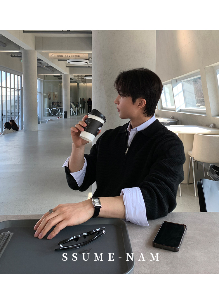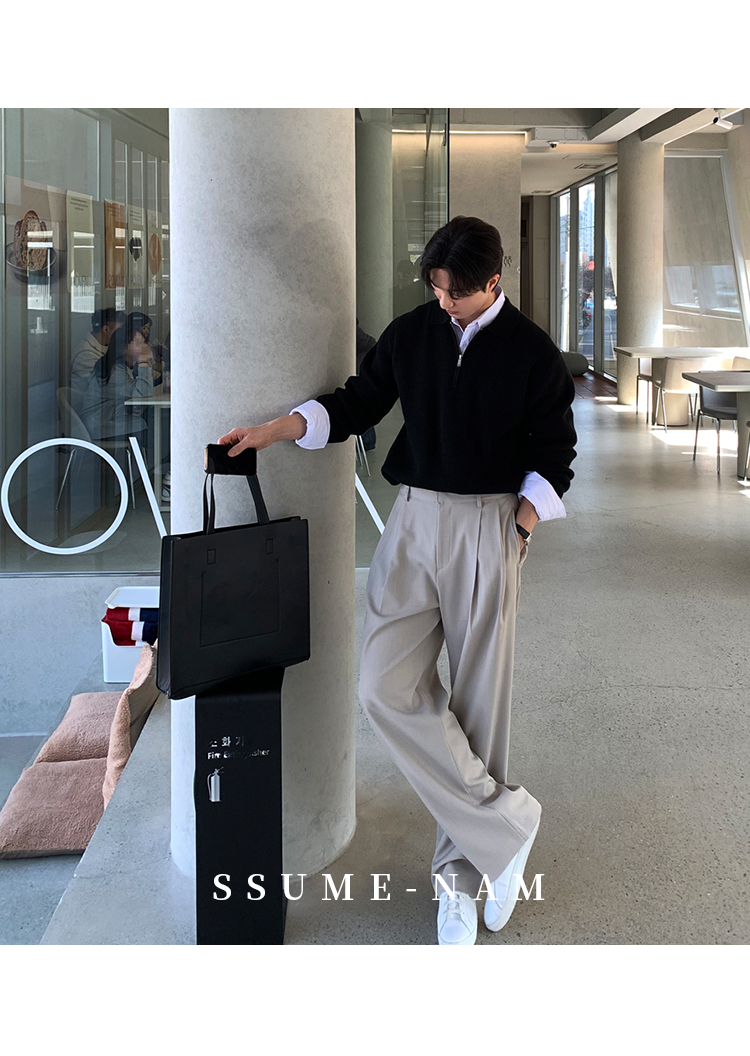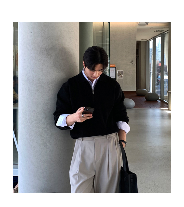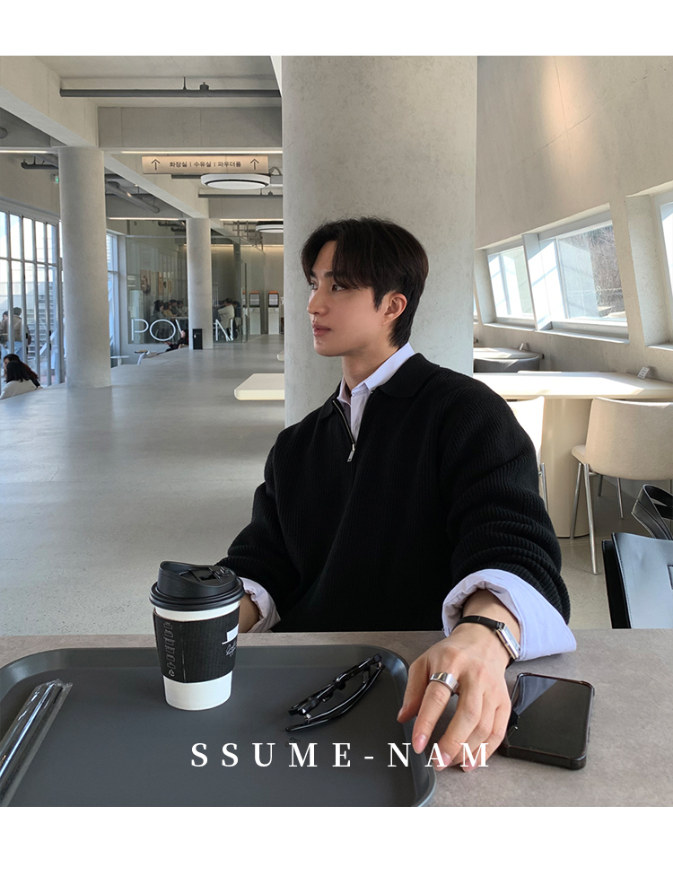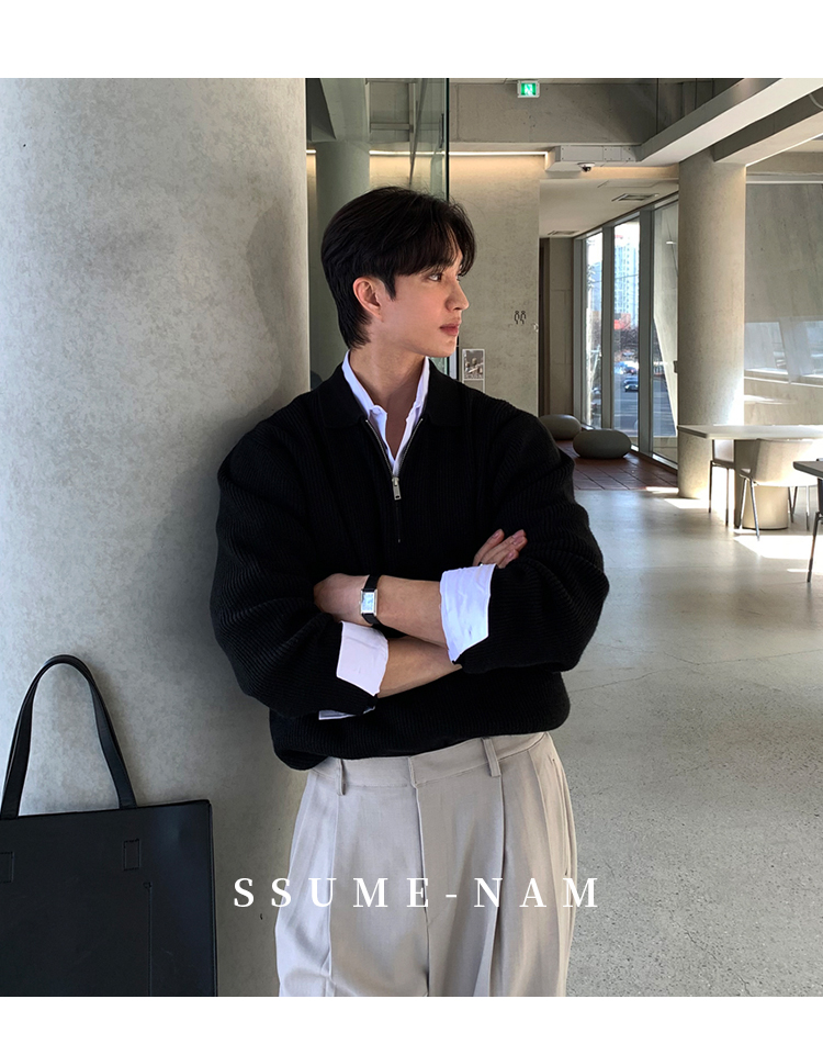 SSUMENAM「老錢風 半拉鍊」灰色POLO衫毛衣男秋季高級翻領針織衫