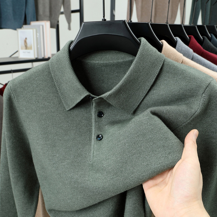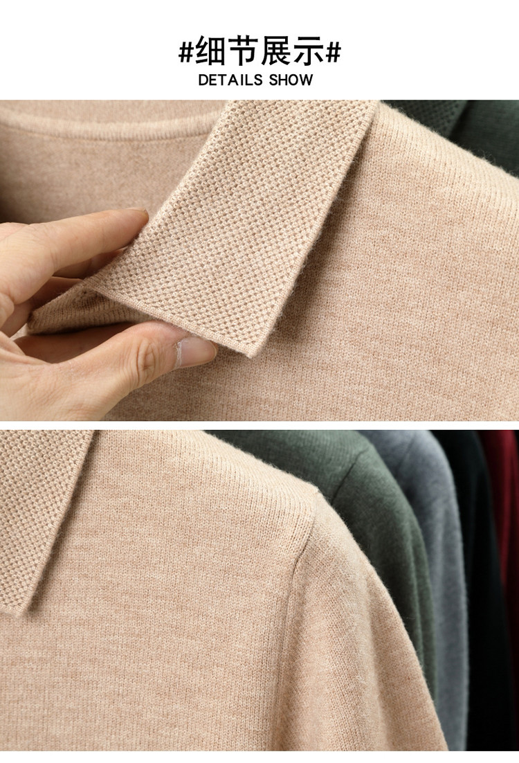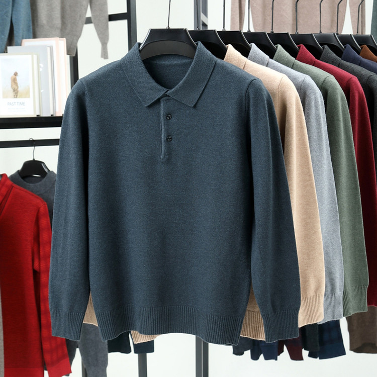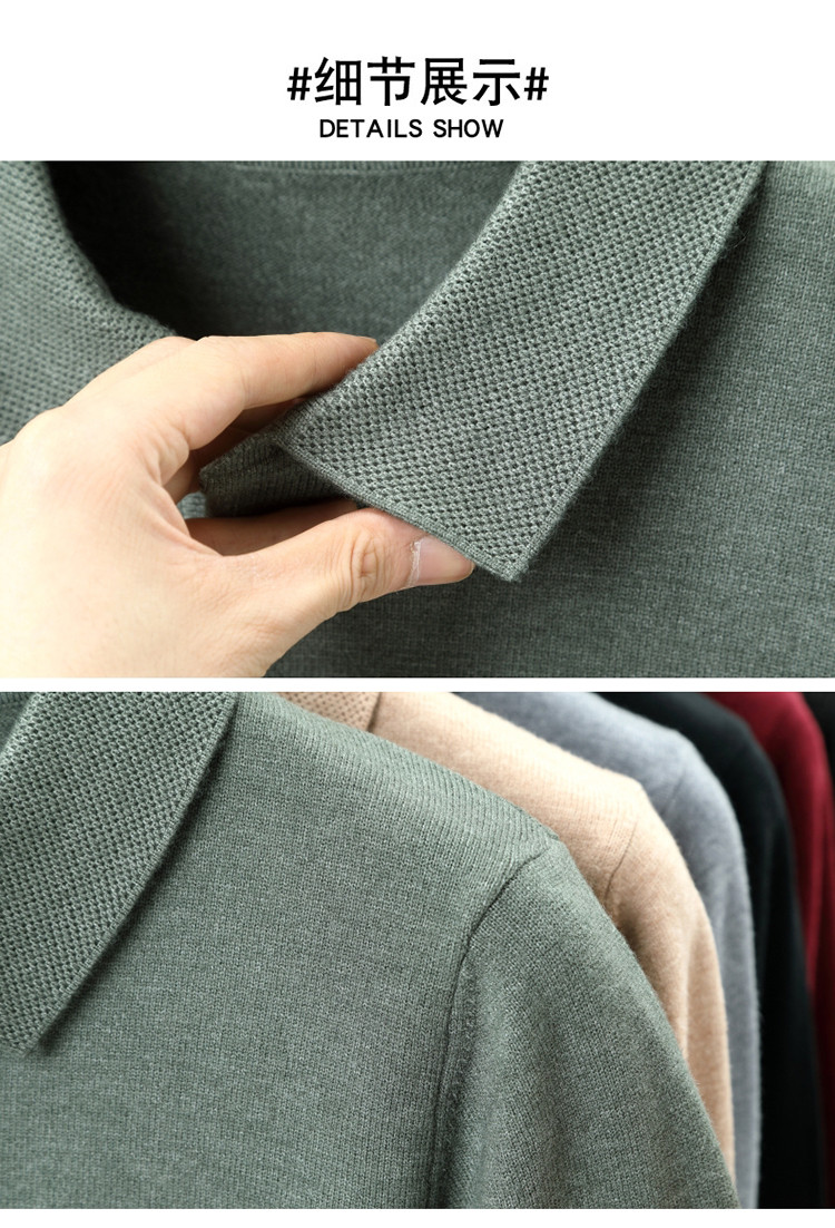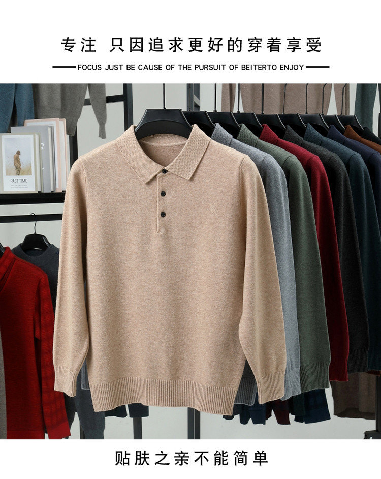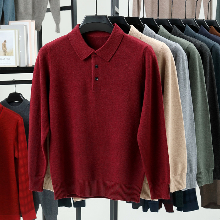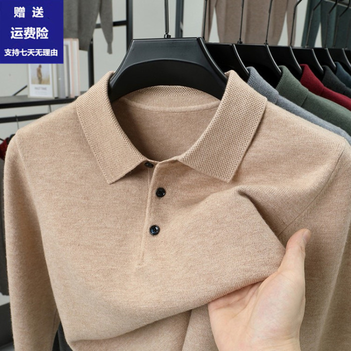 秋冬季新款男士polo領套頭毛衫中老年保暖百搭長袖毛衣針織打底衫