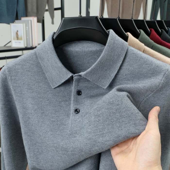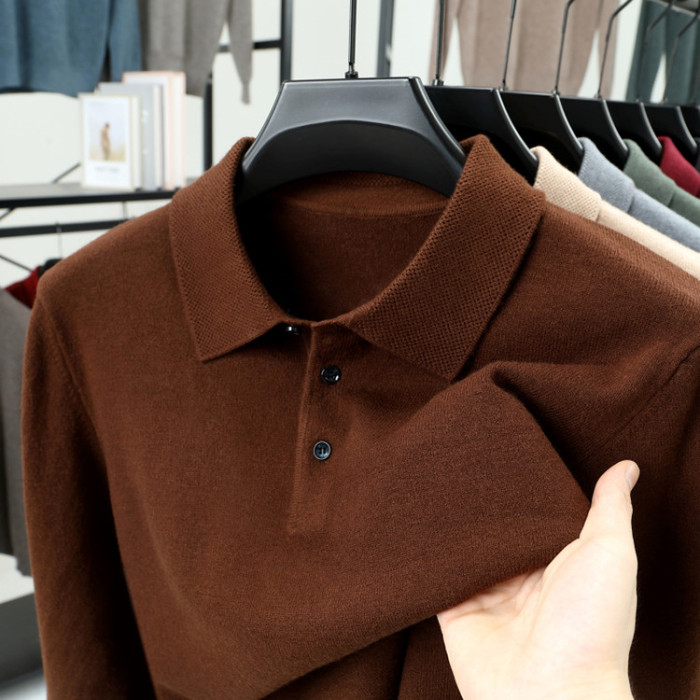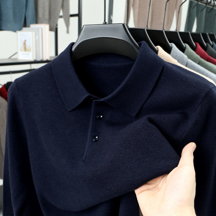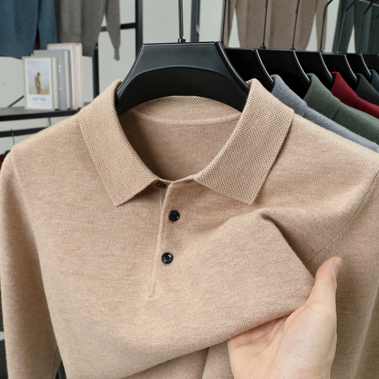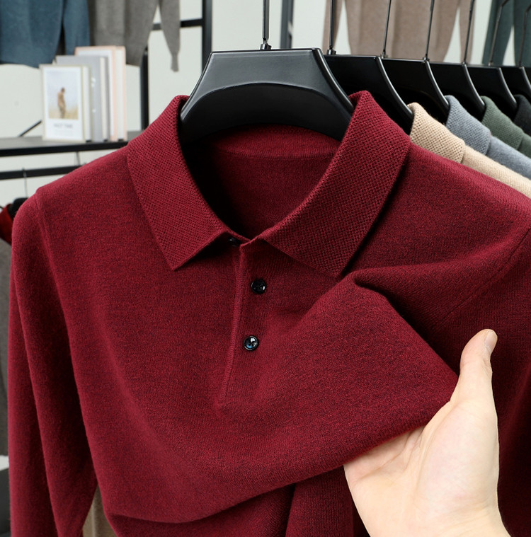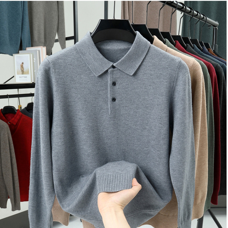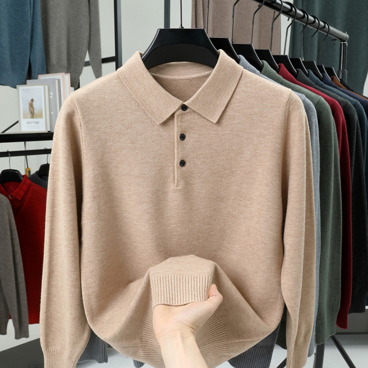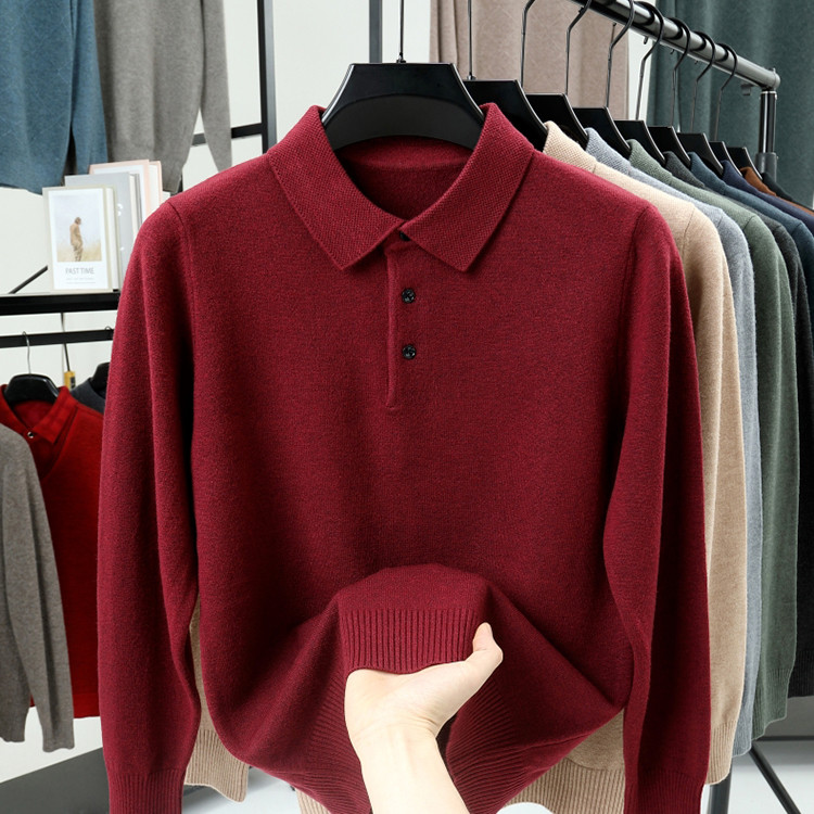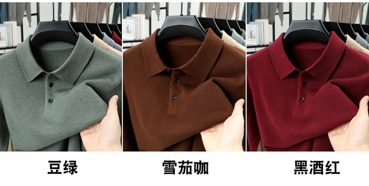 秋冬季新款男士polo領套頭毛衫中老年保暖百搭長袖毛衣針織打底衫