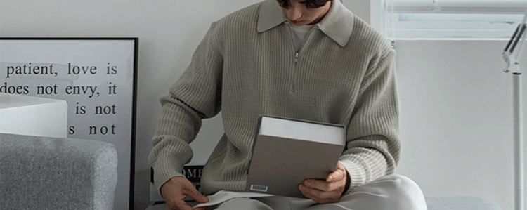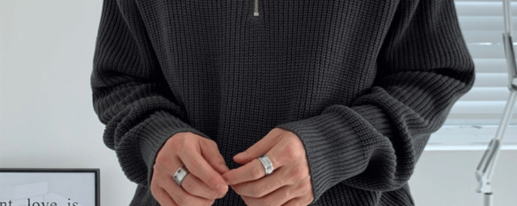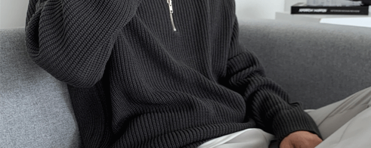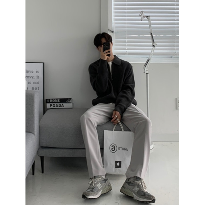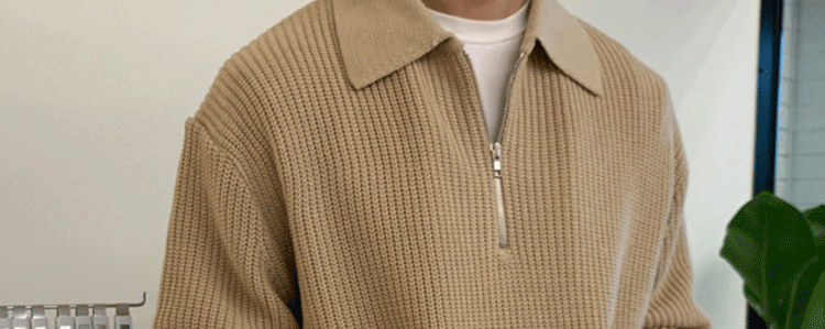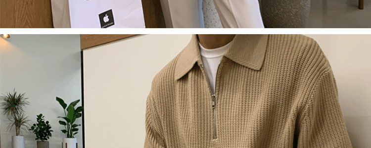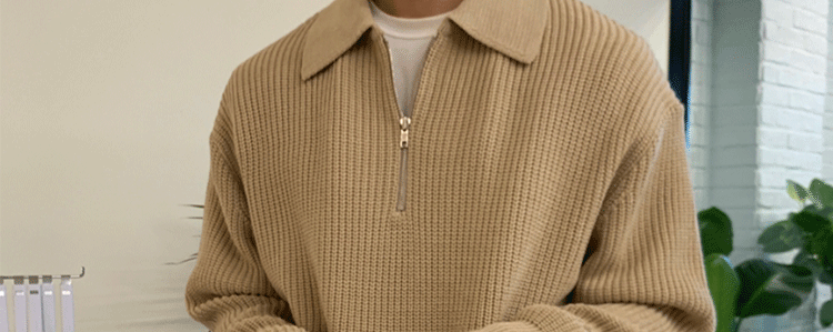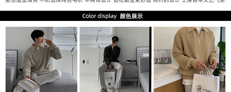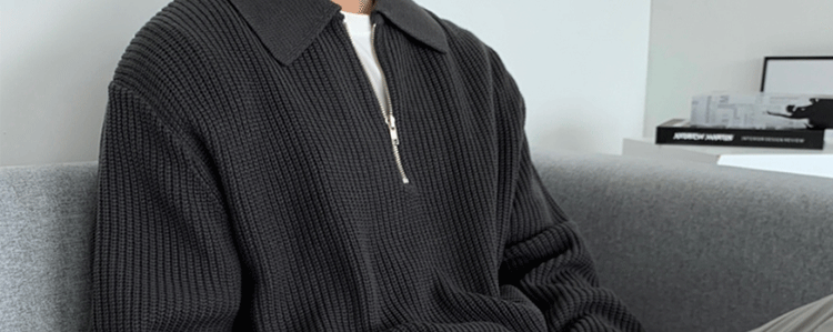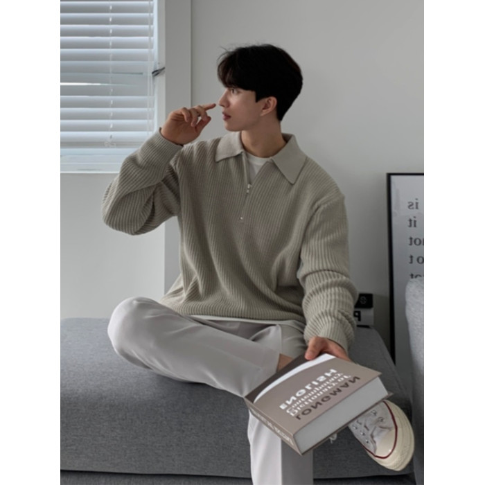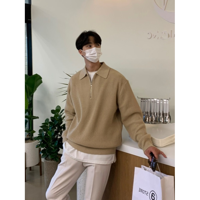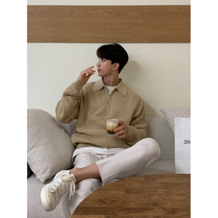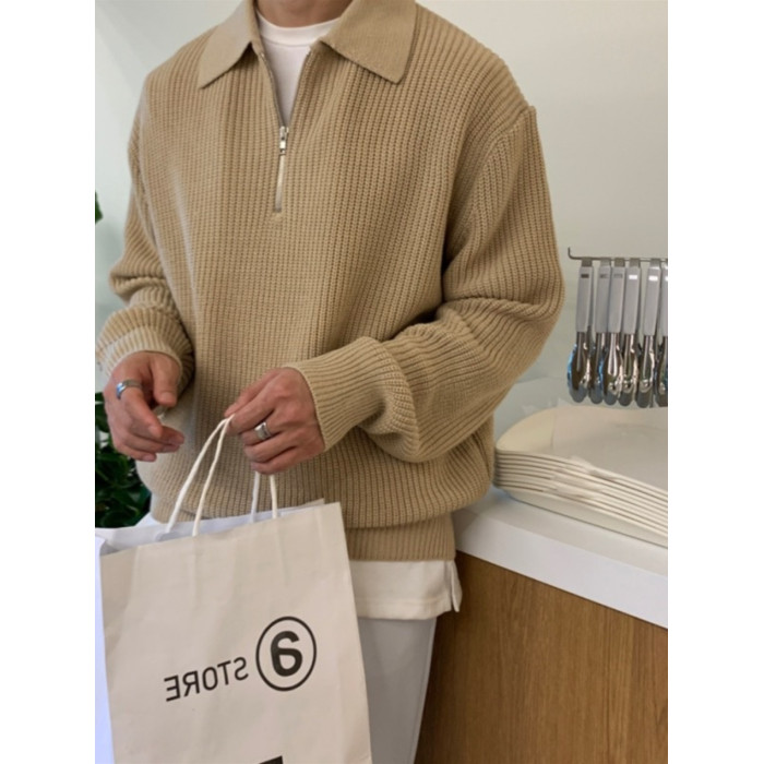 半拉鍊毛衣男秋冬款日系復古高級感慵懶風翻領針織衫寬松休閒線衣