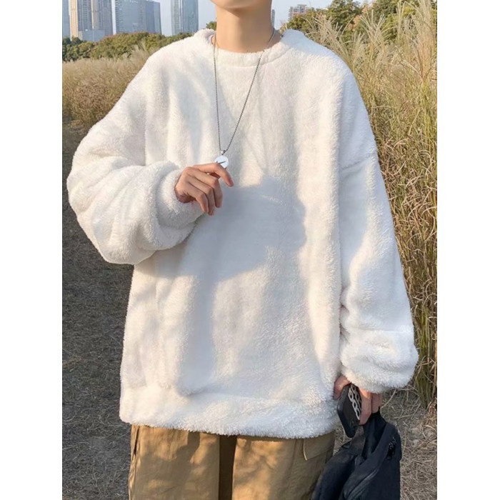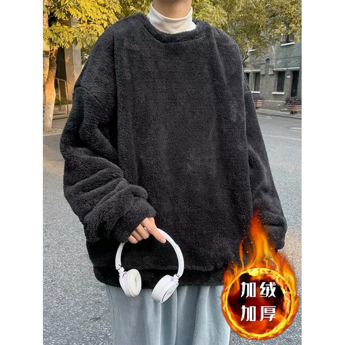 港風潮牌毛絨衛衣男韓版潮流百搭寬松保暖秋冬毛衣情侶外套打底衫