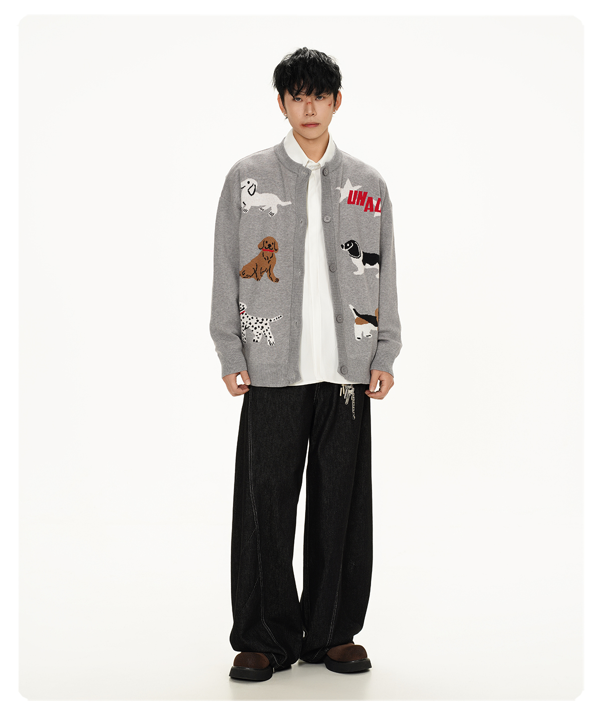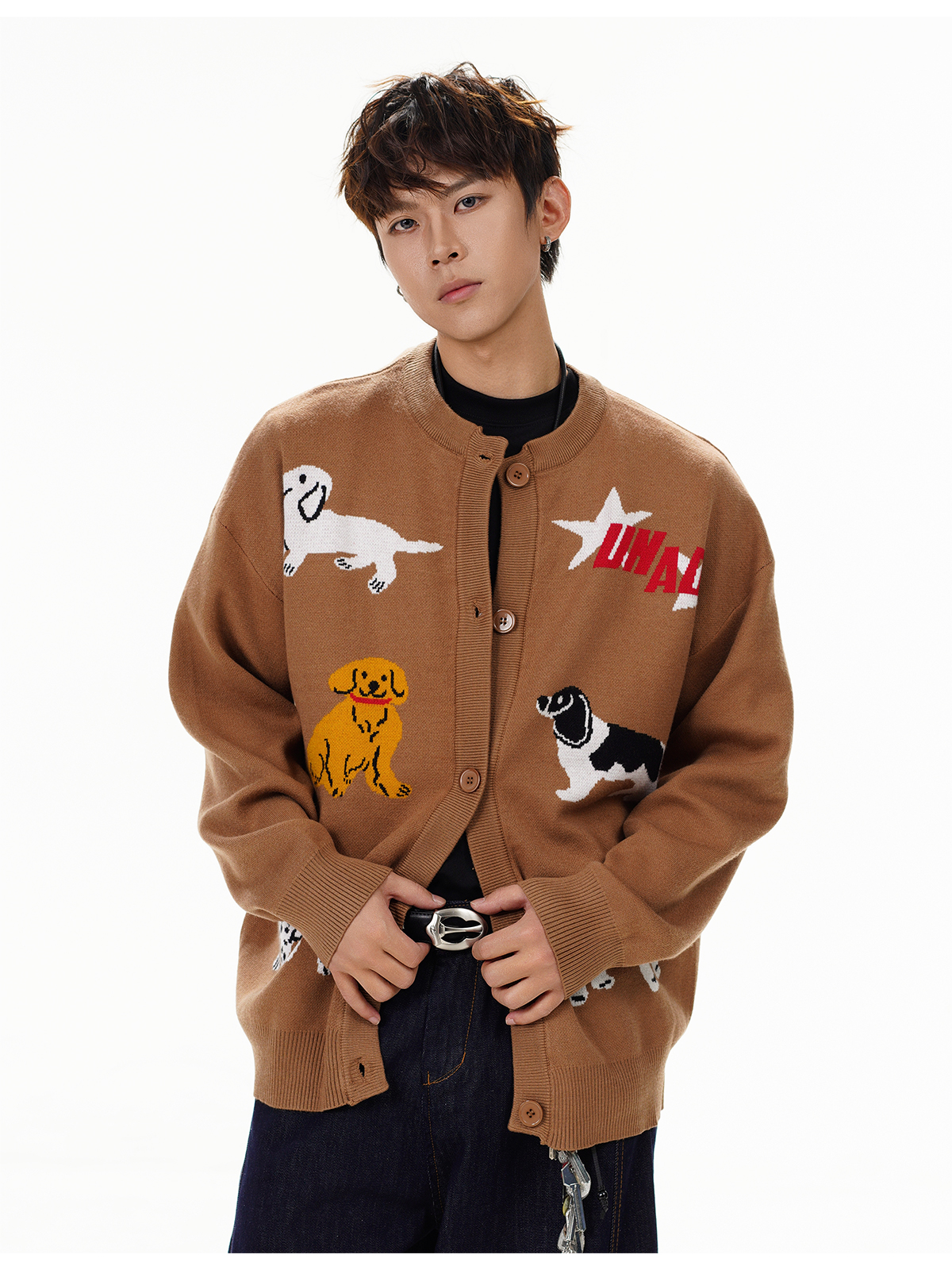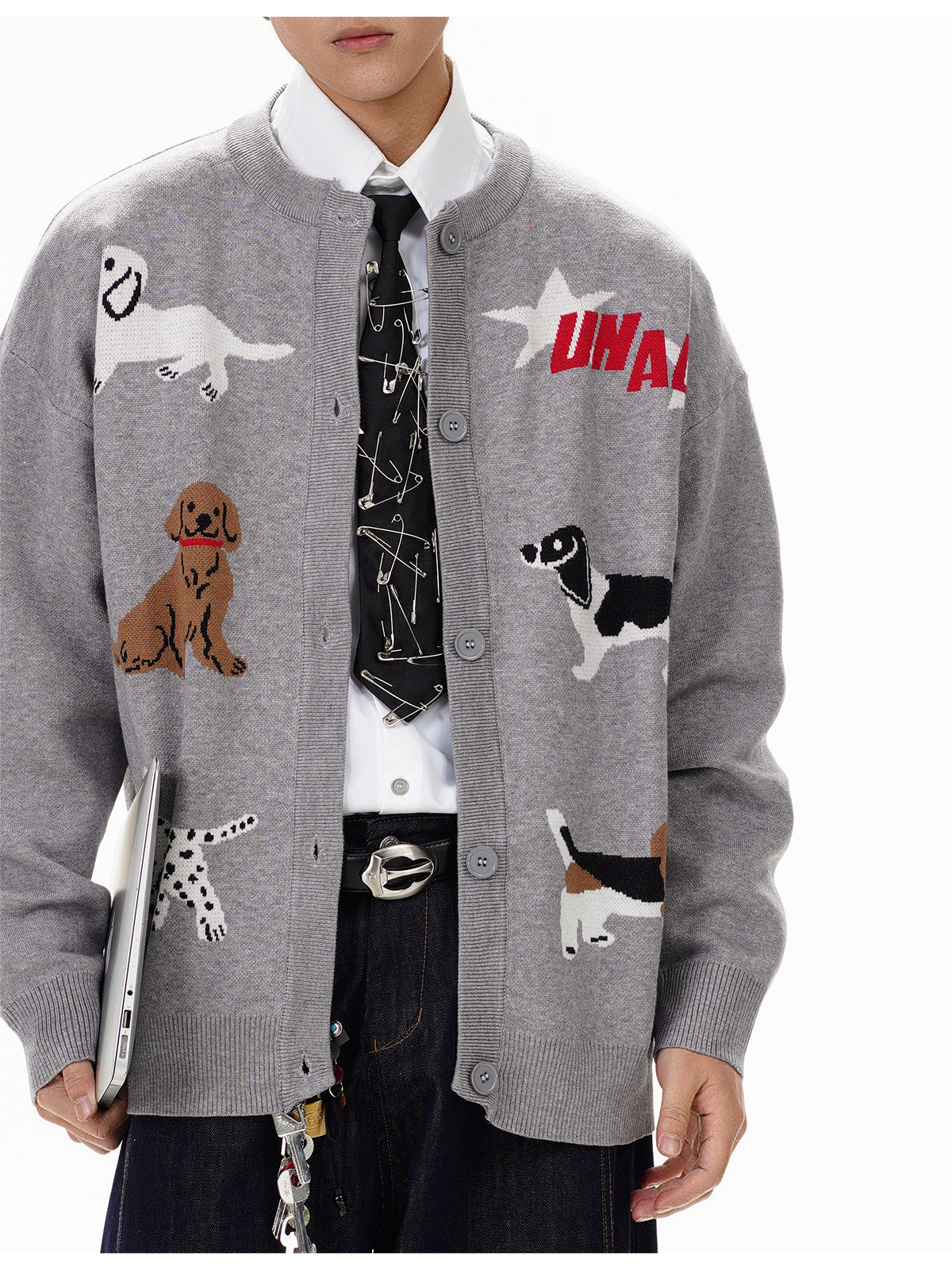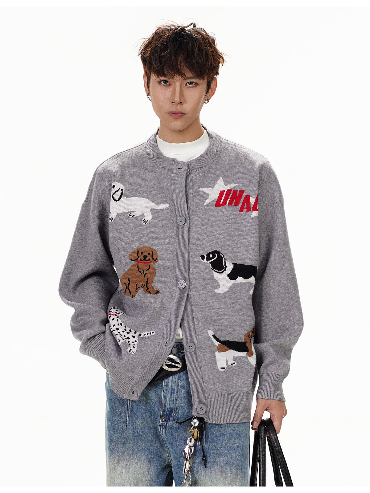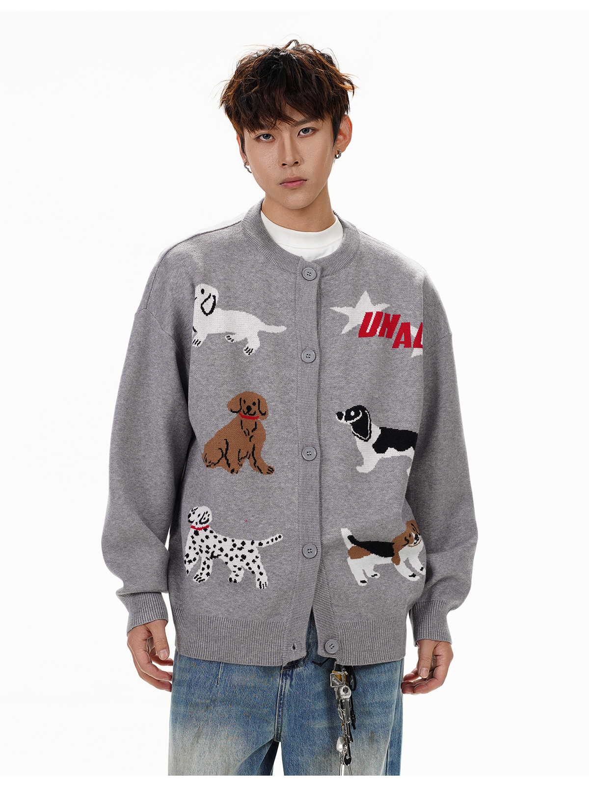 GCINIM401秋季新款慵懶風毛衣美式復古趣味卡通小狗刺綉針織開衫