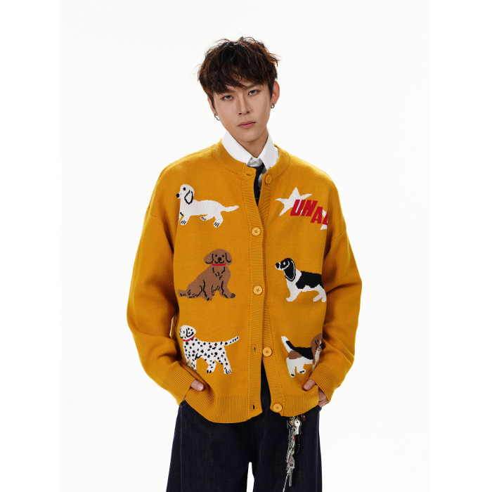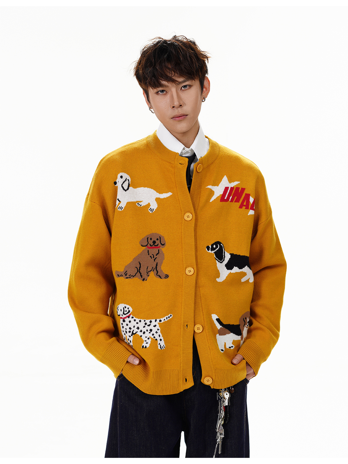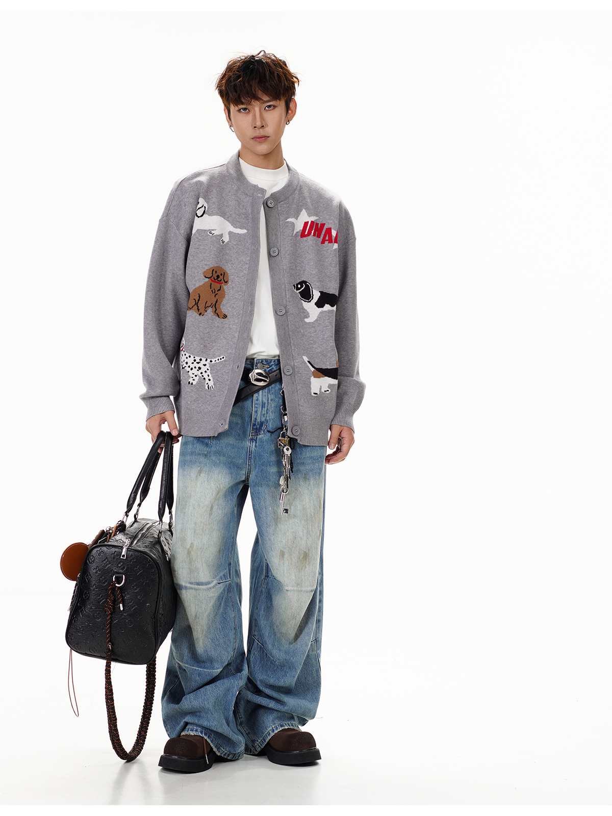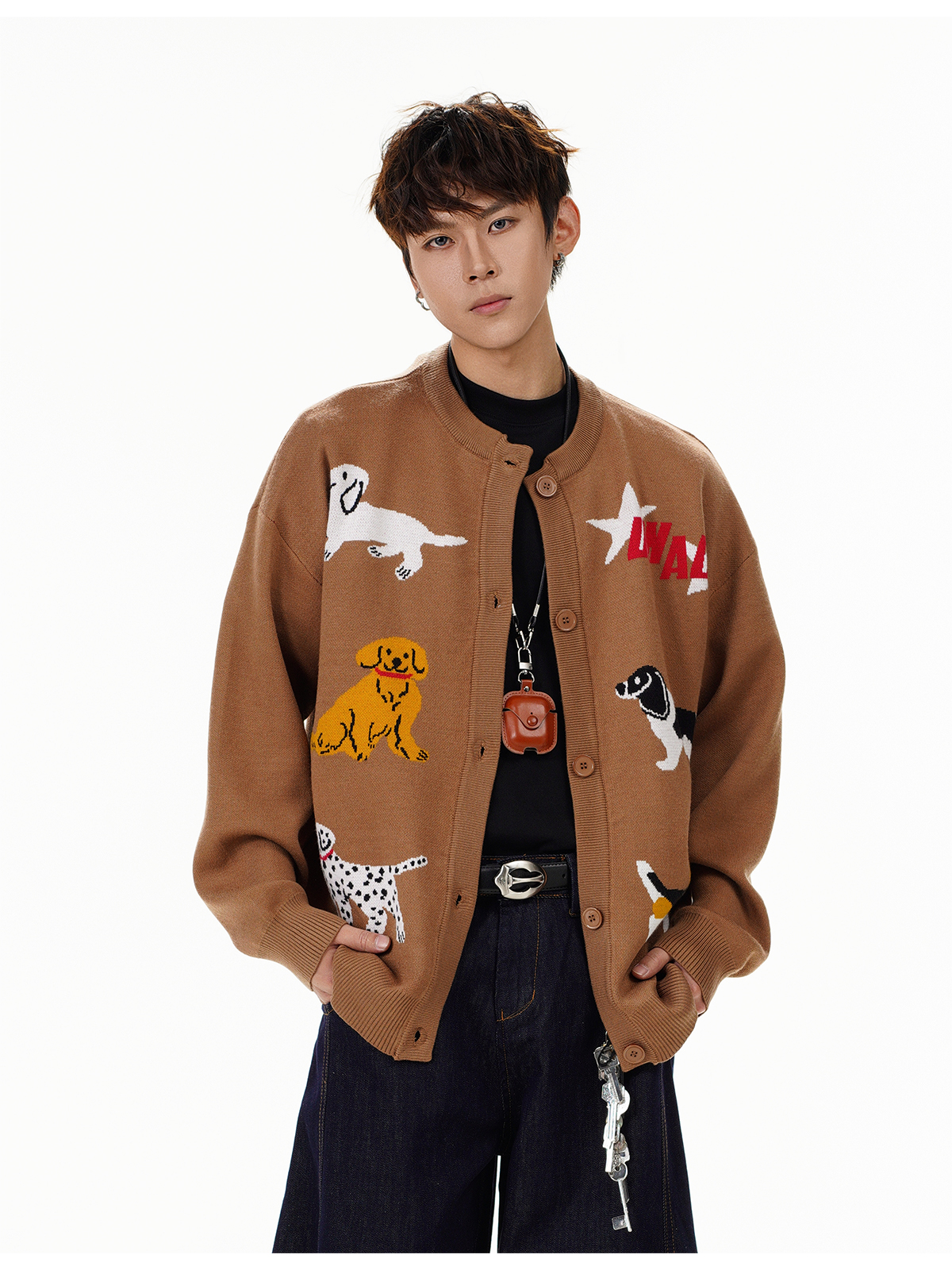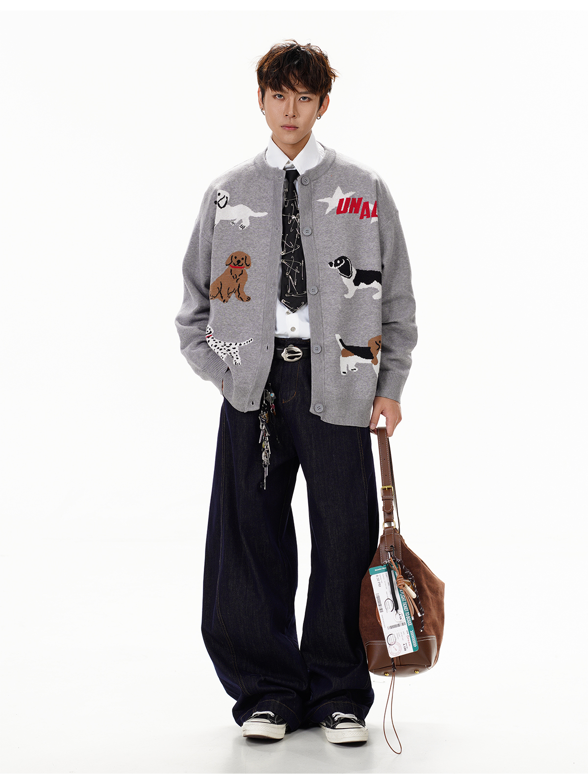 GCINIM401秋季新款慵懶風毛衣美式復古趣味卡通小狗刺綉針織開衫
