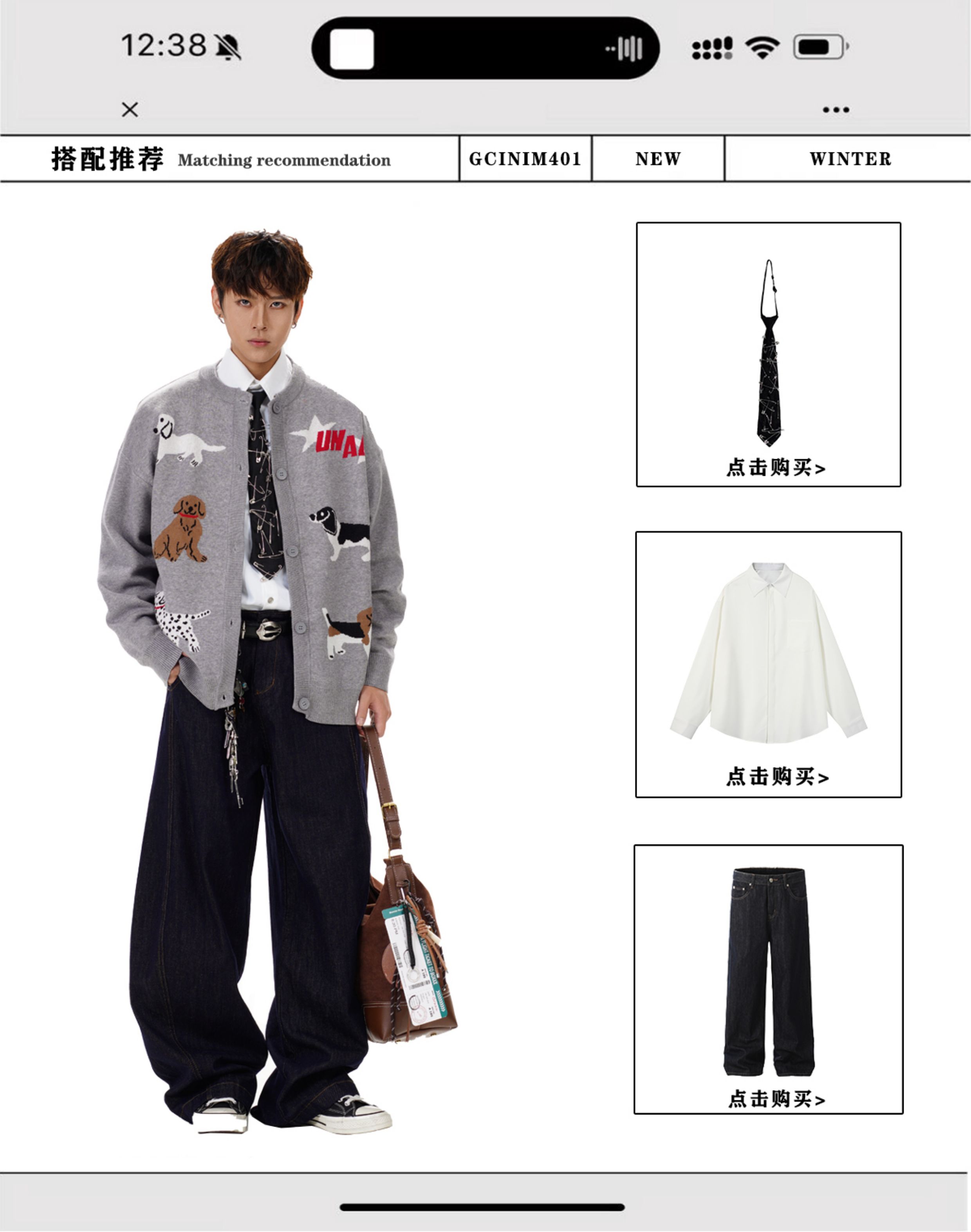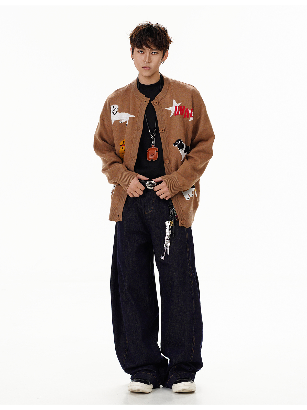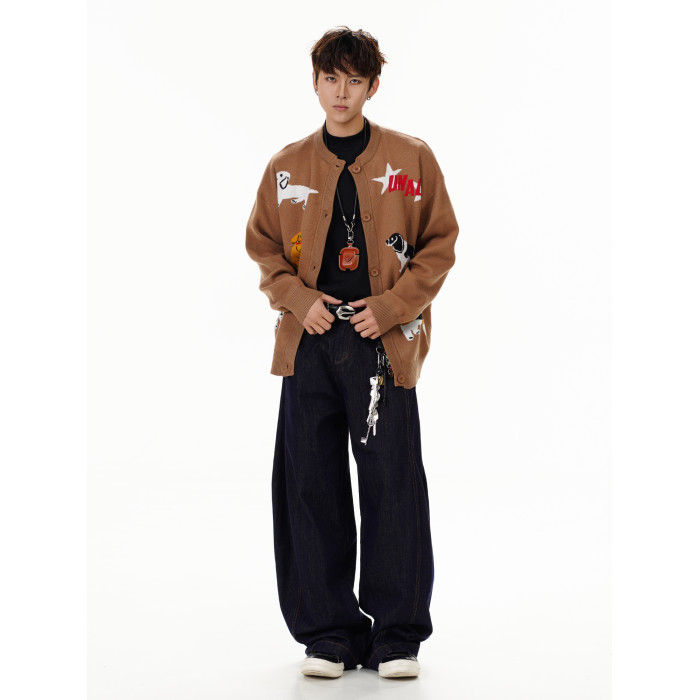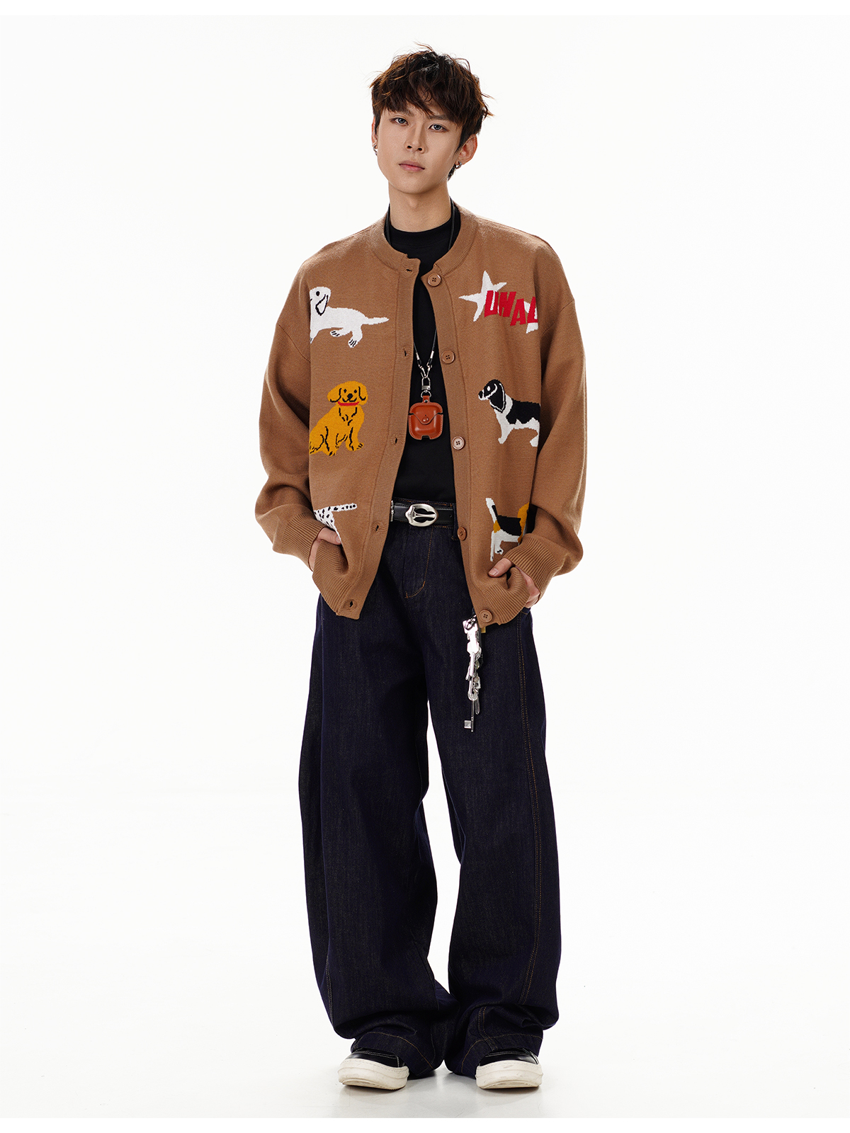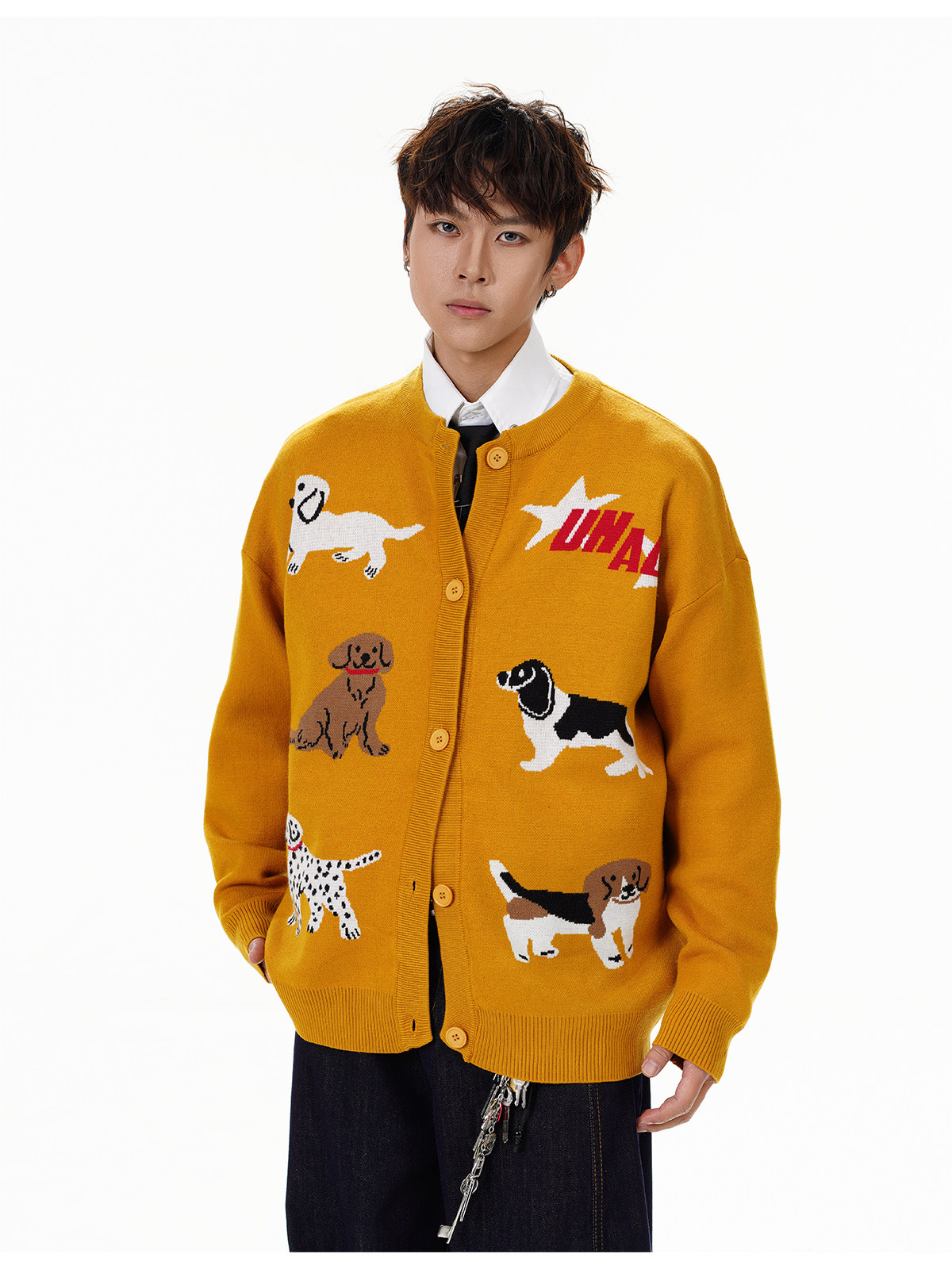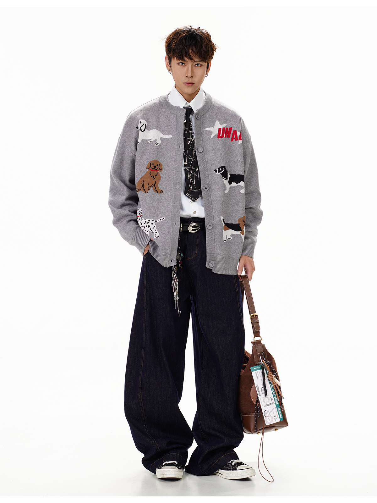 GCINIM401秋季新款慵懶風毛衣美式復古趣味卡通小狗刺綉針織開衫