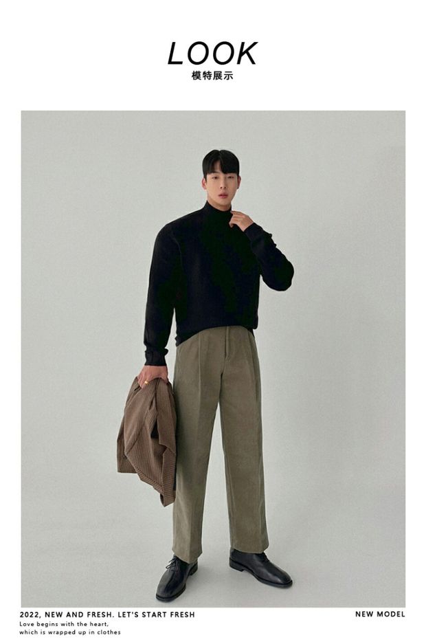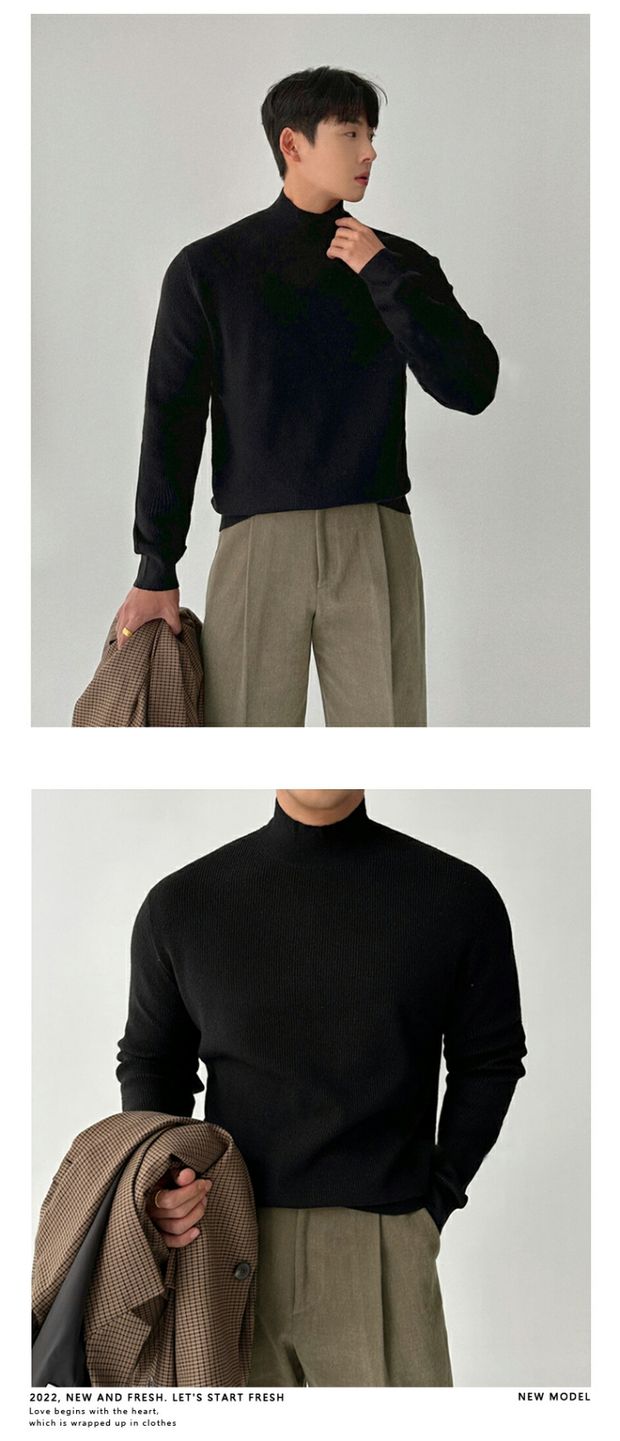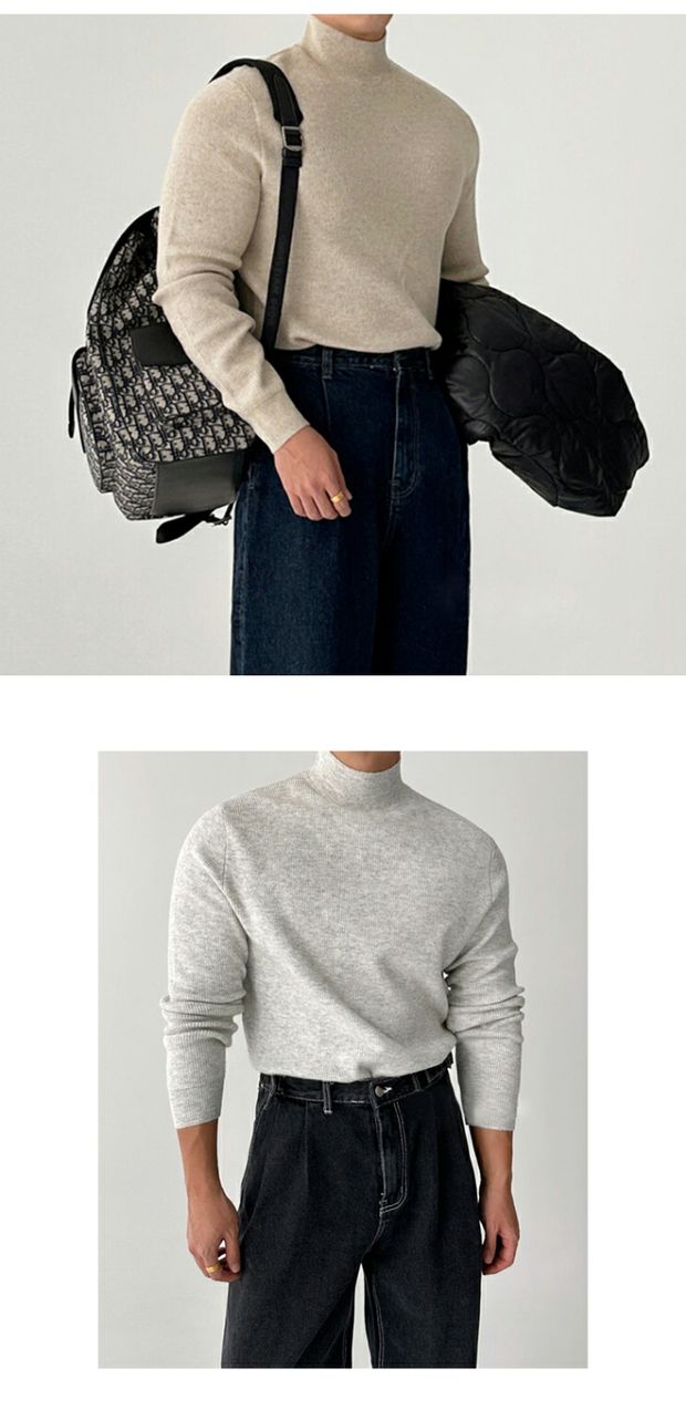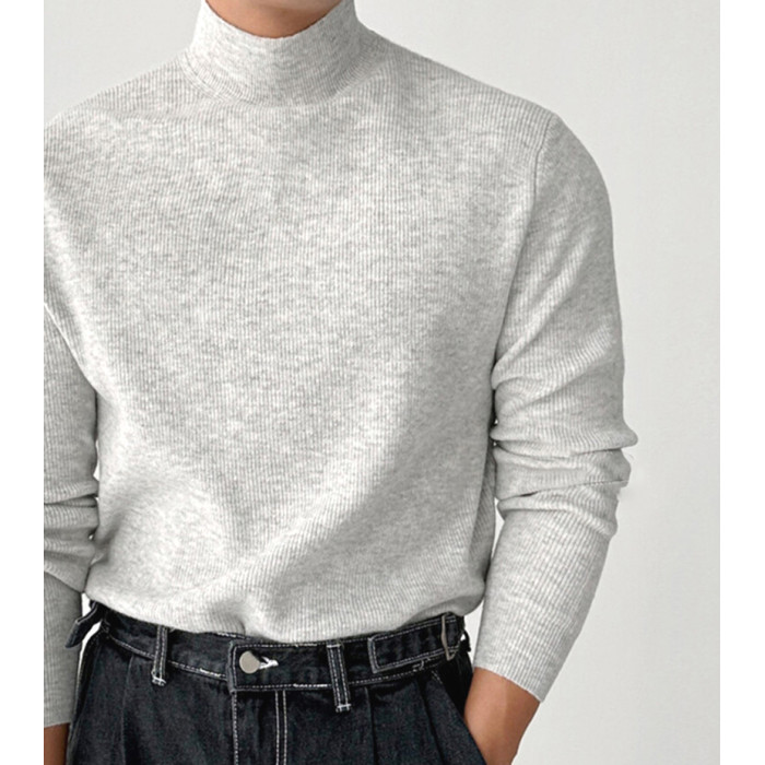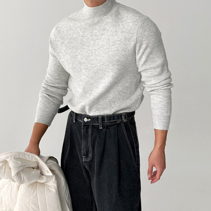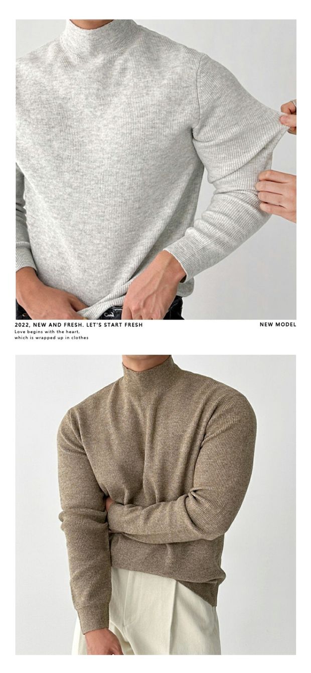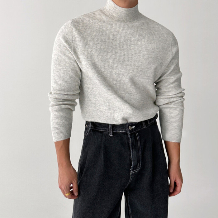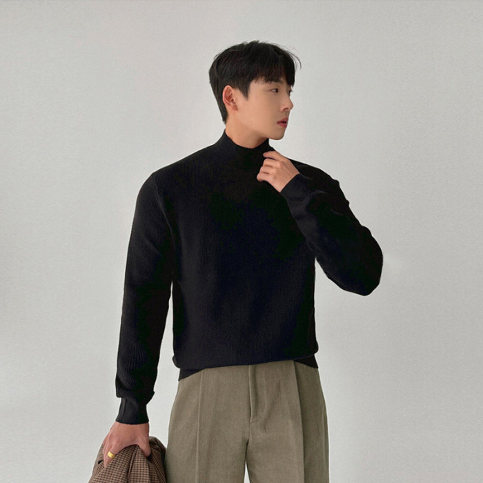 歐貨高級包芯紗針織衫男美式修身型半高領純色毛衣內搭打底羊毛衫