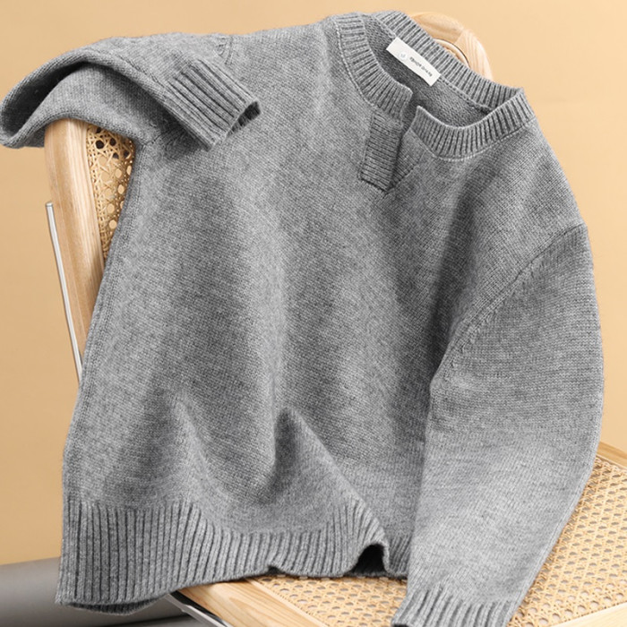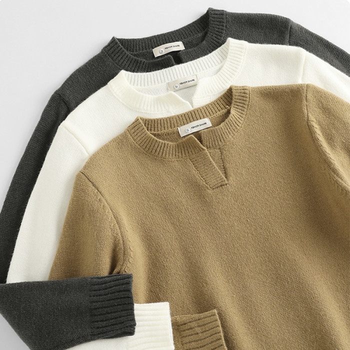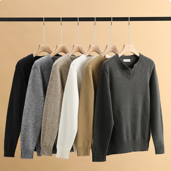 秋冬V領男品質螺紋毛線上衣純色休閒長袖針織打底衫內搭毛衣外套