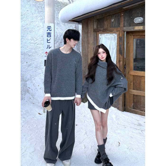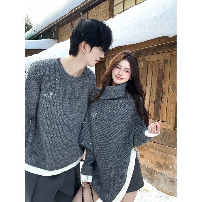 小衆設計感情侶裝毛衣秋冬cleanfit高領不規則氣質鬭篷針織衫外套
