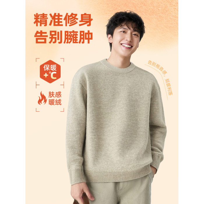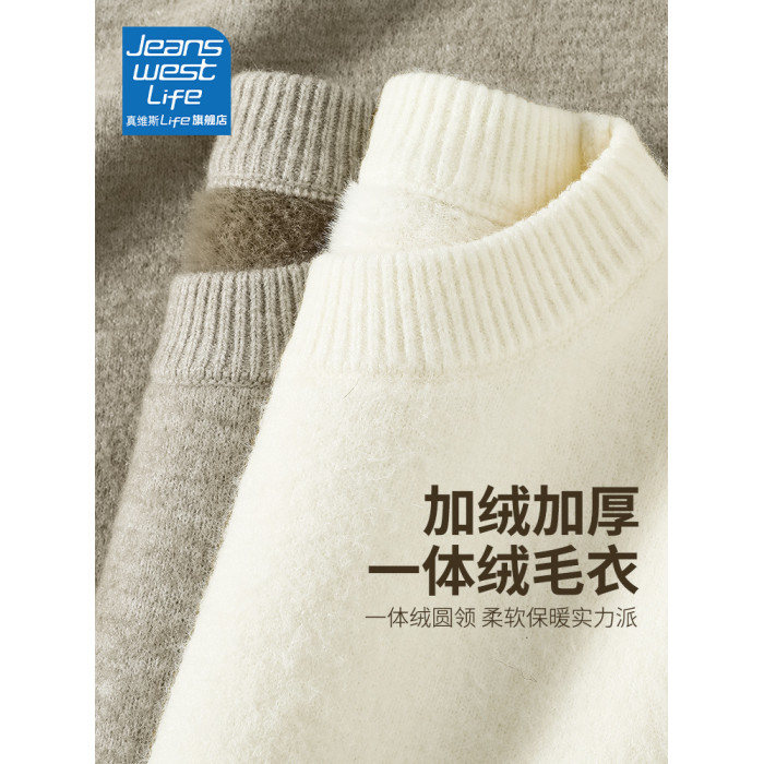 真維斯LIFE加絨加厚毛衣男冬季重磅一體絨保暖毛線衣男士針織衫M