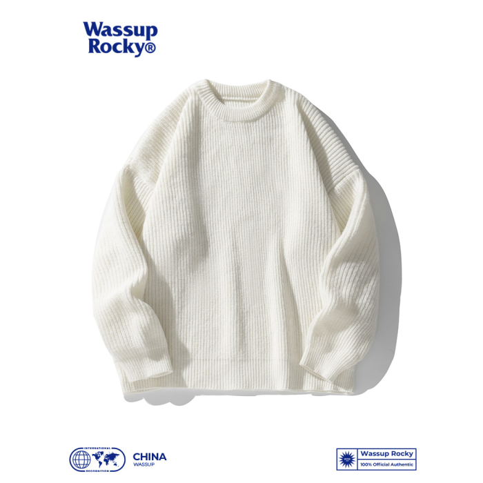 WASSUP ROCKY復古純色百搭圓領毛衣打底衫男秋冬季保暖針織衫外套