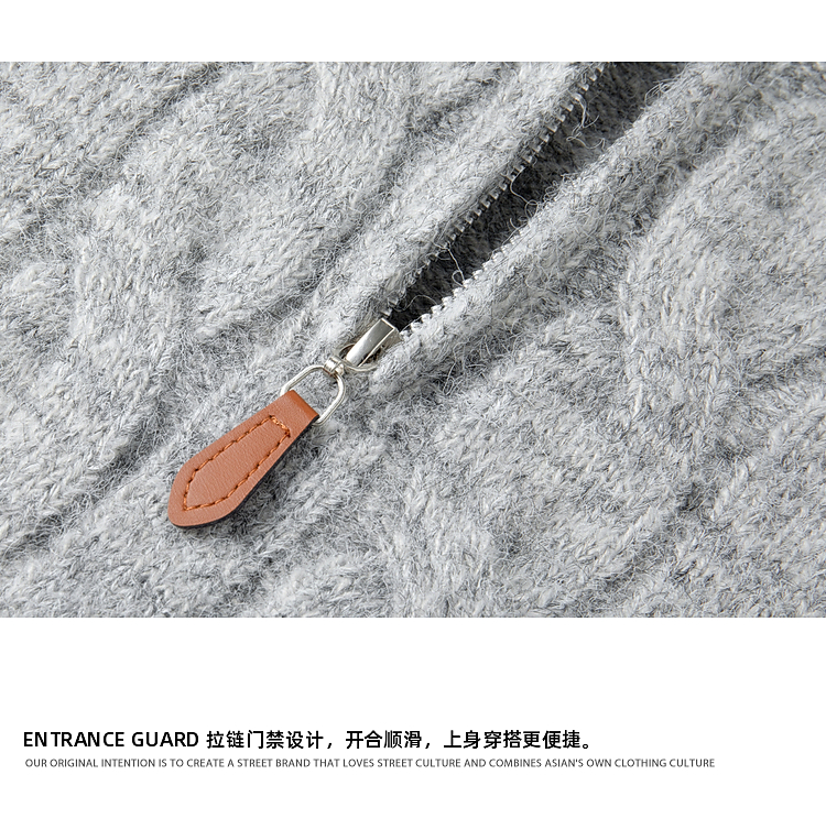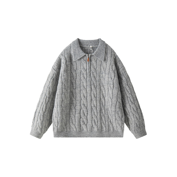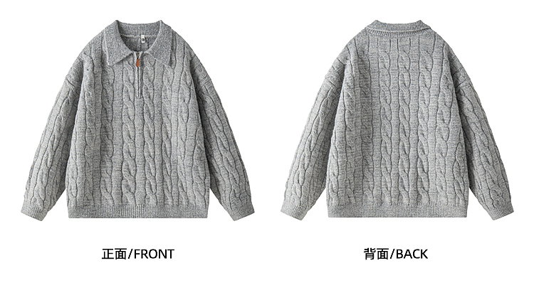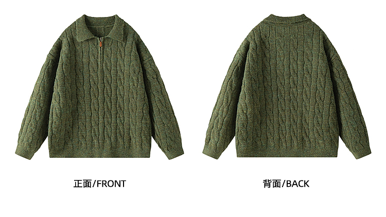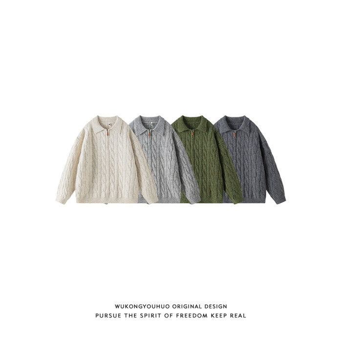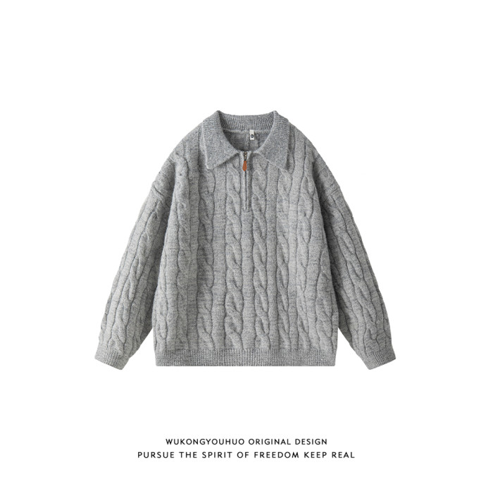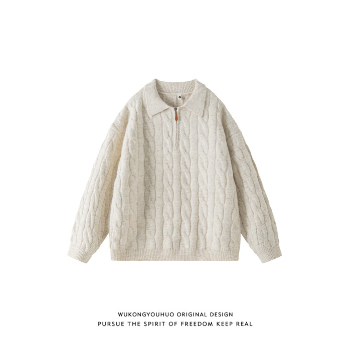 悟空有貨復古麻花半拉鍊POLO領針織衫男秋季寬松情侶休閒百搭毛衣
