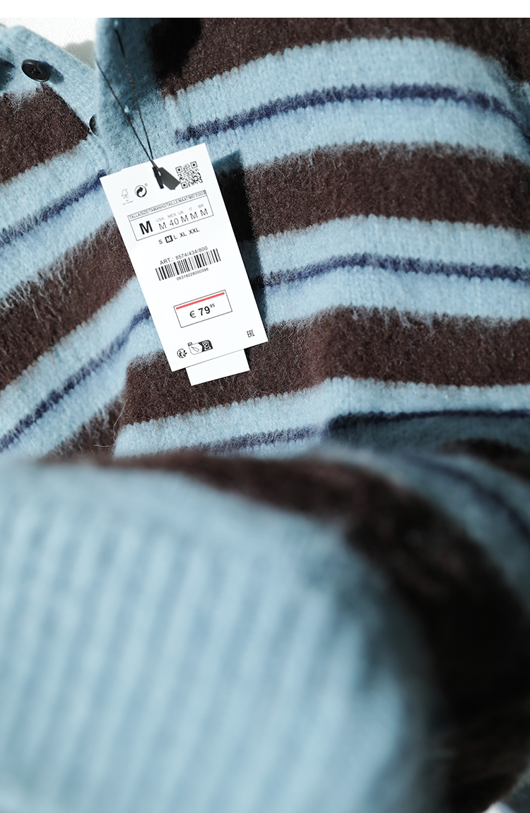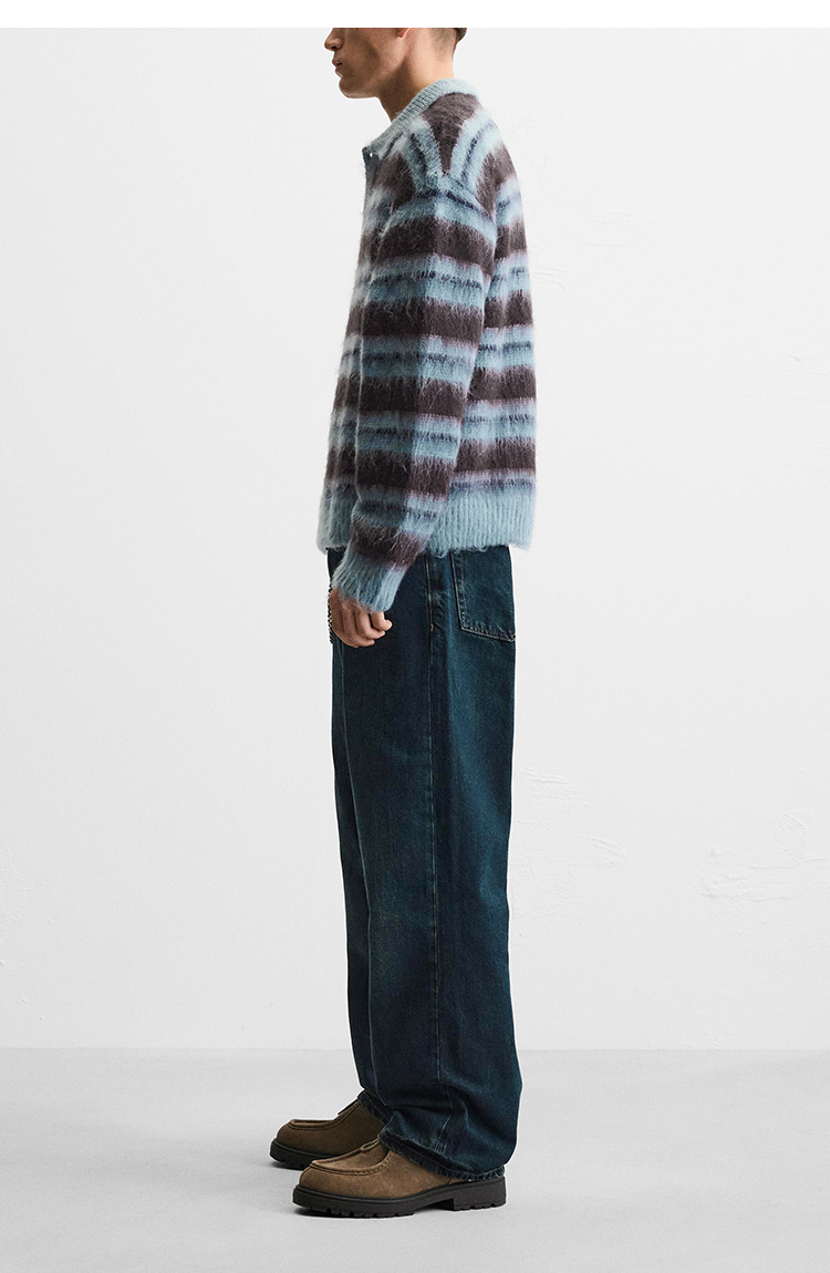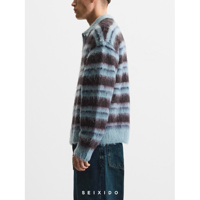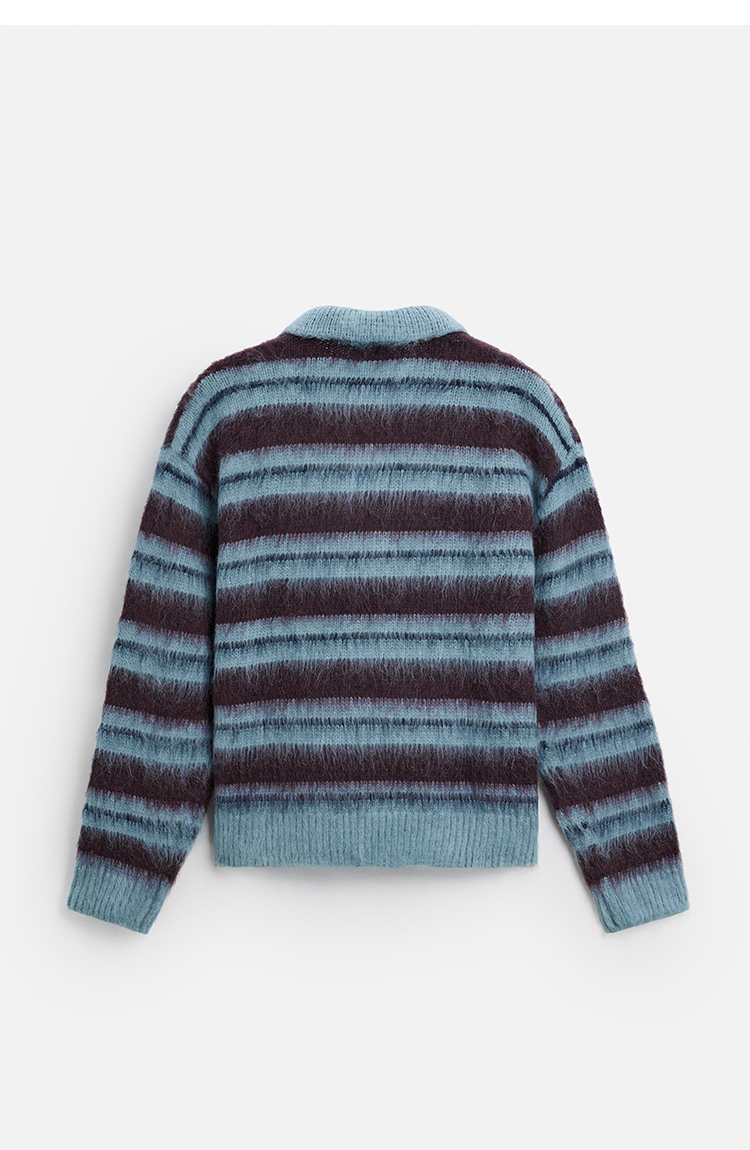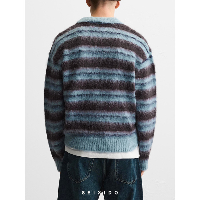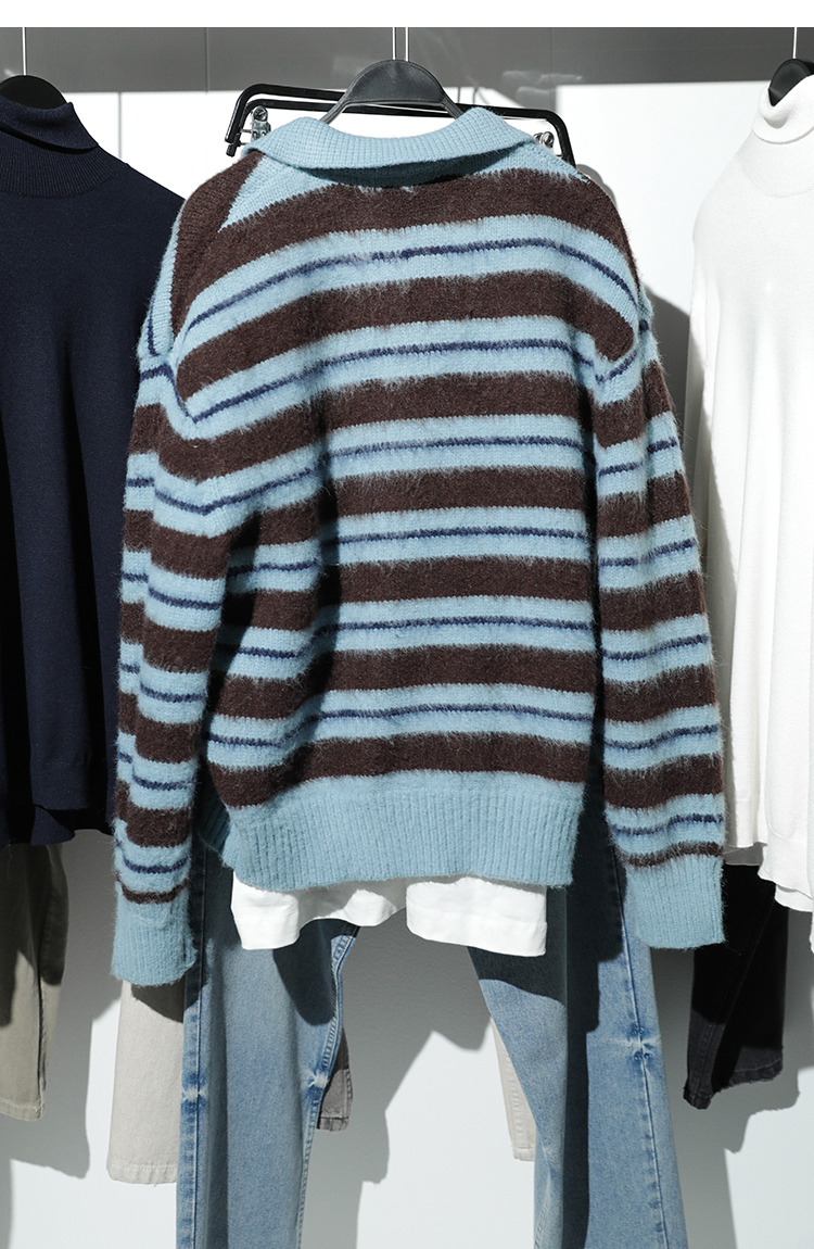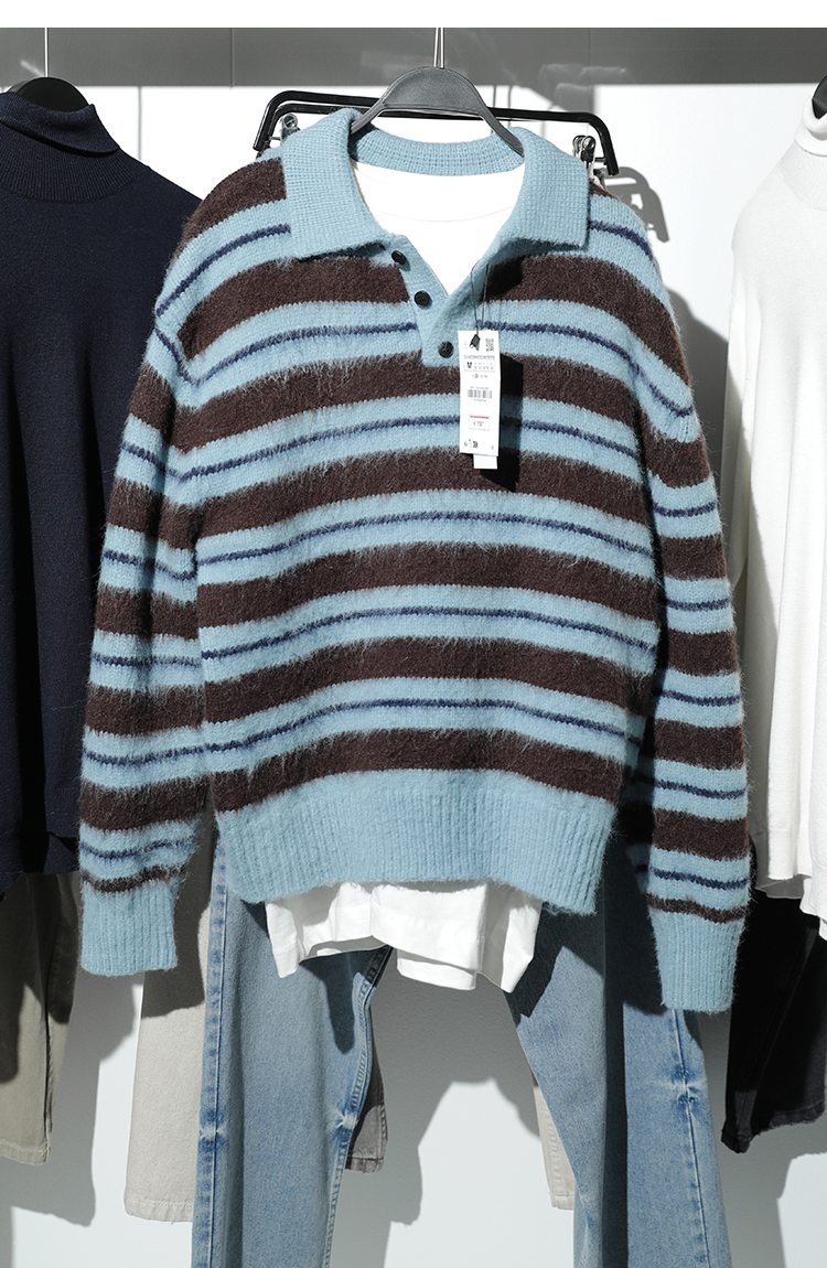 櫃319!秋冬新品男裝歐美簡約拉絨條紋翻領休閒針織衫毛衣9598395