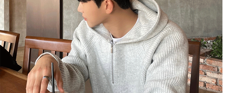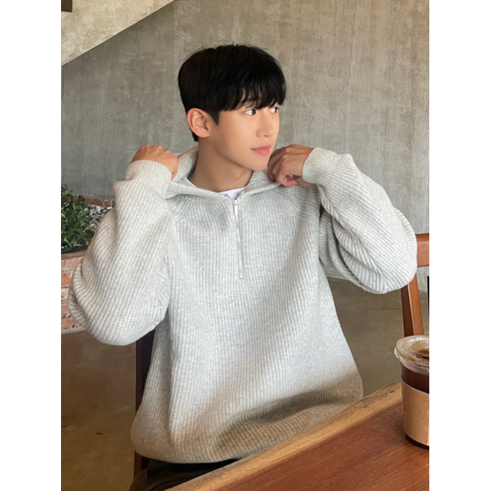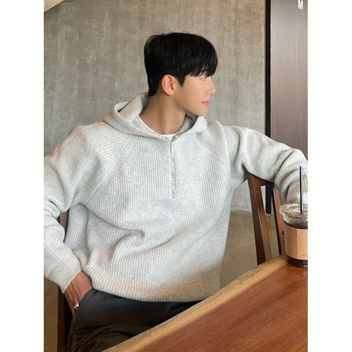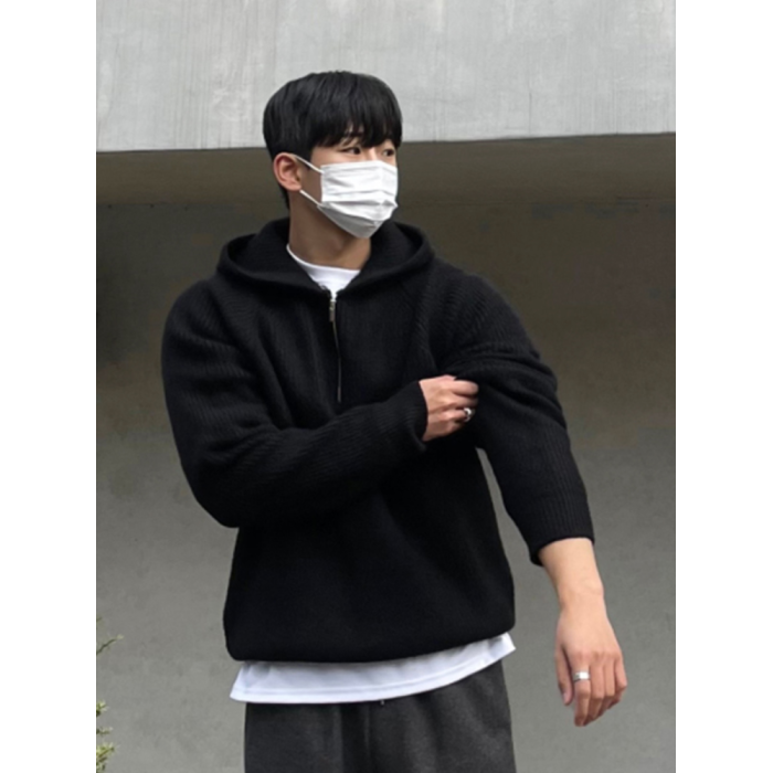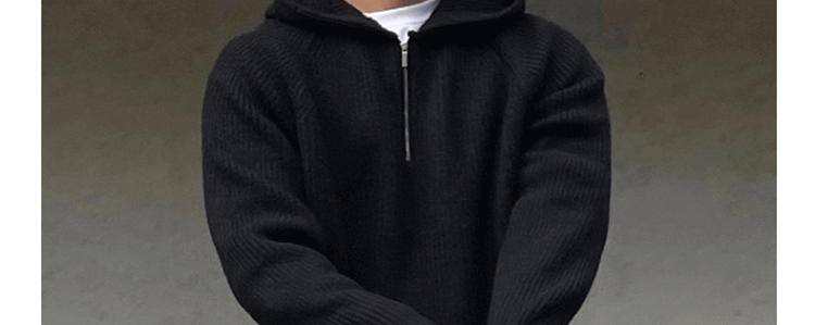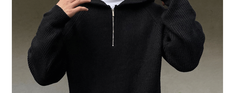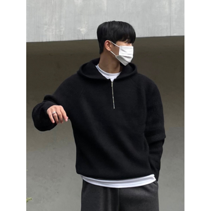 高級感半拉鍊連帽毛衣衛衣男潮牌春秋季慵懶風加厚針織衫重磅外套