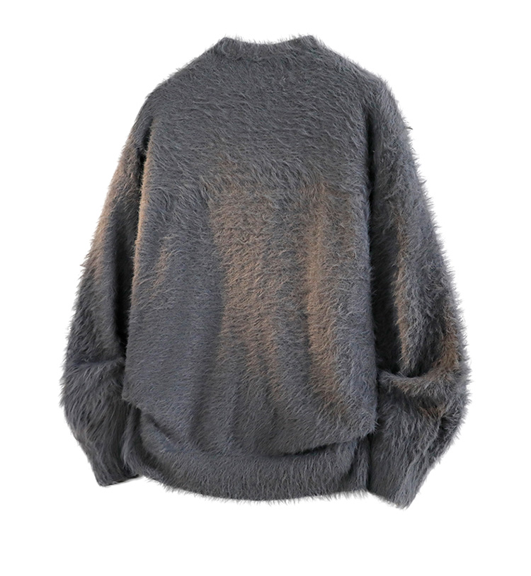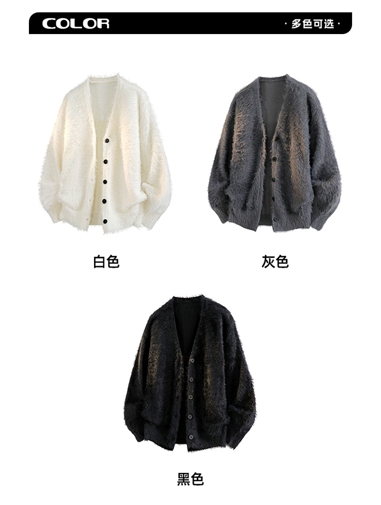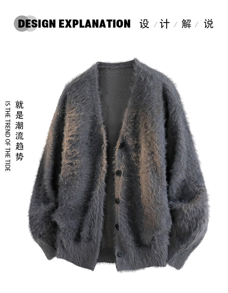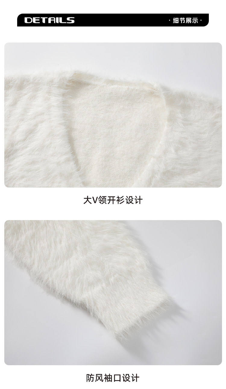 WASSUP ISSUE美式潮牌仿貂絨針織開衫男春秋寬松加絨加厚毛衣外套