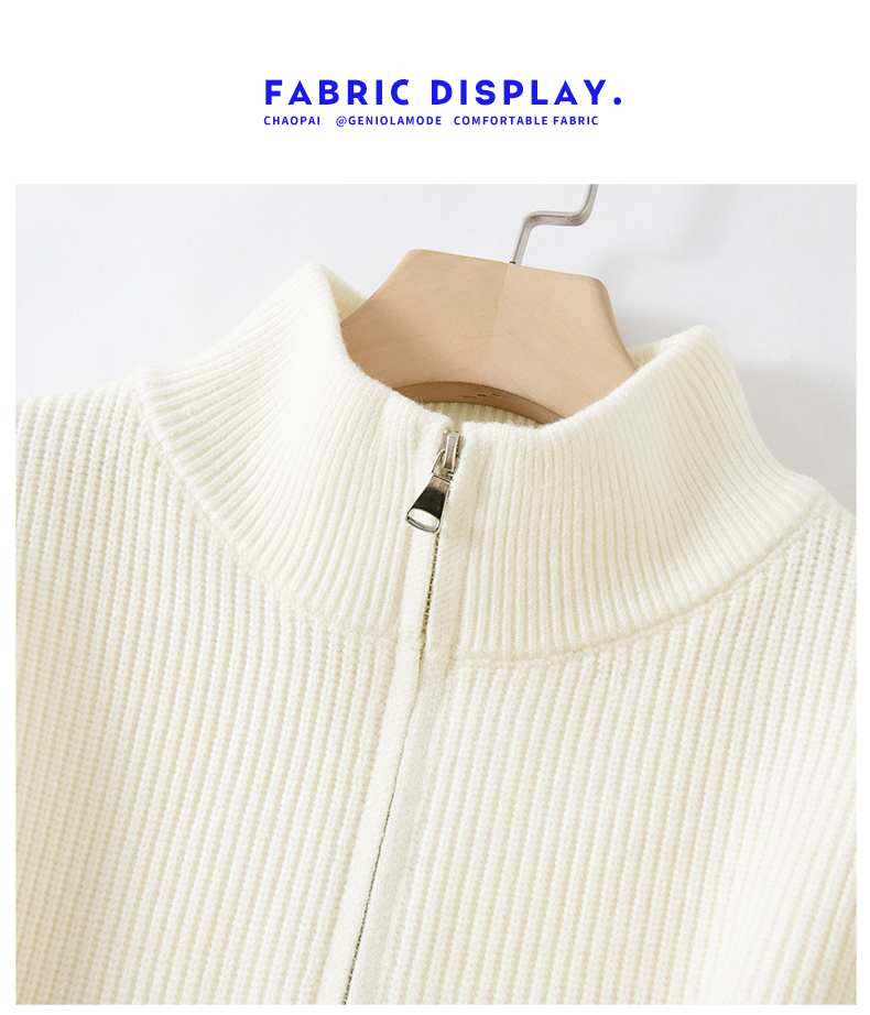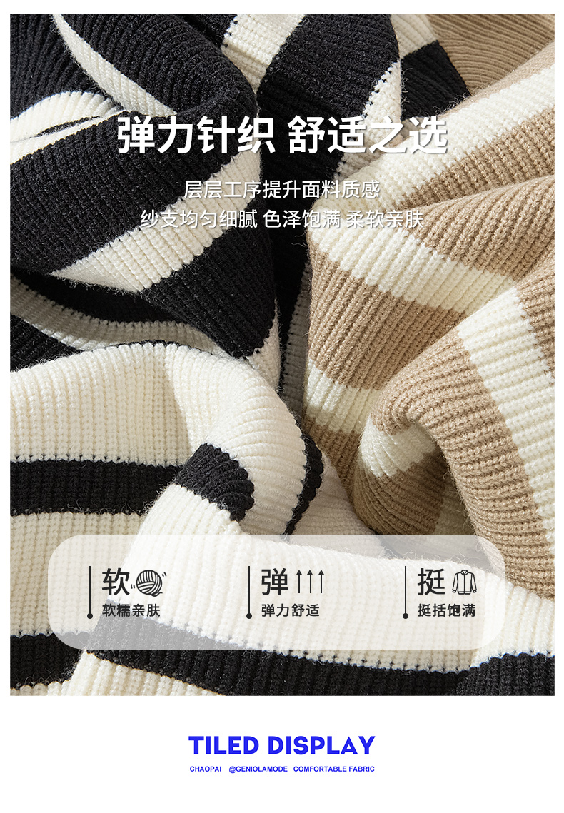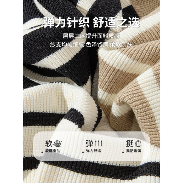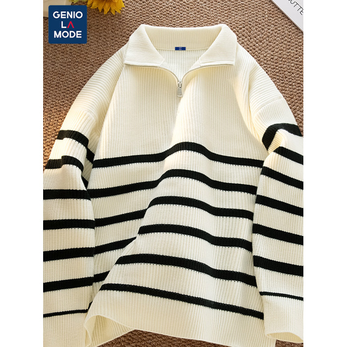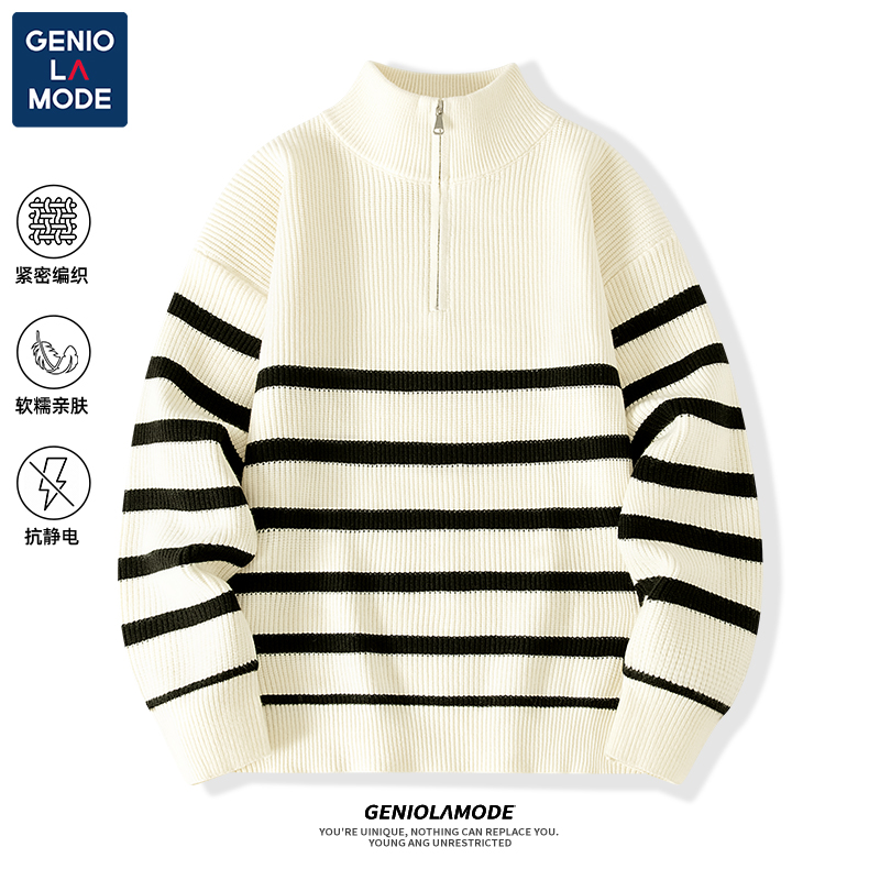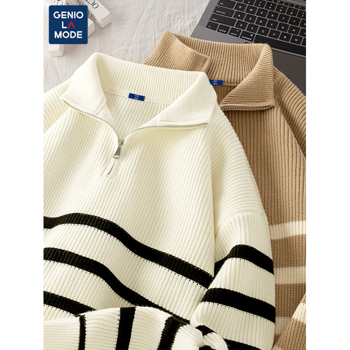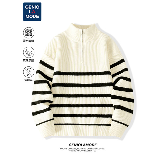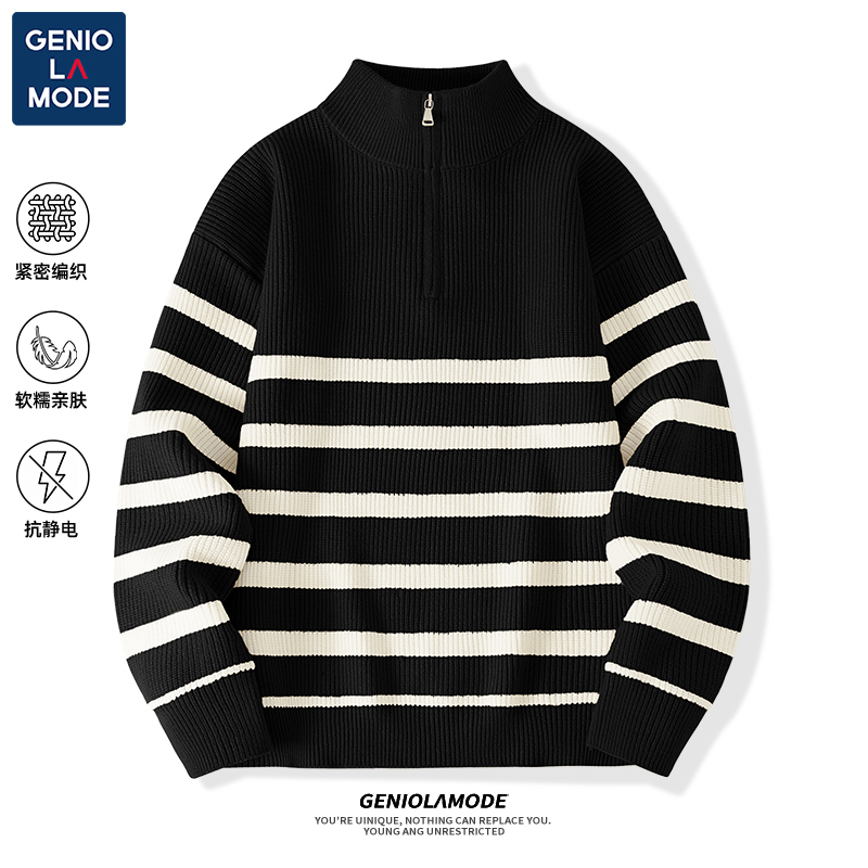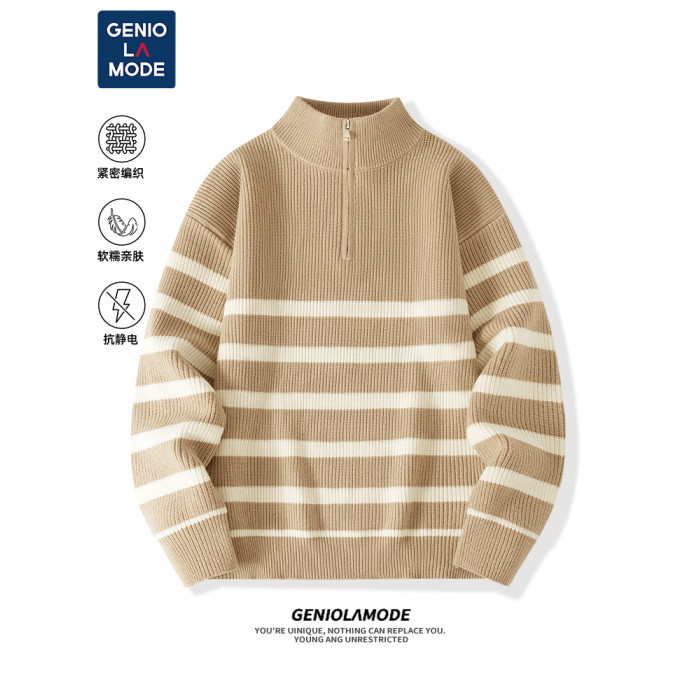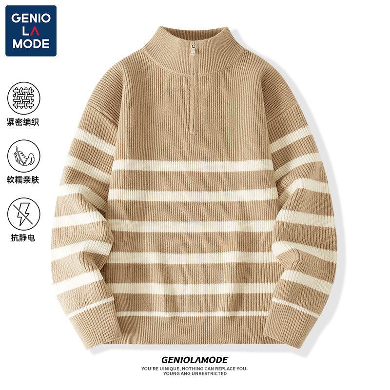 Genio Lamode條紋毛衣男2025秋冬軟糯慵懶風男女同款半拉鍊針織衫