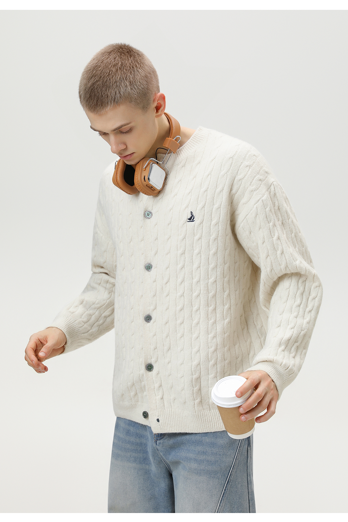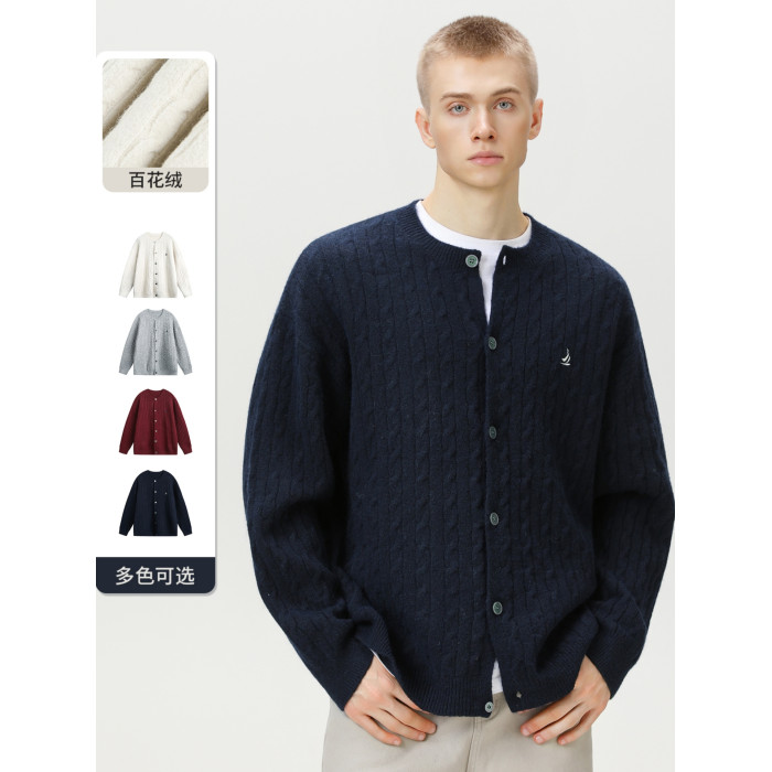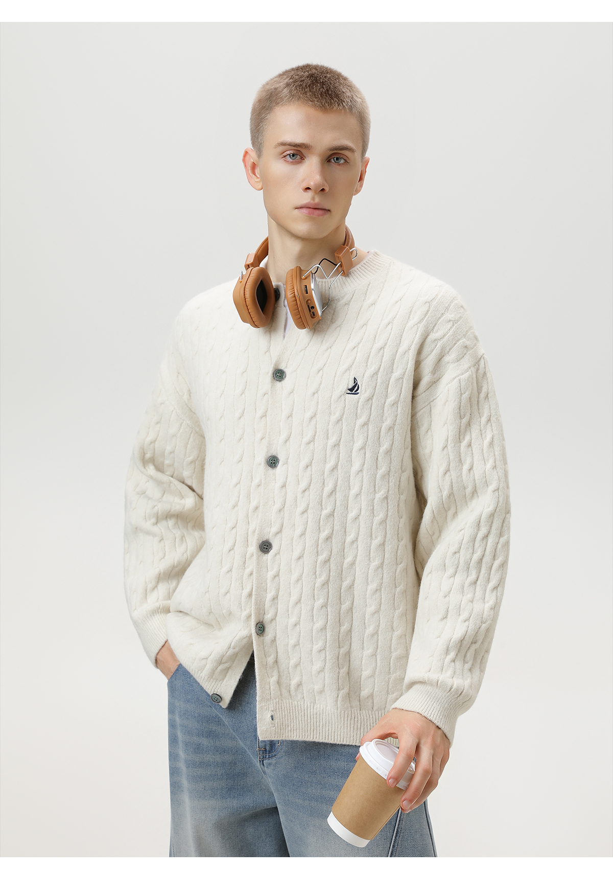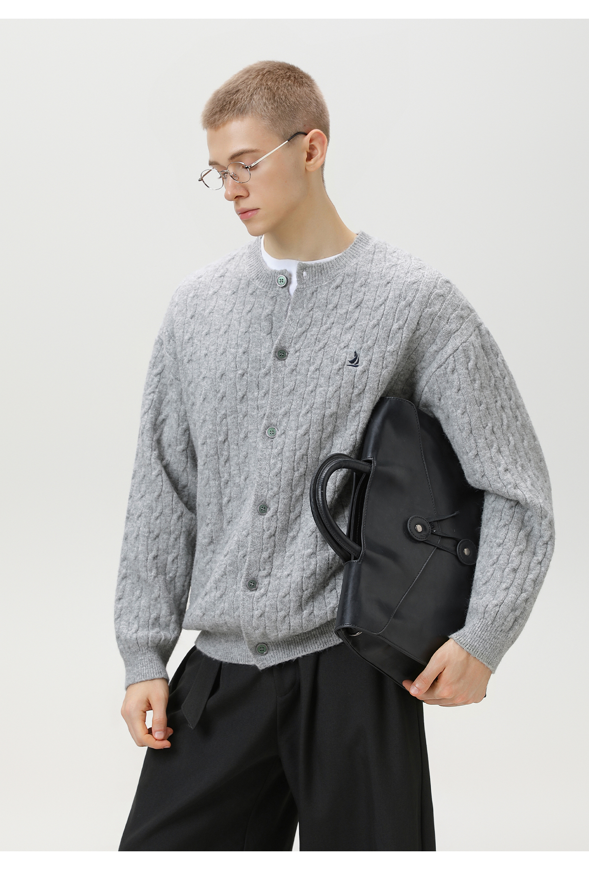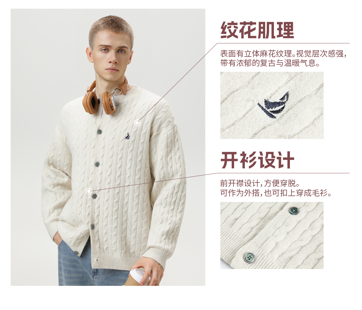 潮牌質感刺綉開衫毛衣男秋冬新款重磅加厚肌理針織衫復古圓領外套