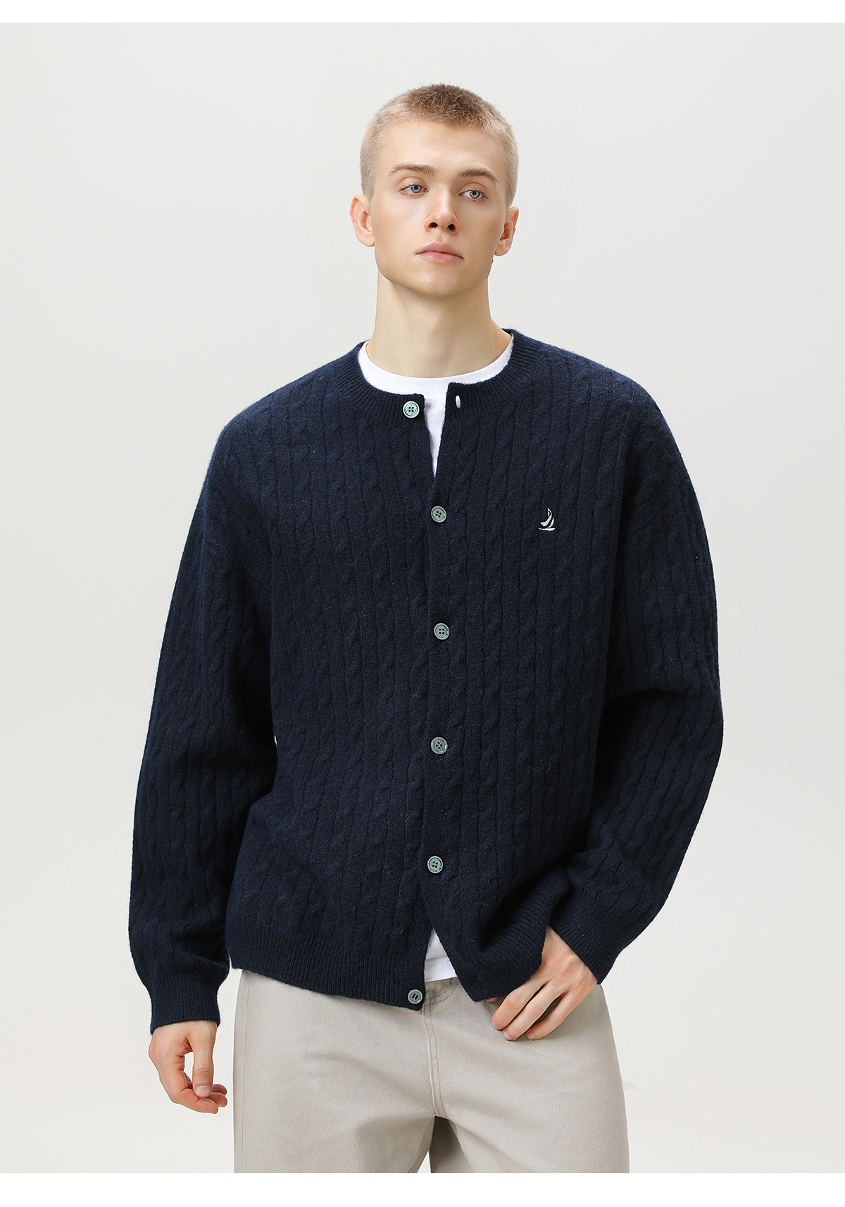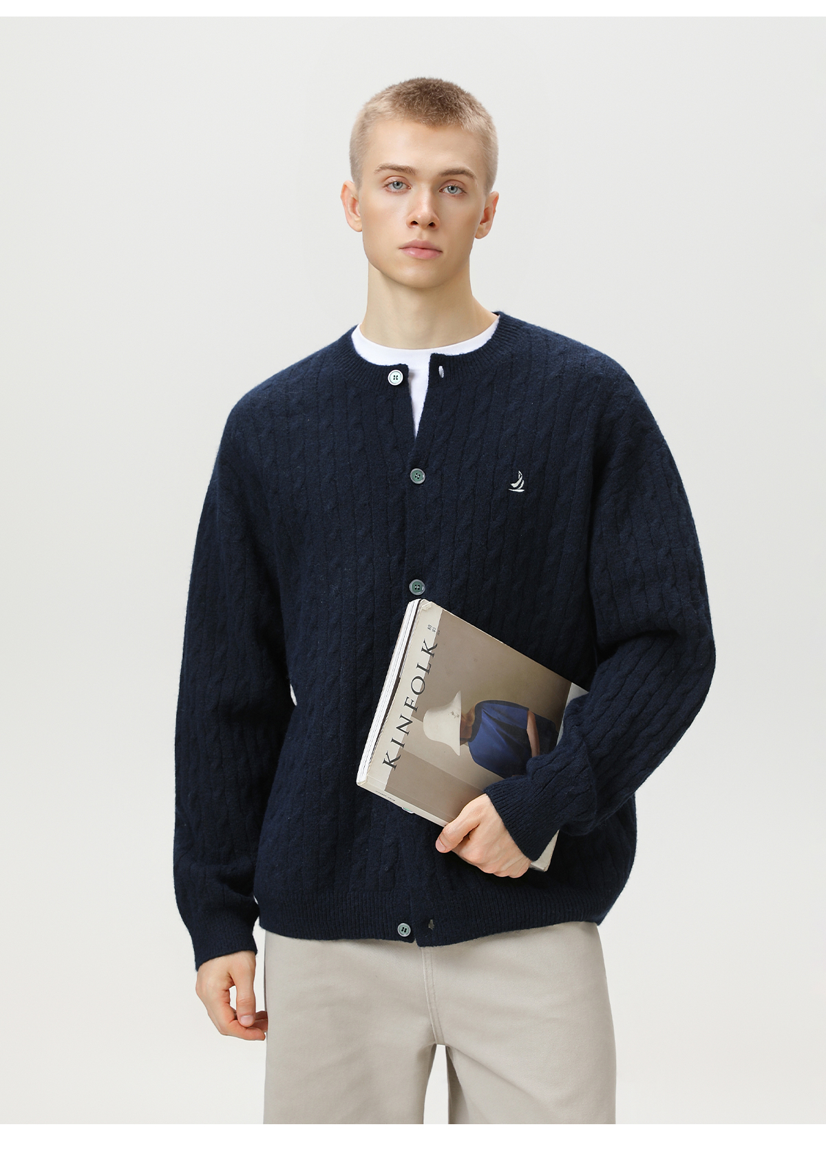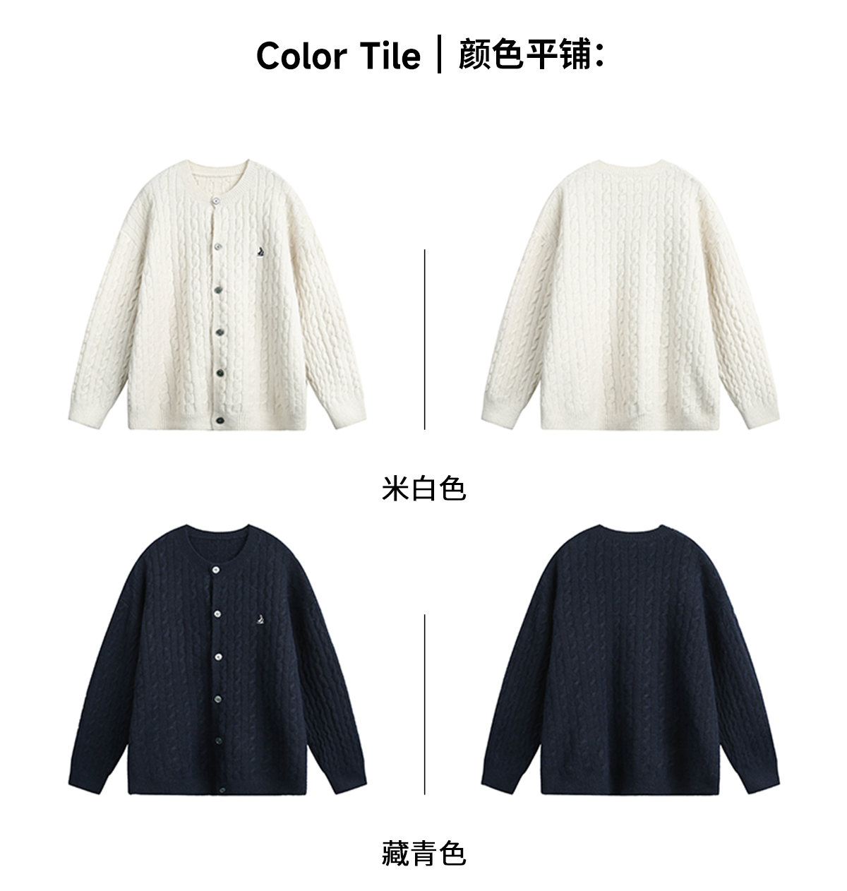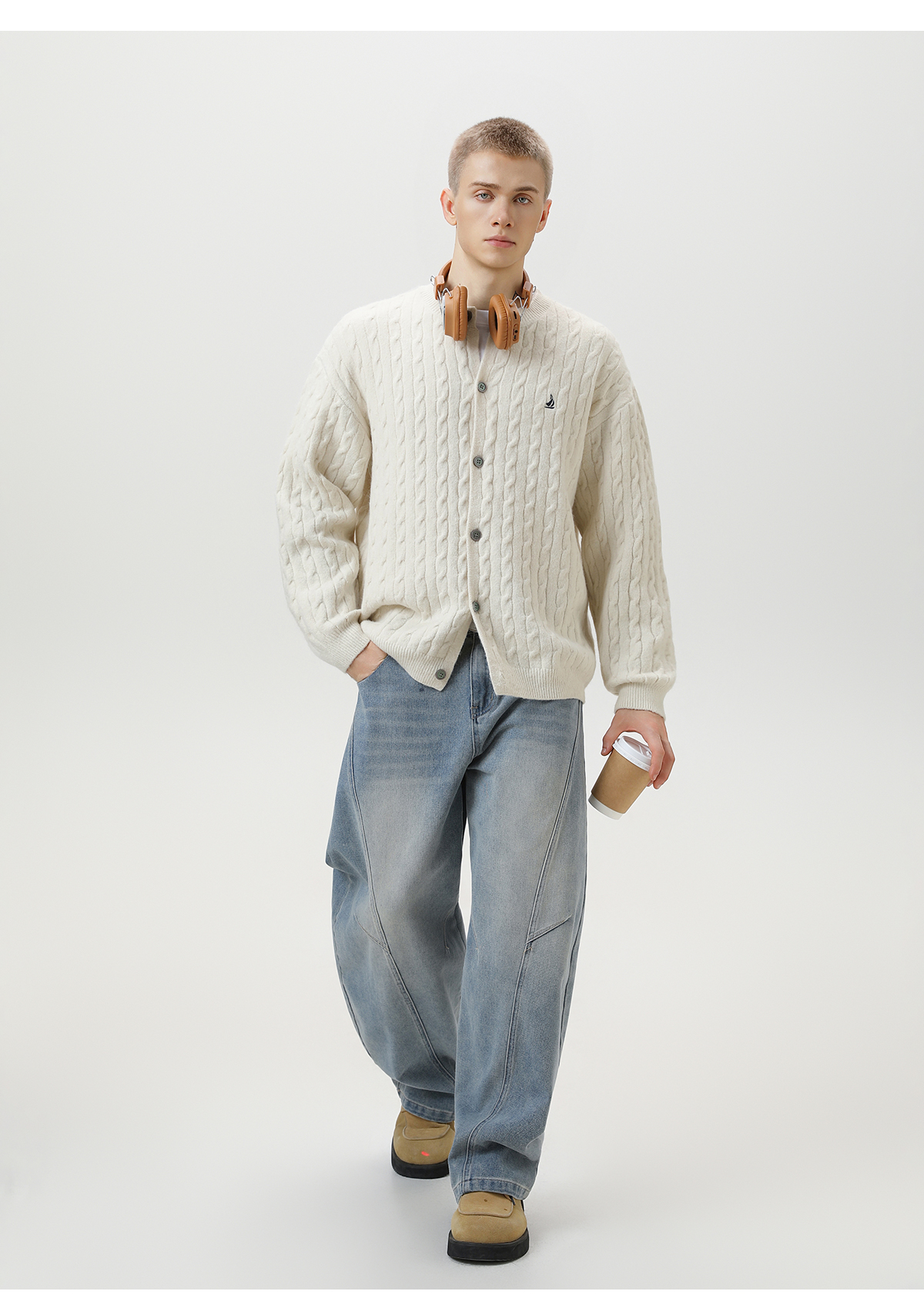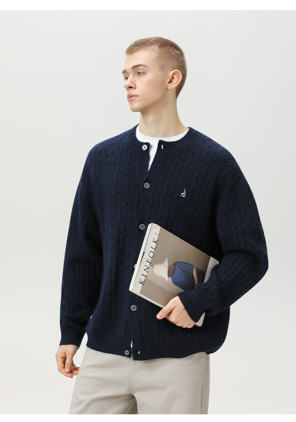 潮牌質感刺綉開衫毛衣男秋冬新款重磅加厚肌理針織衫復古圓領外套
