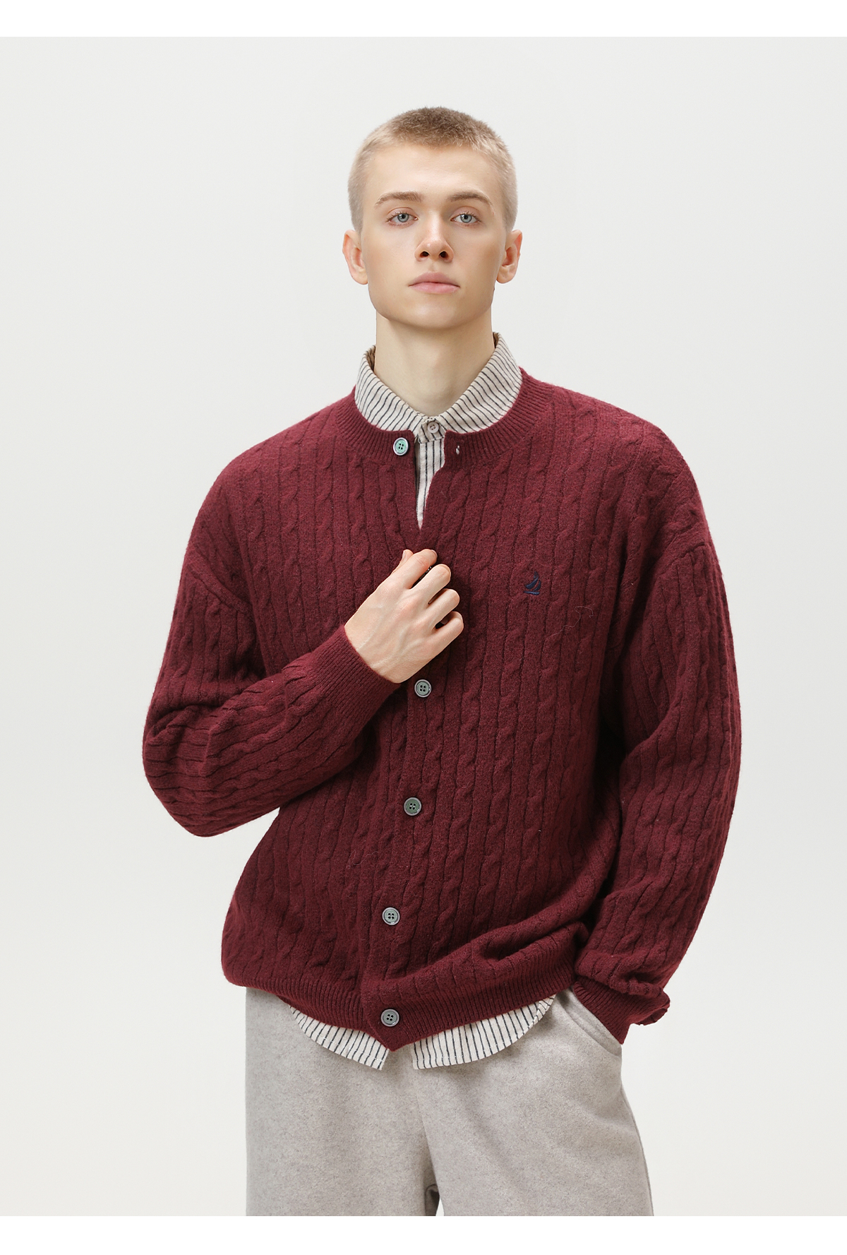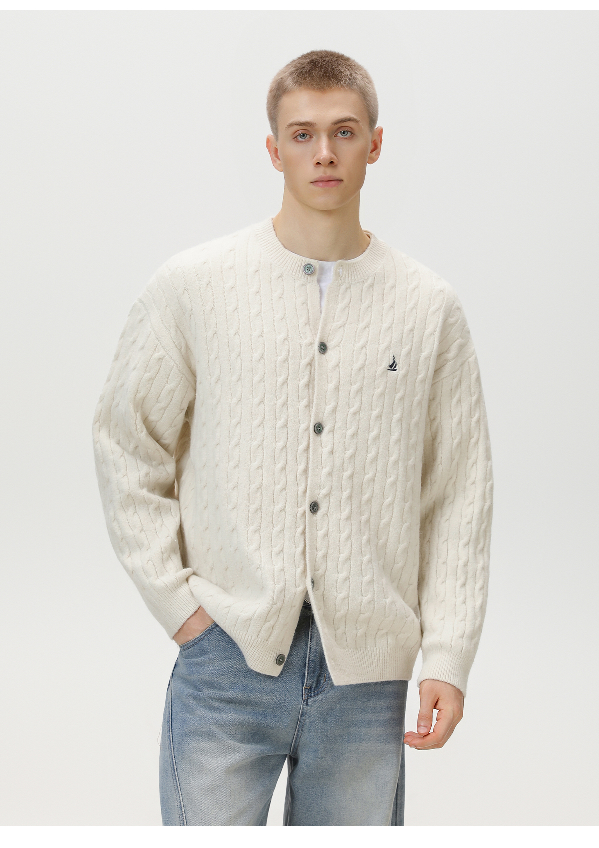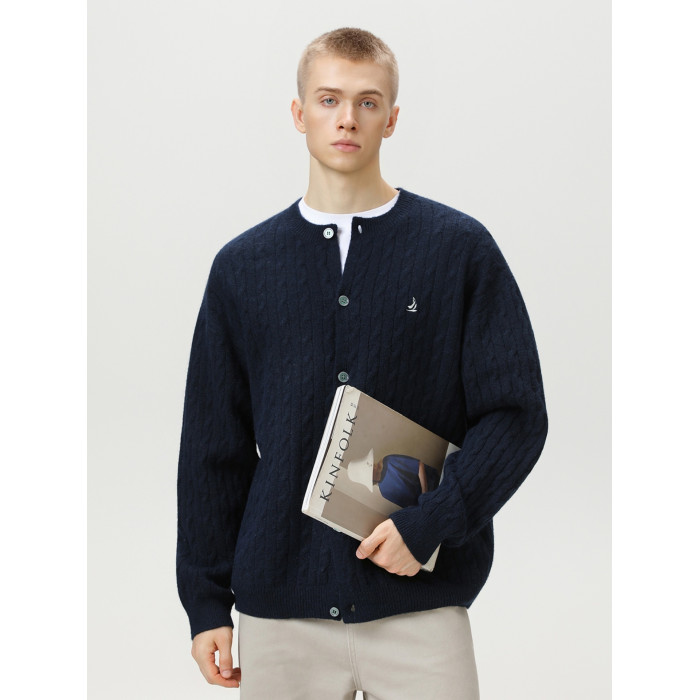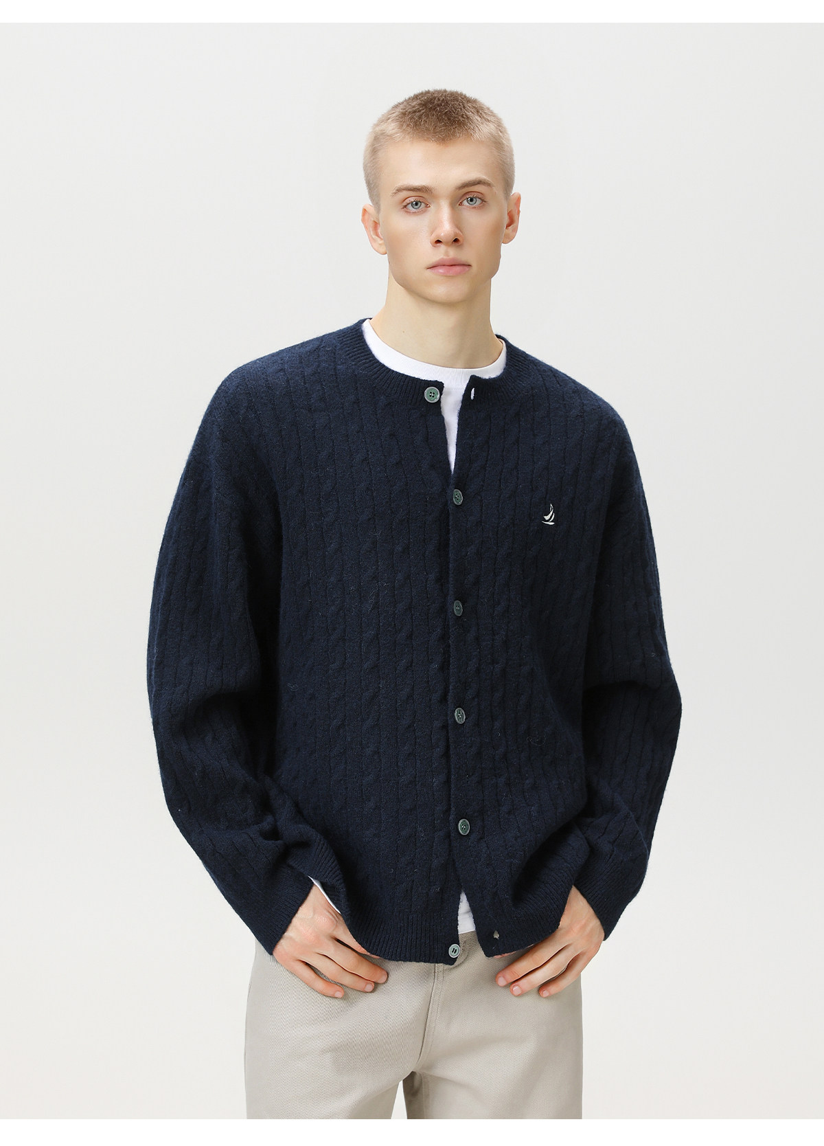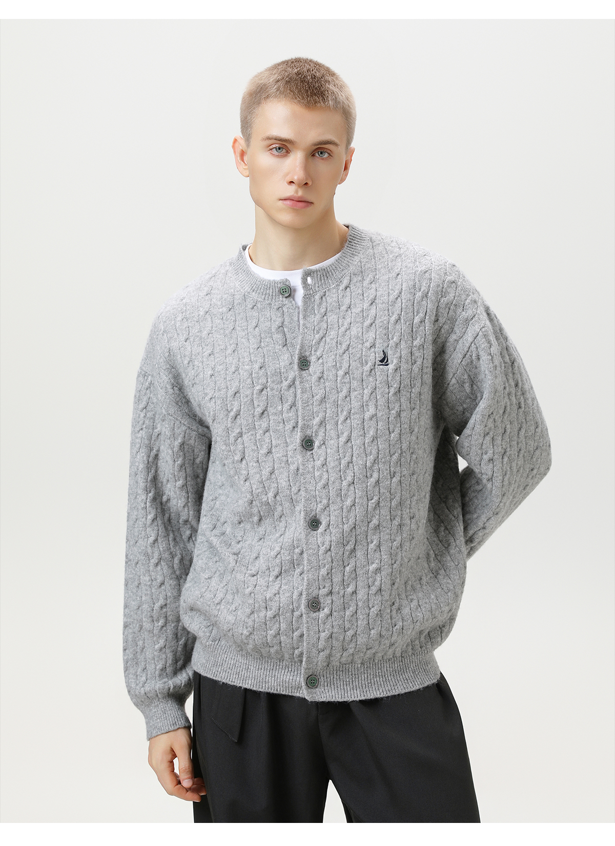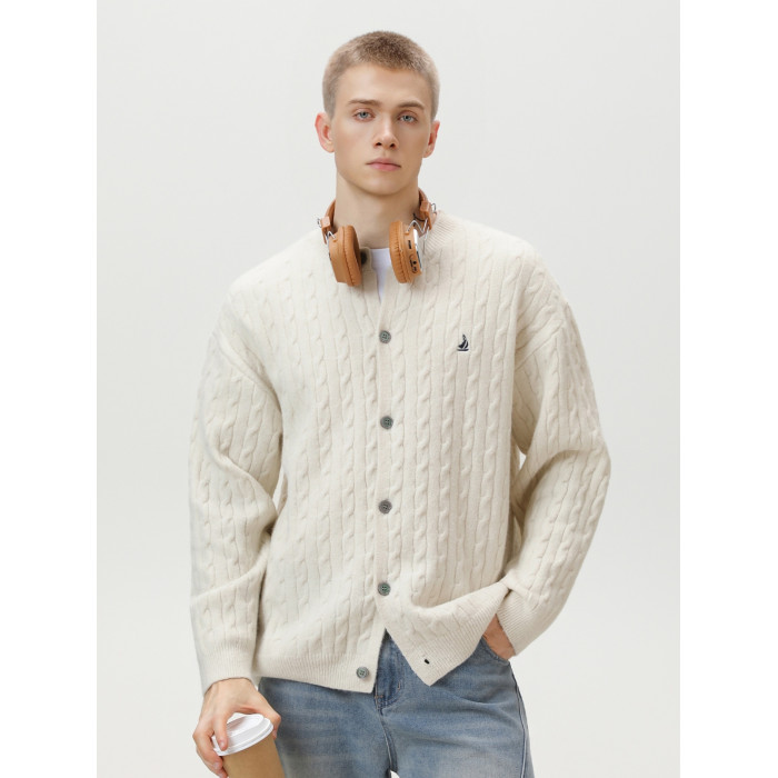 潮牌質感刺綉開衫毛衣男秋冬新款重磅加厚肌理針織衫復古圓領外套