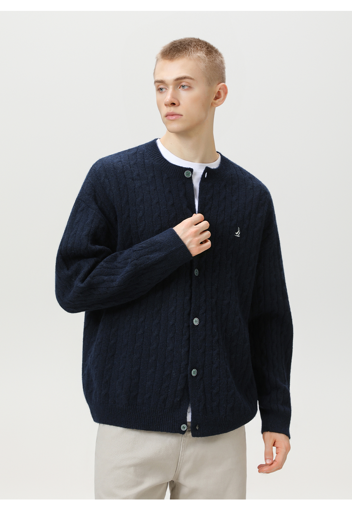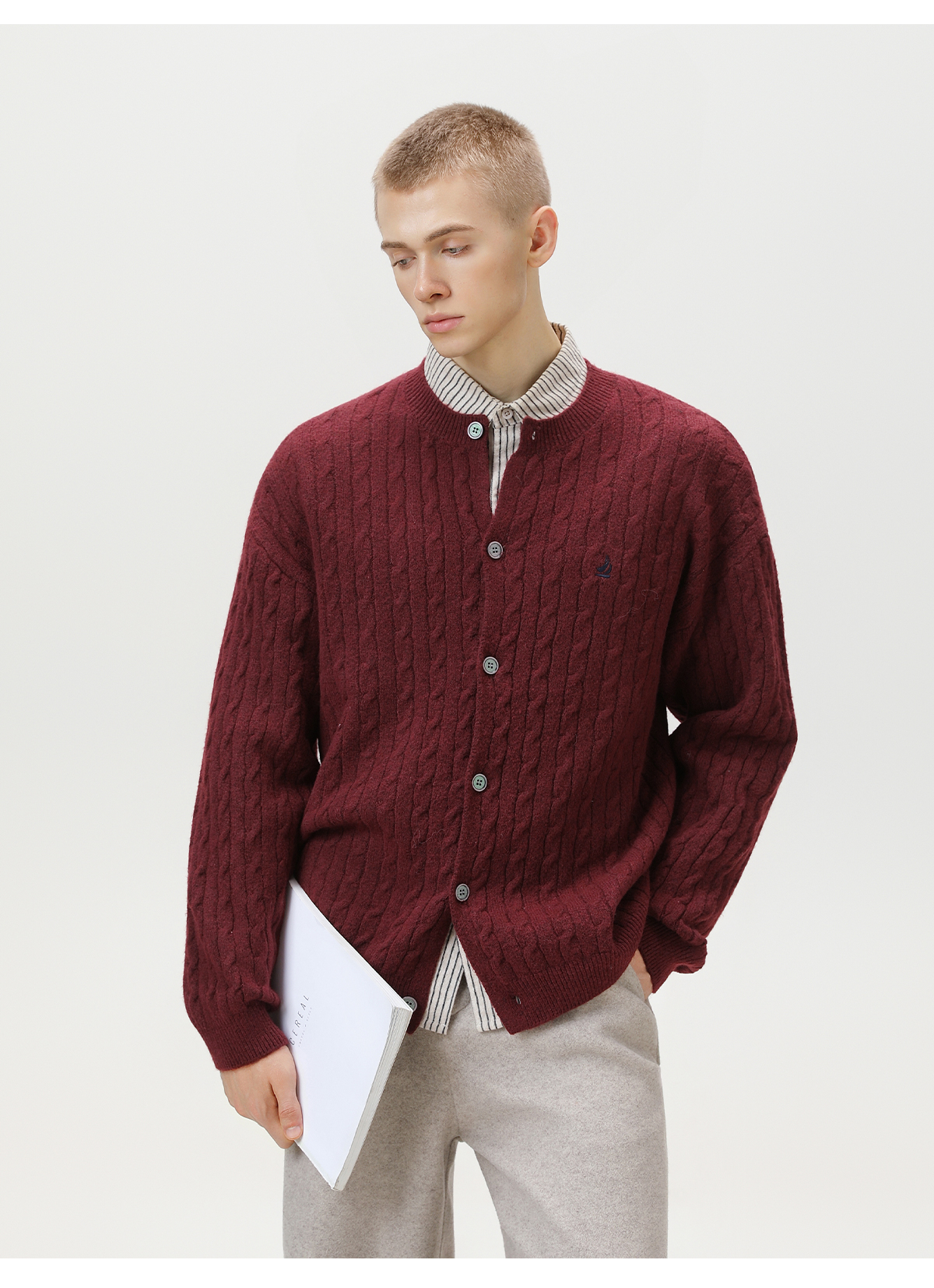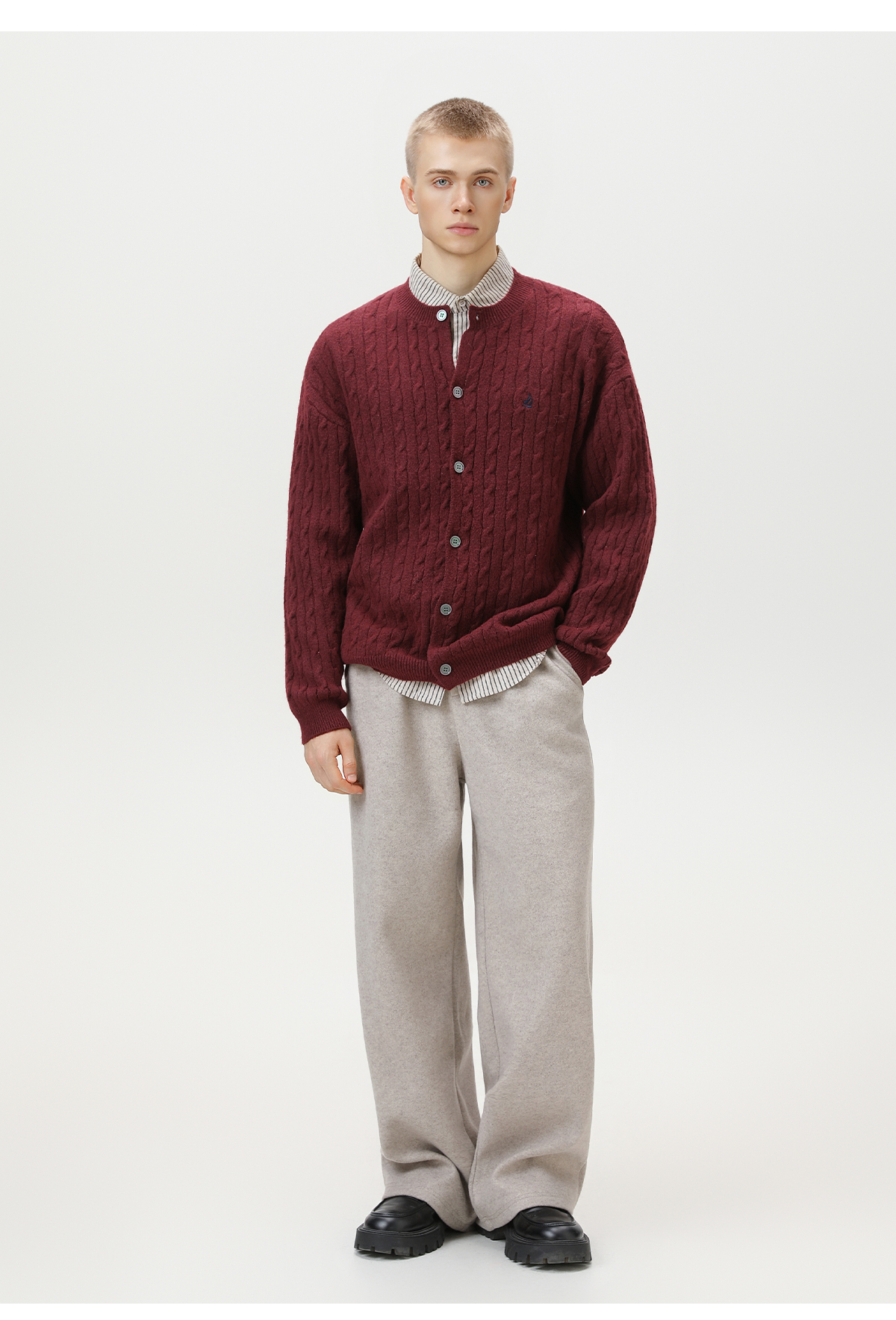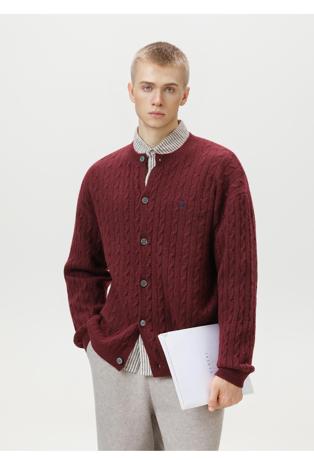 潮牌質感刺綉開衫毛衣男秋冬新款重磅加厚肌理針織衫復古圓領外套