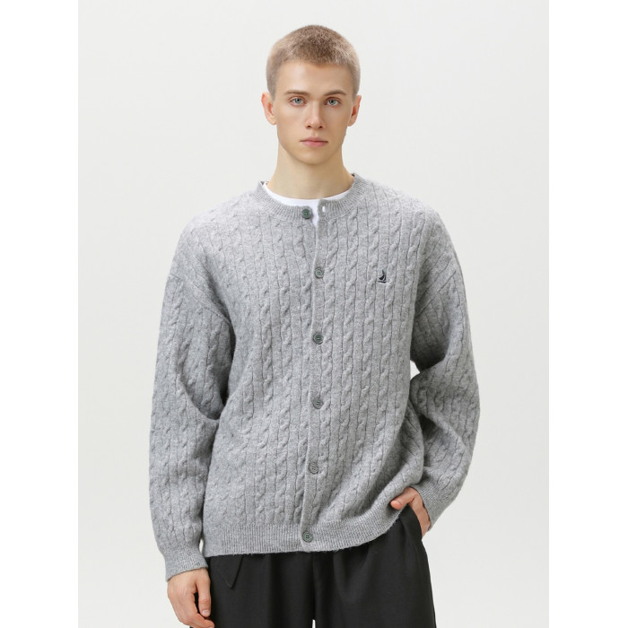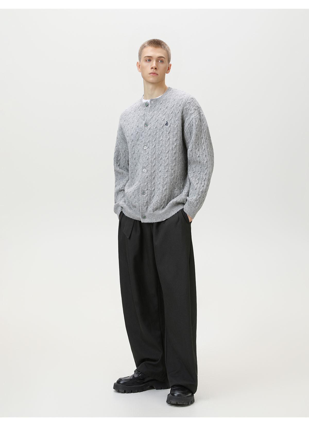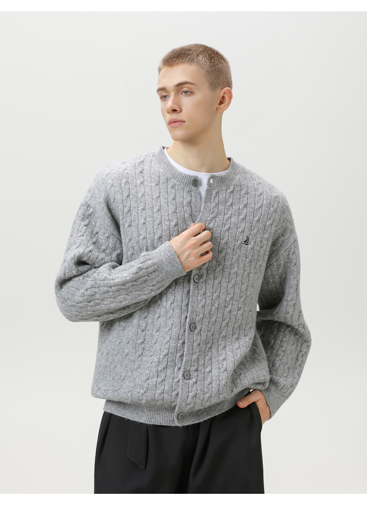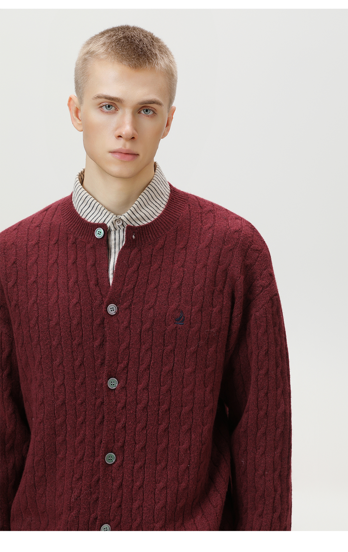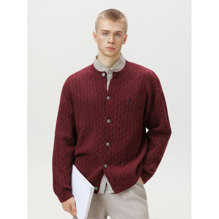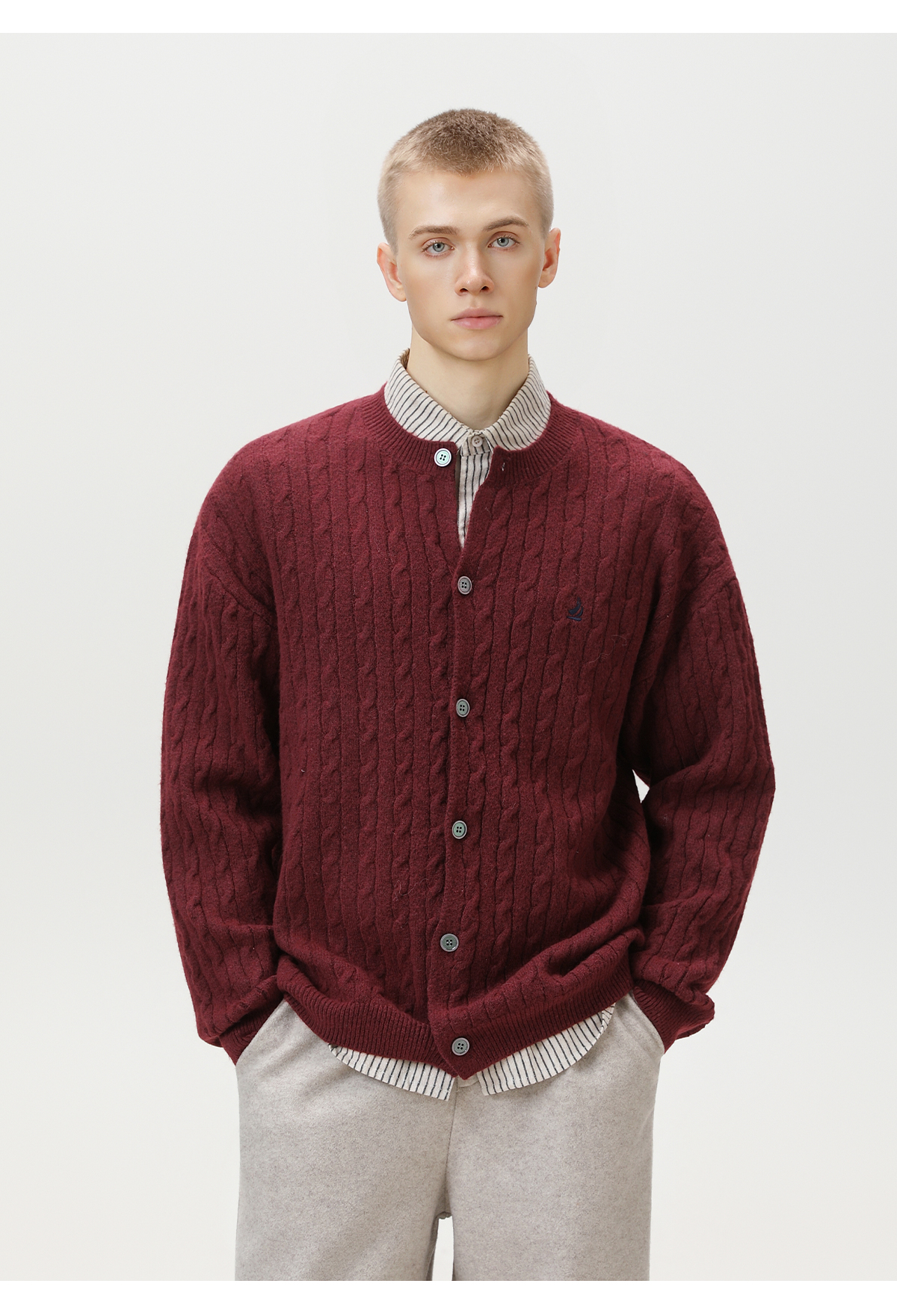 潮牌質感刺綉開衫毛衣男秋冬新款重磅加厚肌理針織衫復古圓領外套