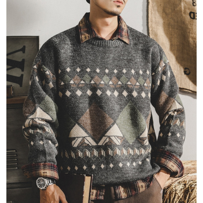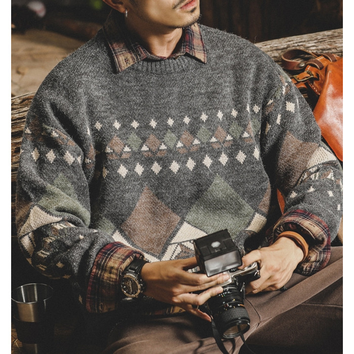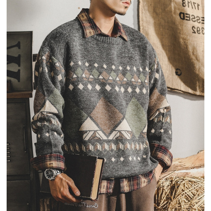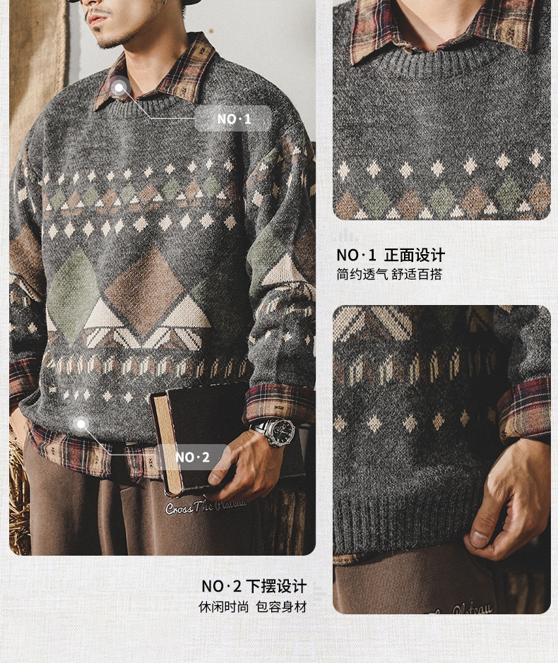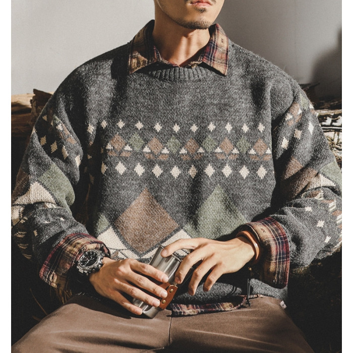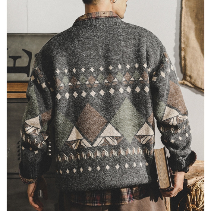 美式經典傳統復古毛衣男秋冬潮牌寬松休閒秋季民族風針織衫外套男