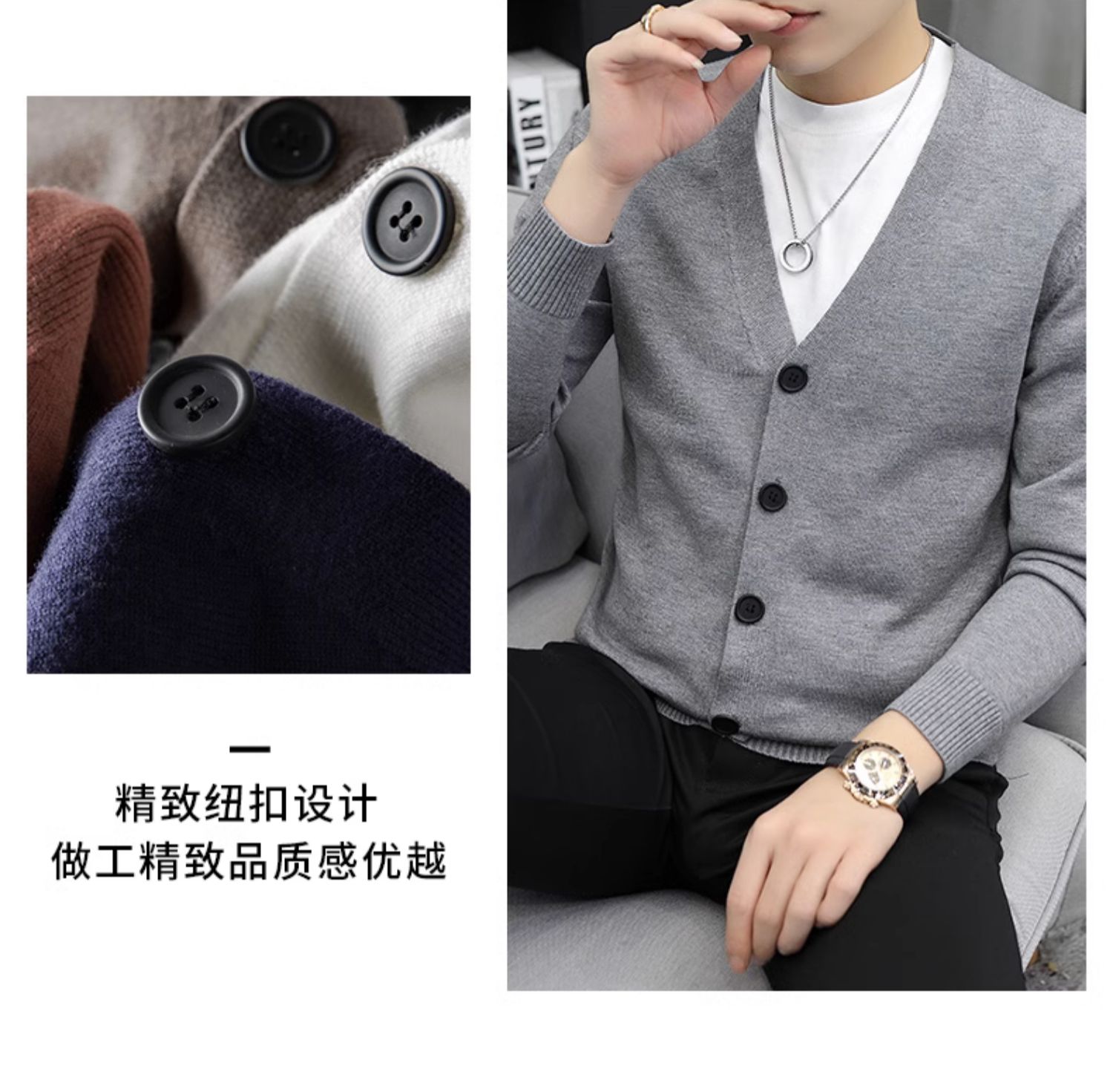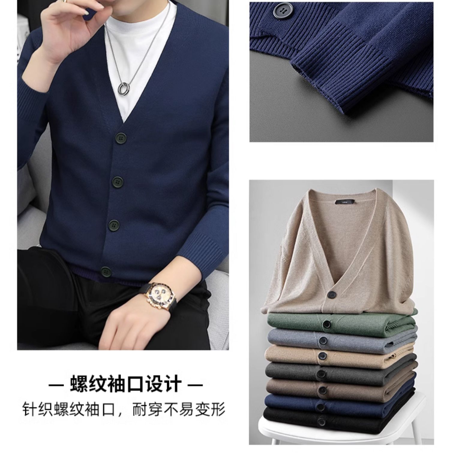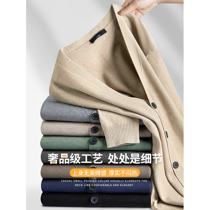 針織開衫男春秋季薄款毛衣外套純色毛衫2025新款潮流休閒外穿線衣