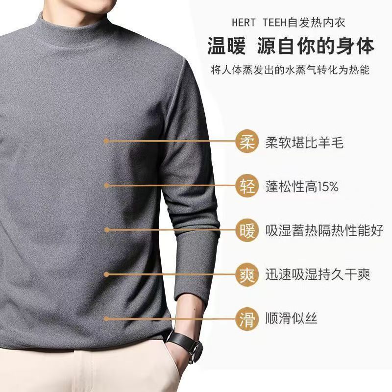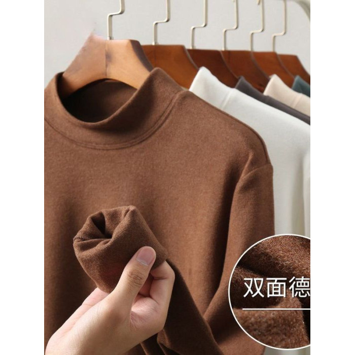 2025秋冬保暖內搭打底衫德絨半高領上衣雙面絨男士長袖男青年T恤