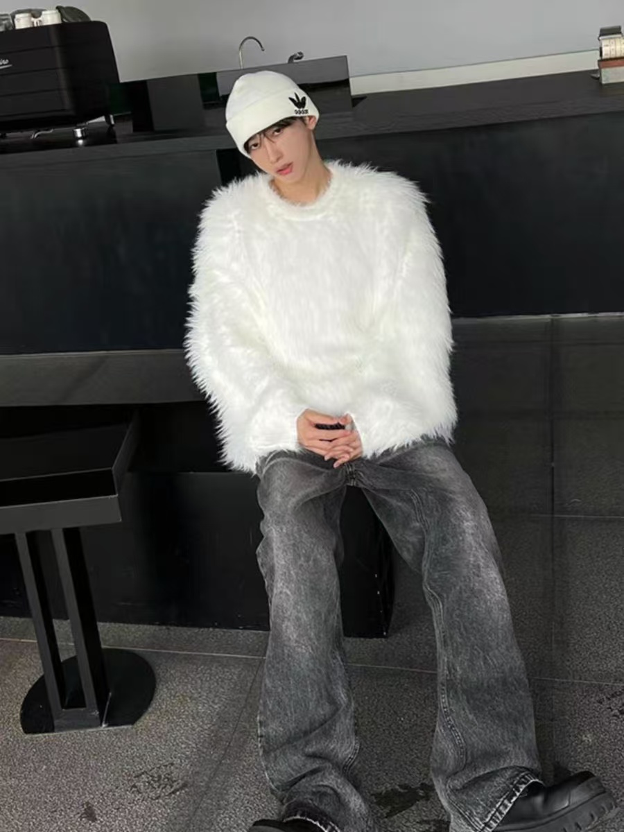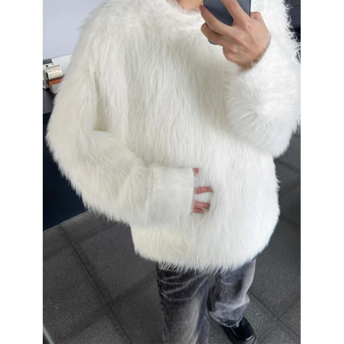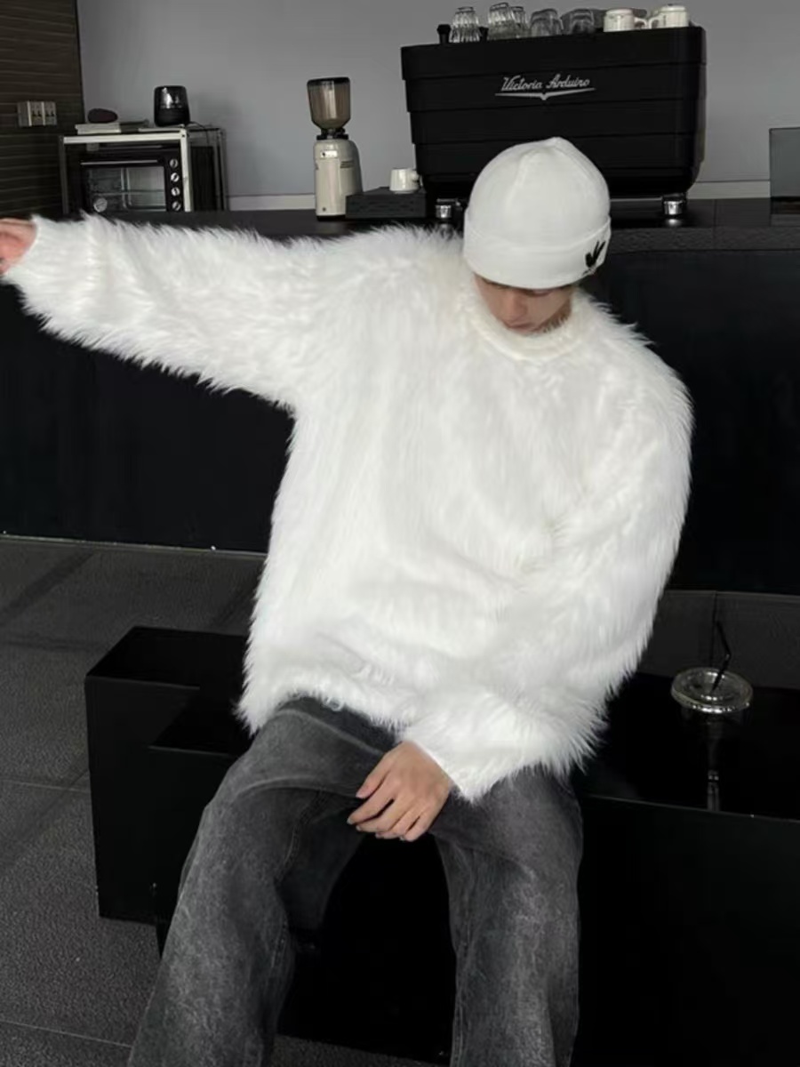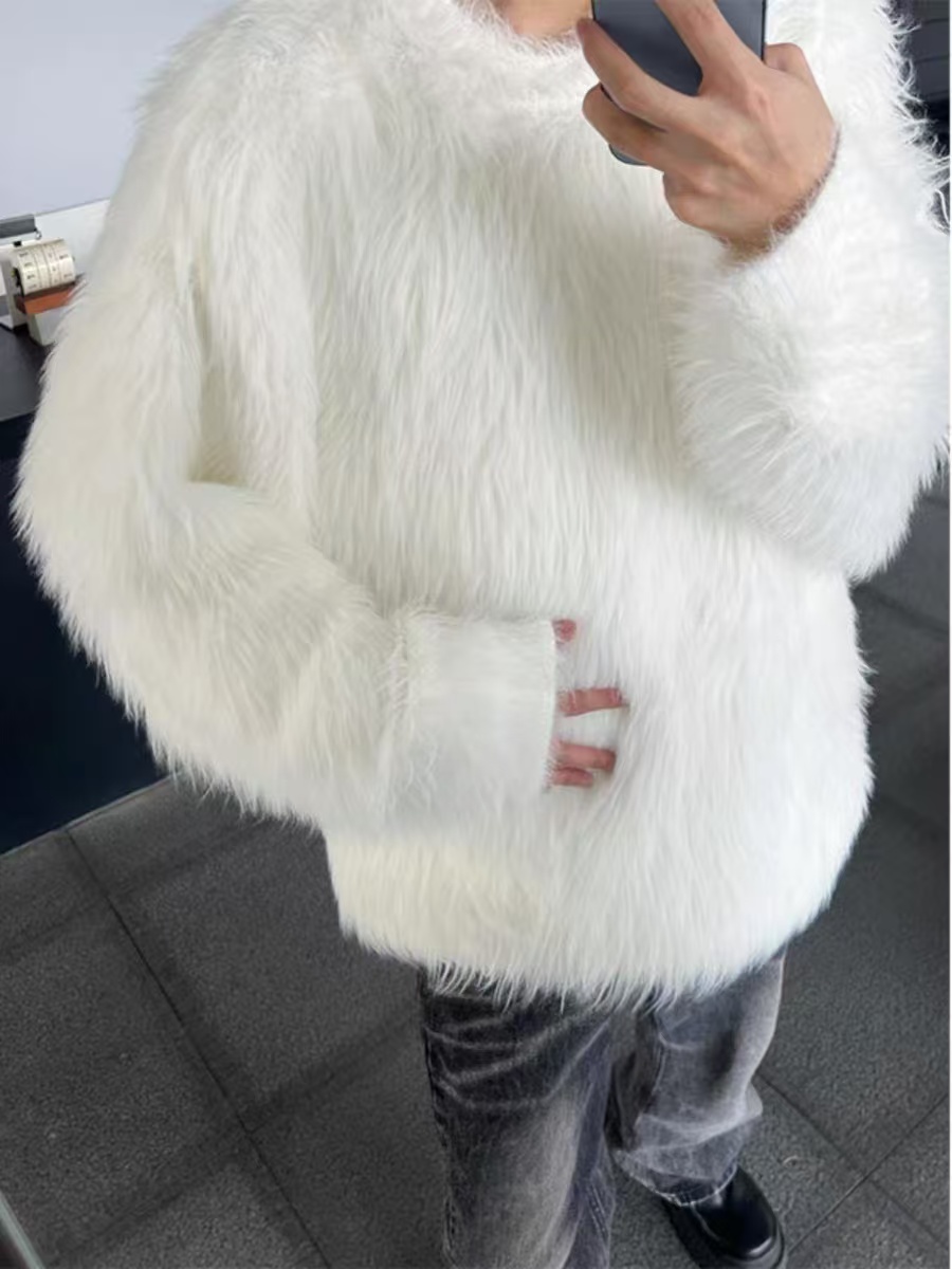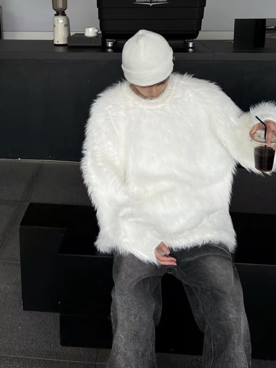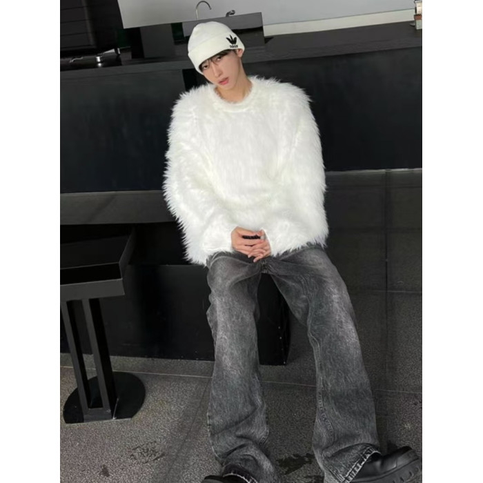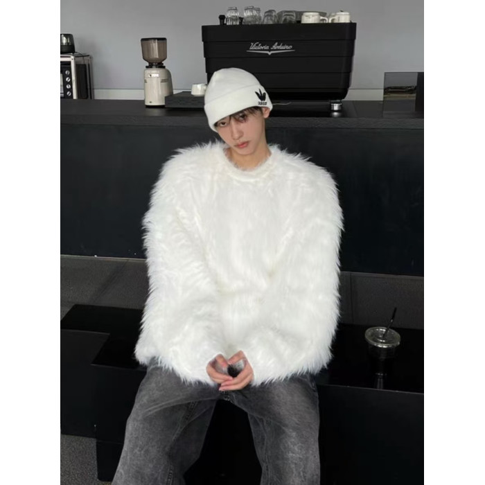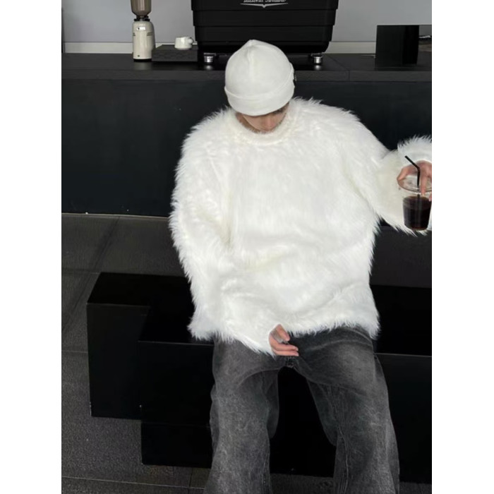 秋冬季軟糯白色水貂絨毛衣男士外套寬松慵懶風高級感馬海毛針織衫