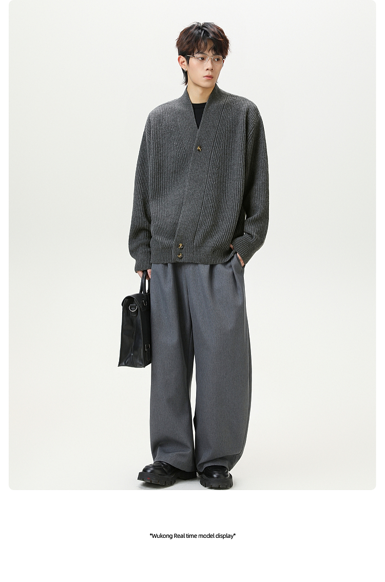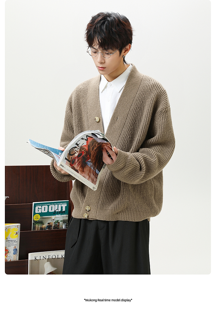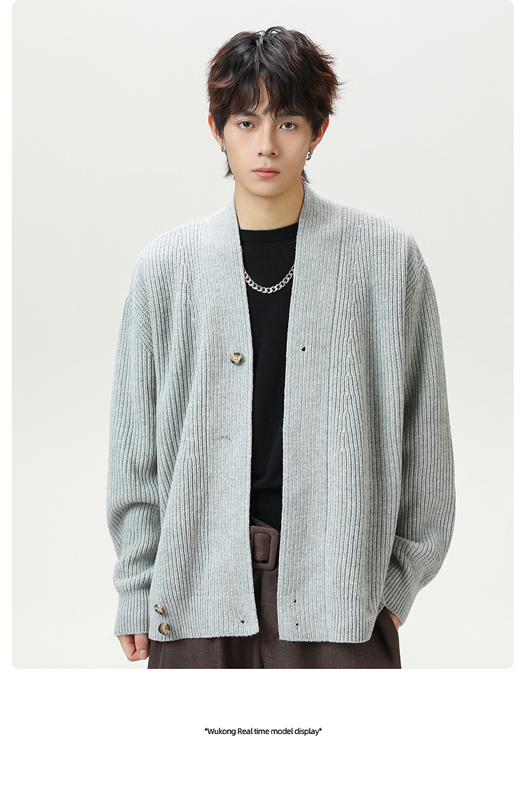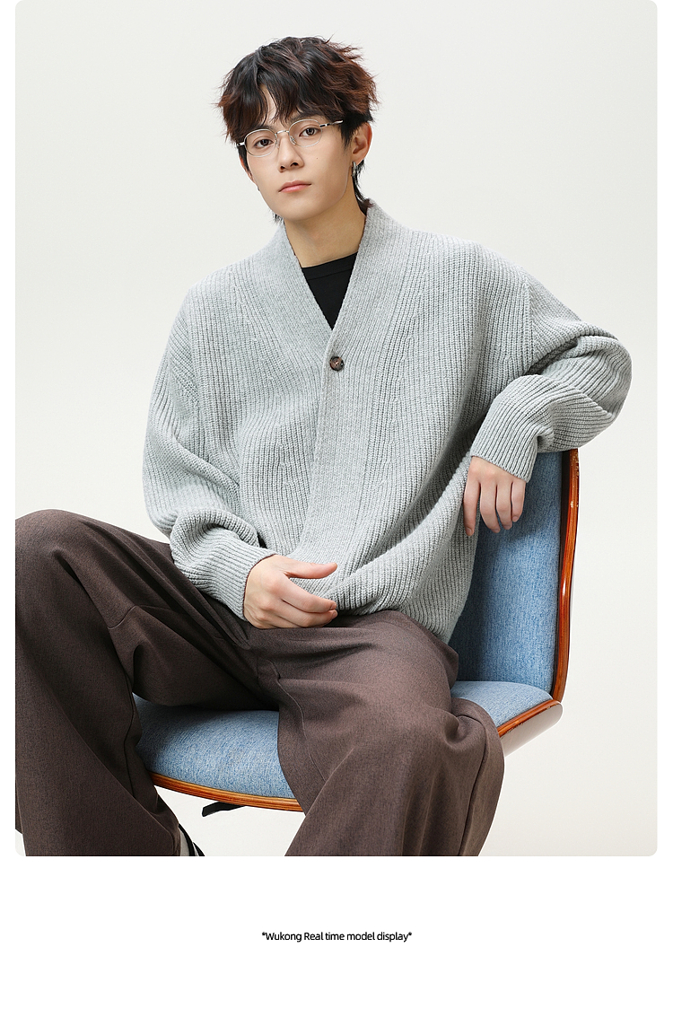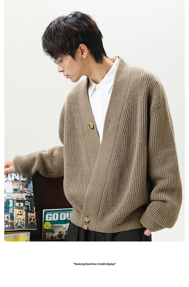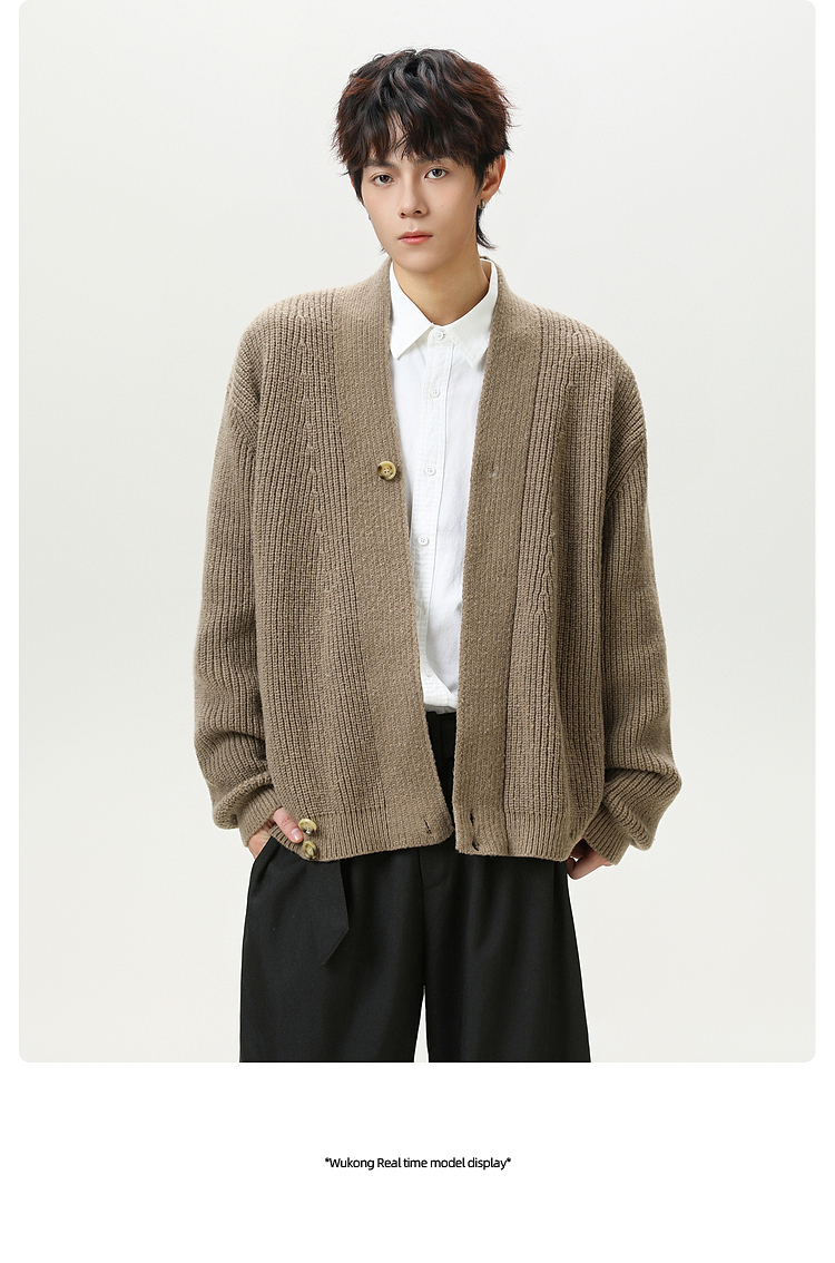 悟空有貨不規則斜紐釦開衫V領毛衣男女復古慵懶風情侶道袍針織衫