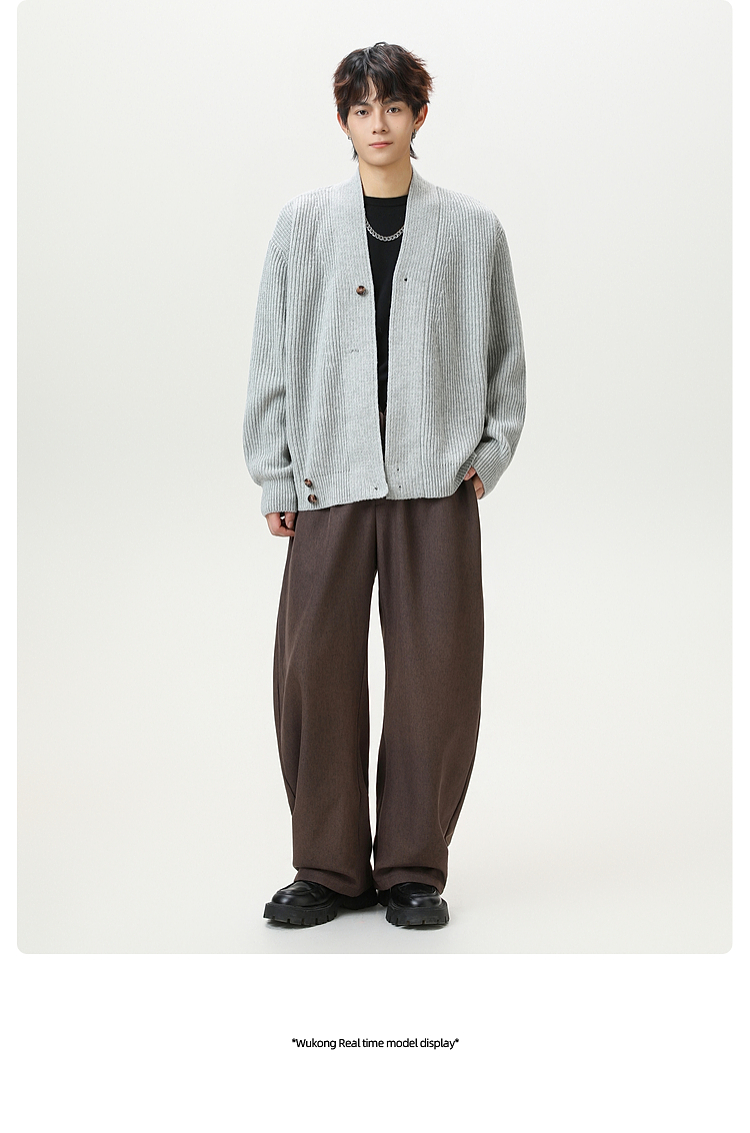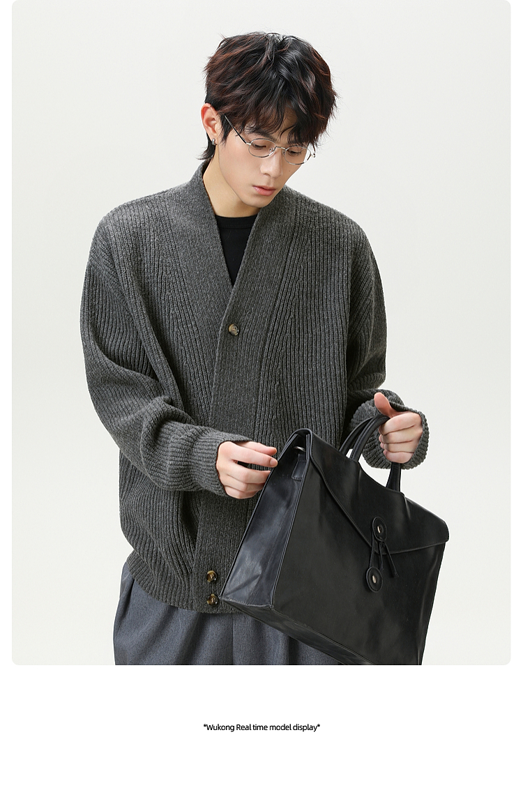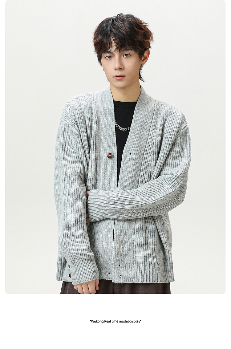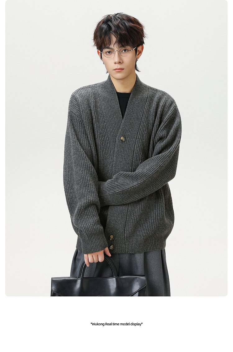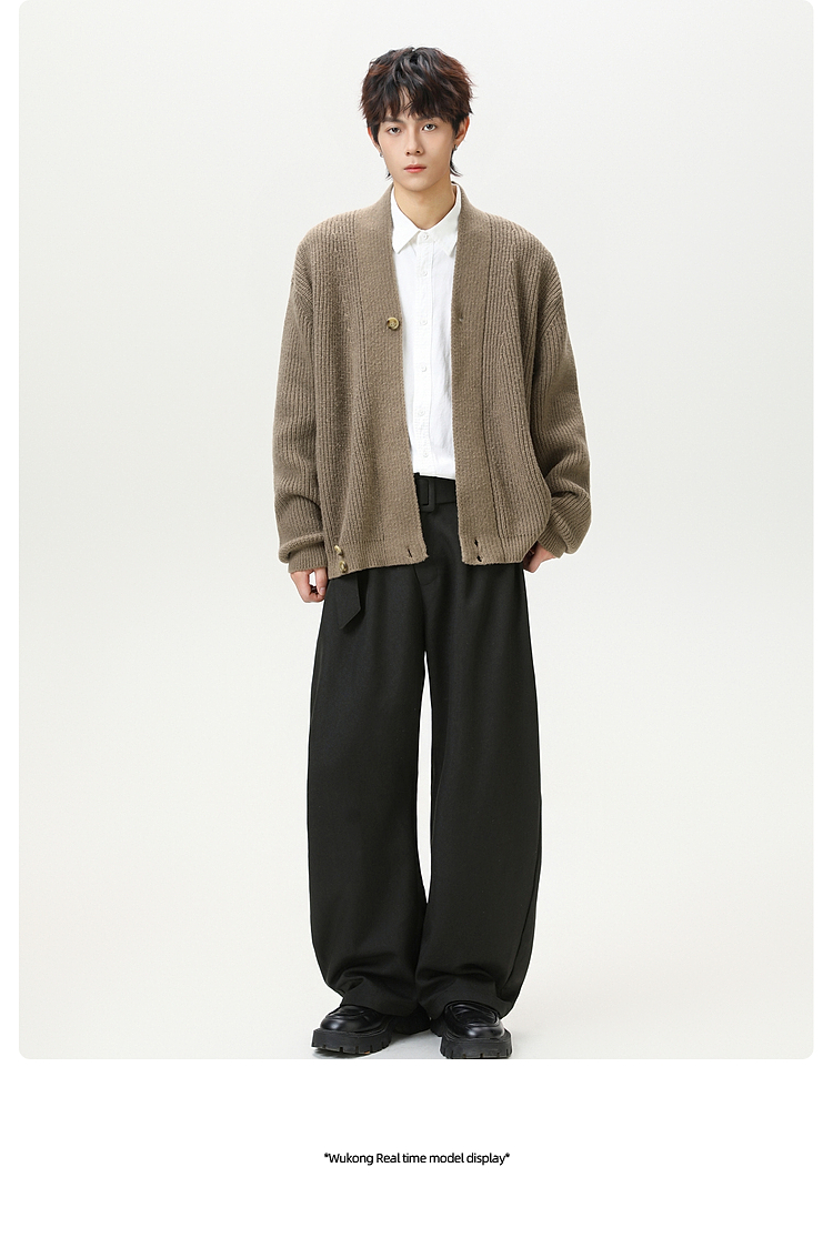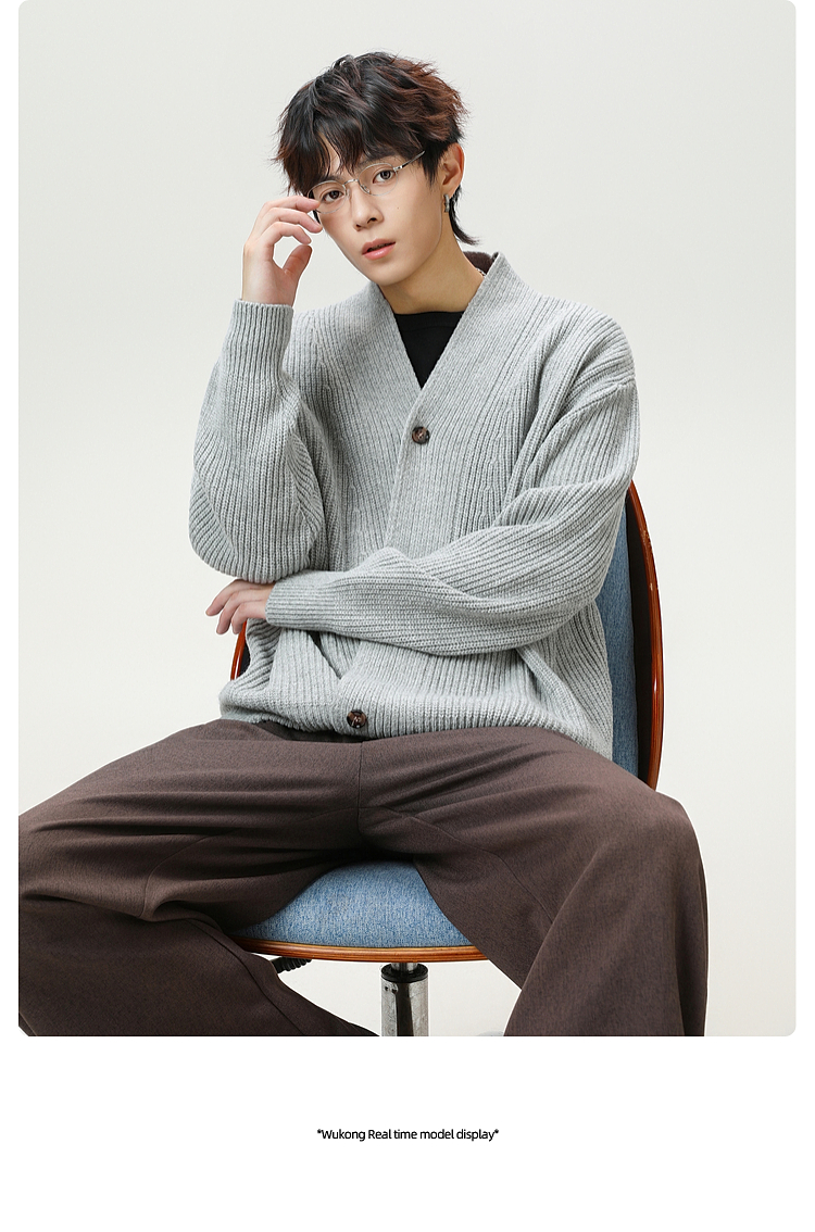 悟空有貨不規則斜紐釦開衫V領毛衣男女復古慵懶風情侶道袍針織衫