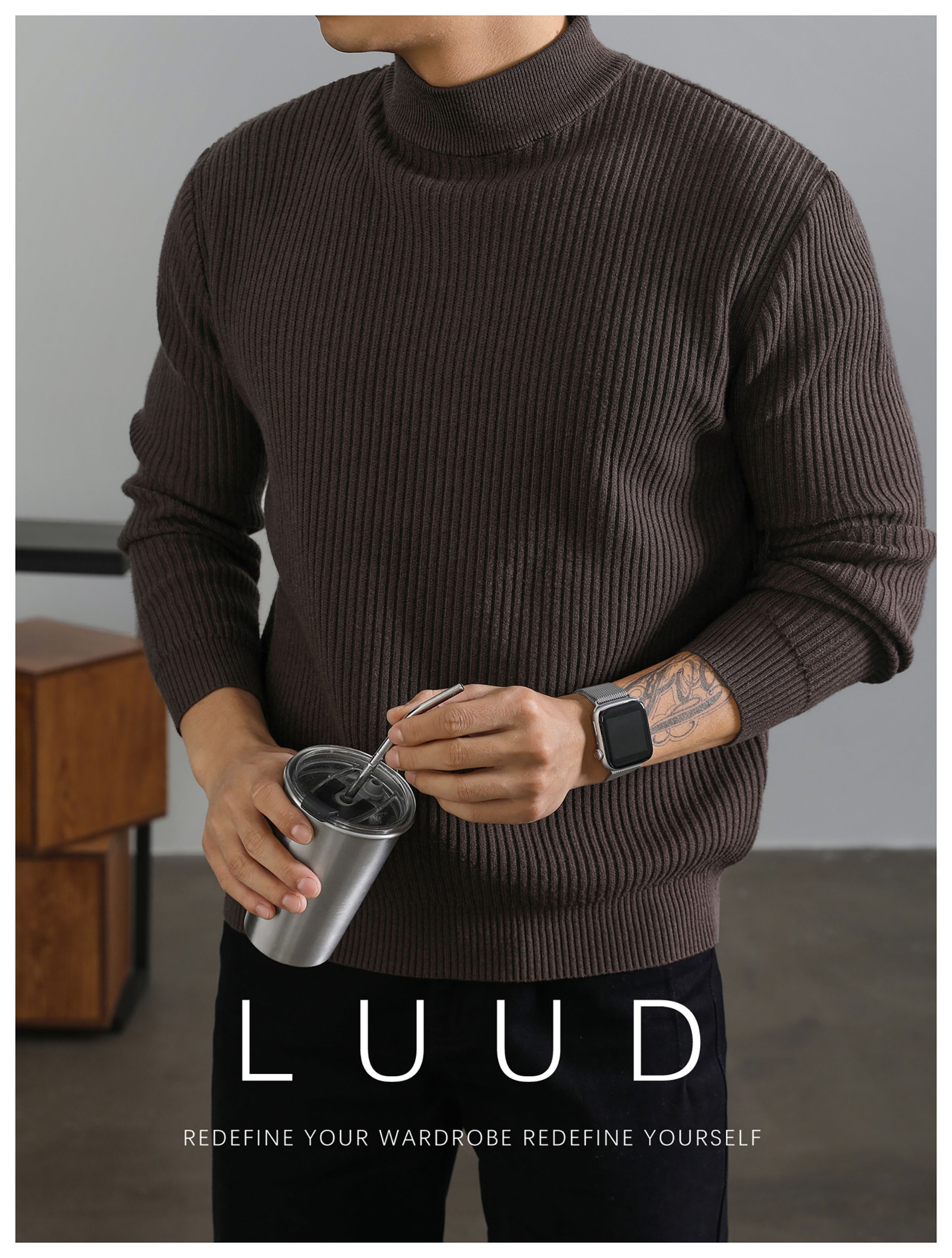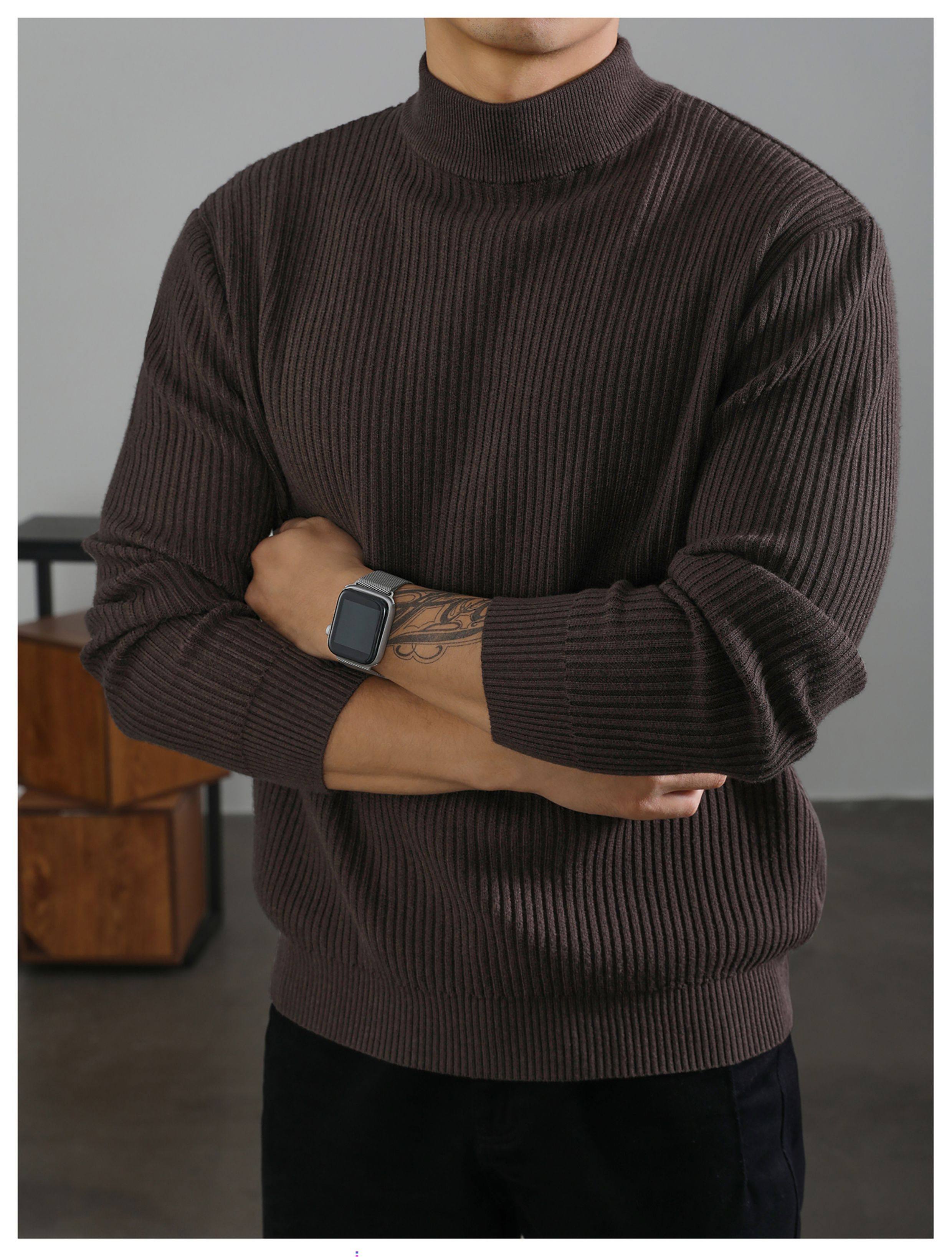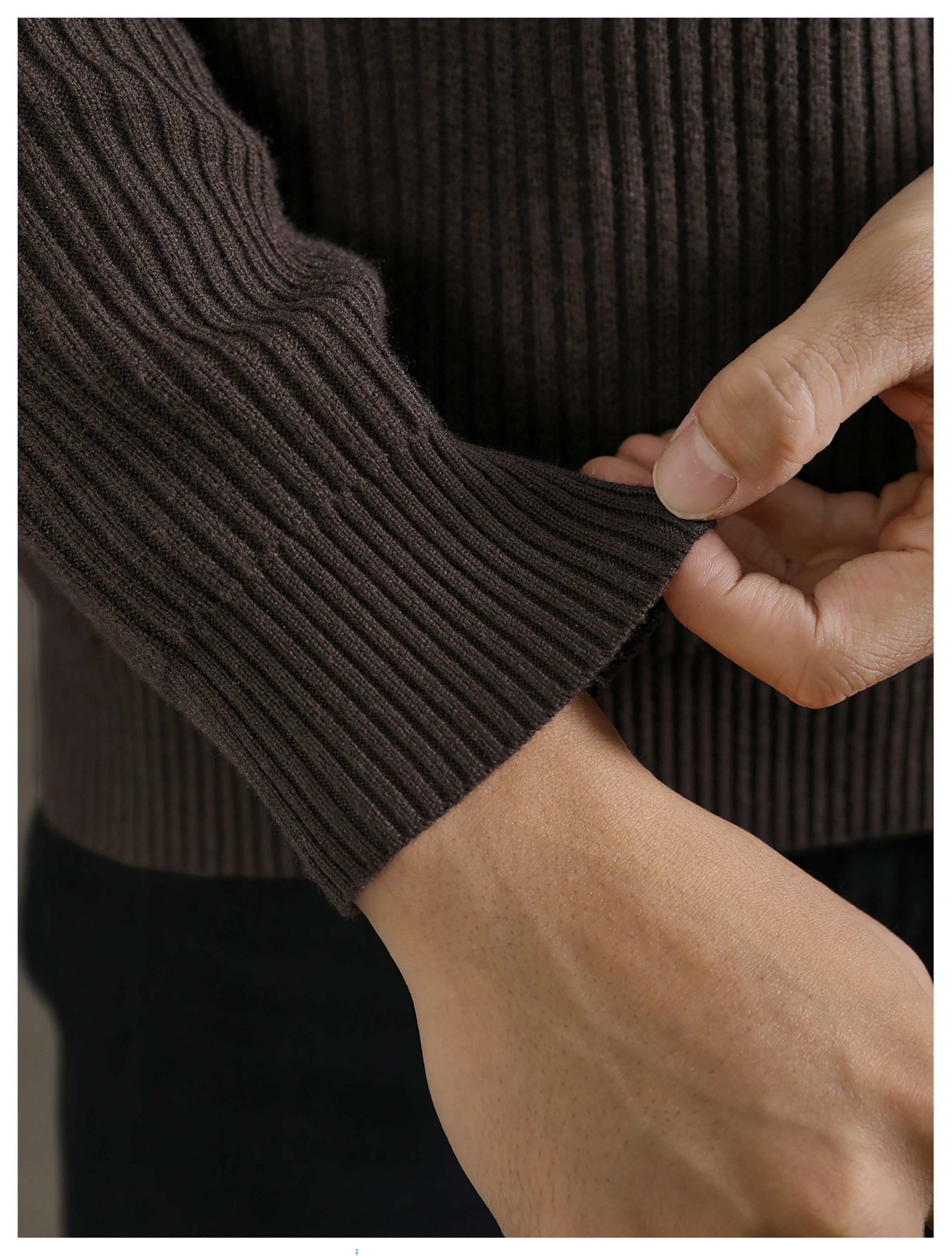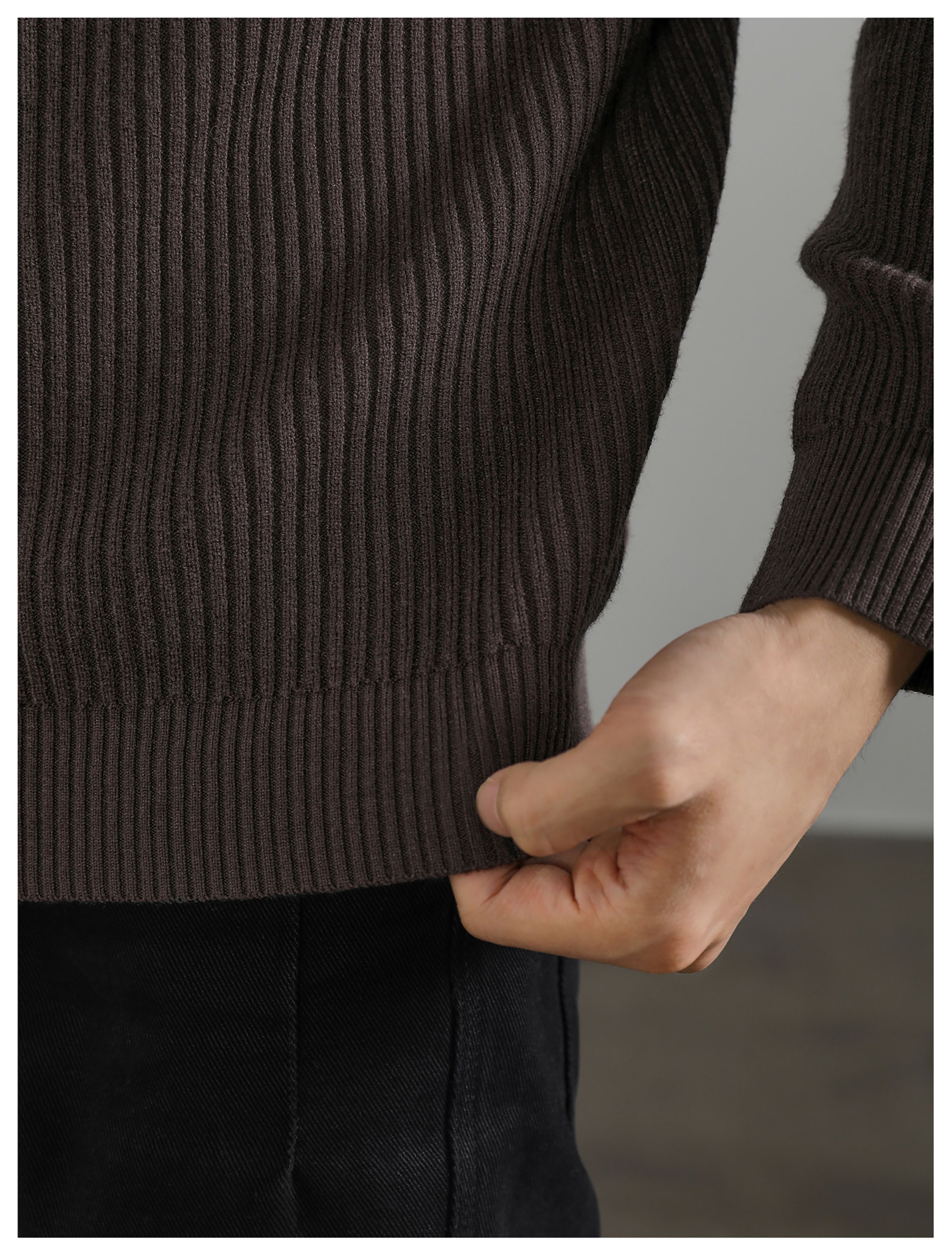 LUUD 咖啡色輕熟復古風毛衣男保暖套頭針織衫竪條紋理提花打底衫