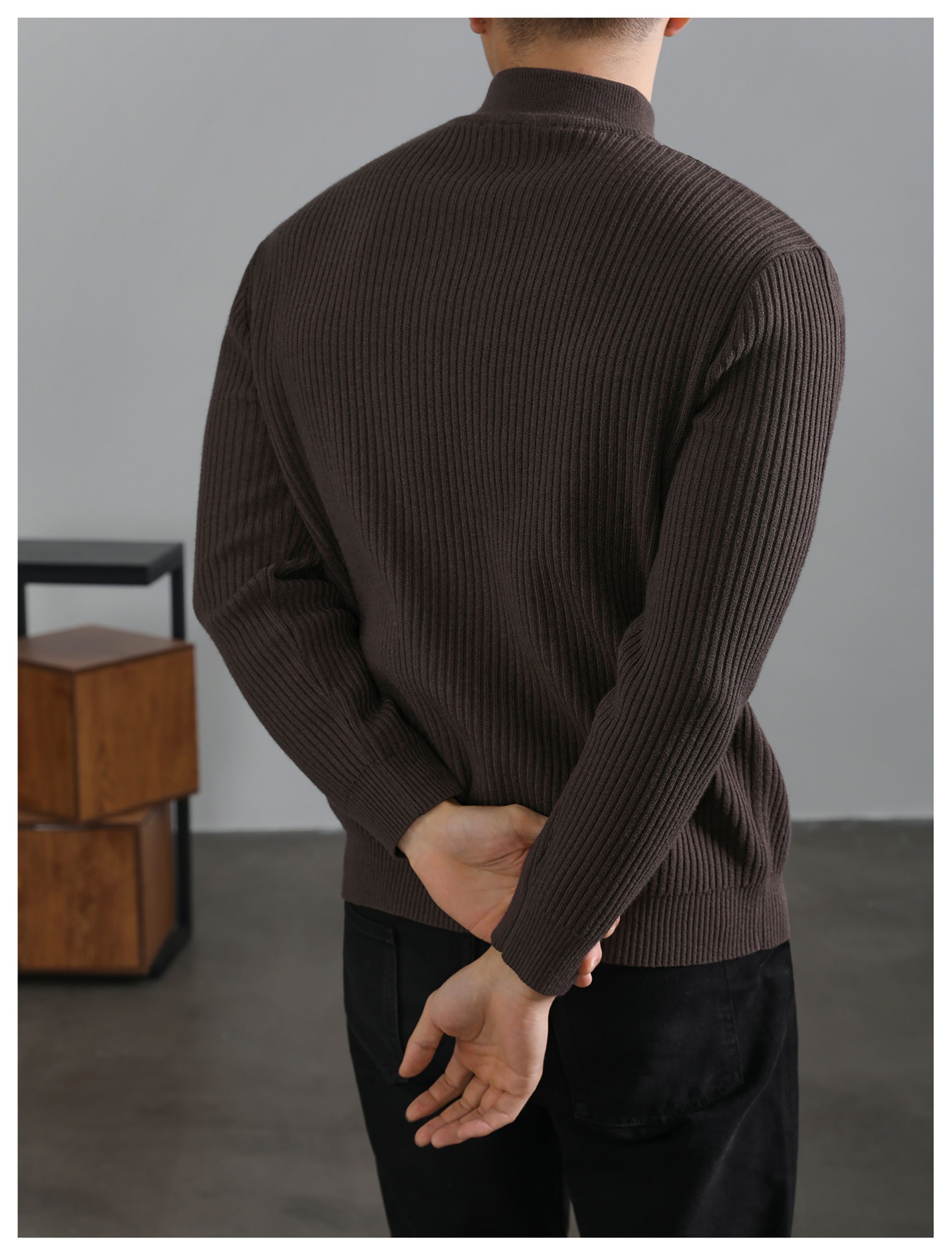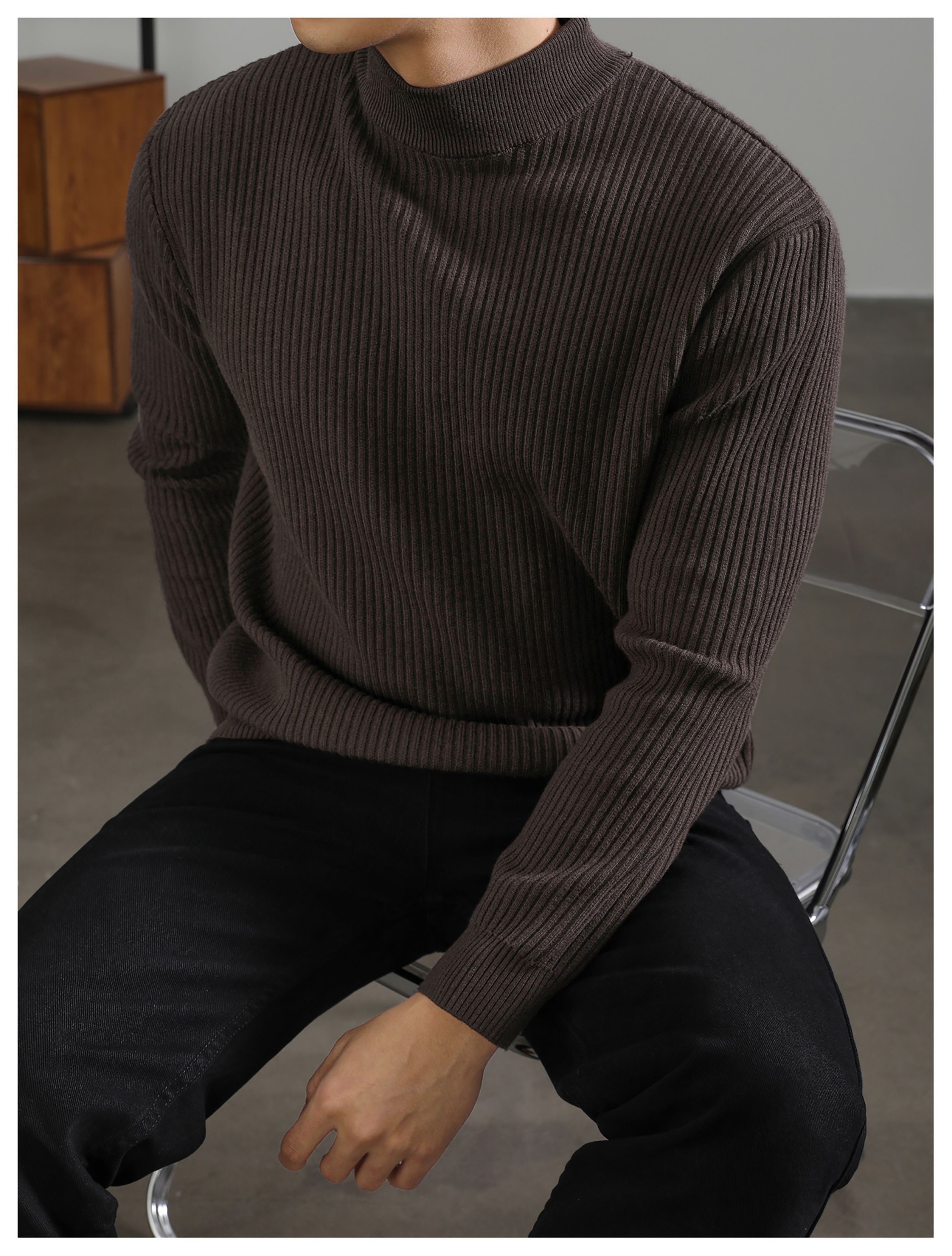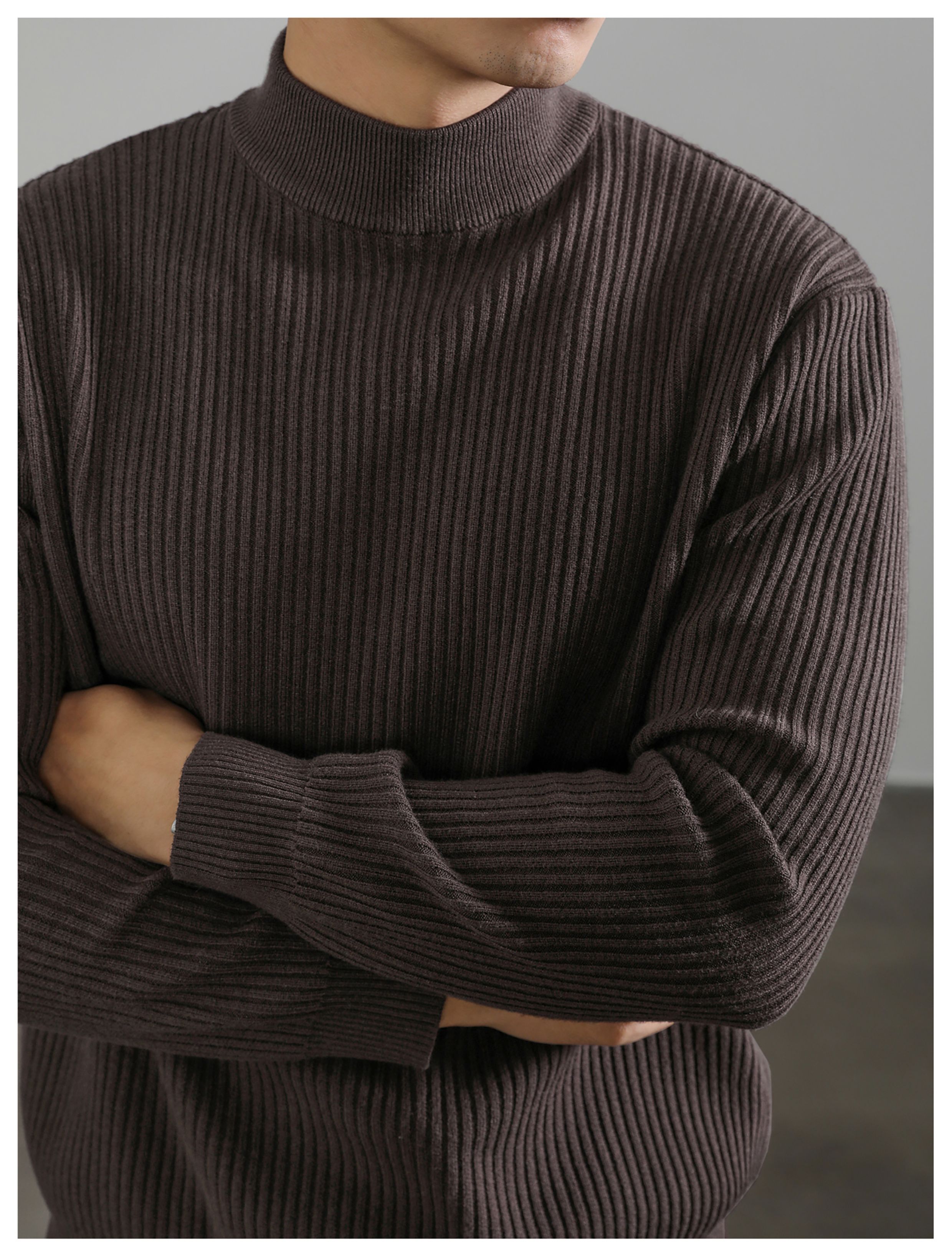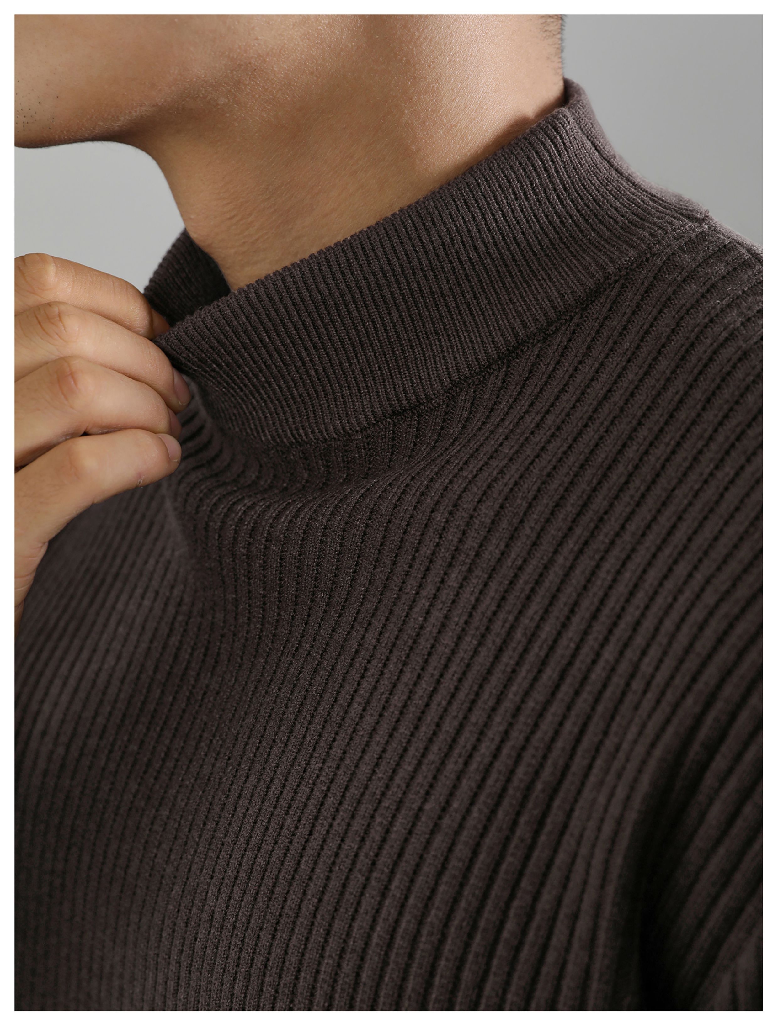 LUUD 咖啡色輕熟復古風毛衣男保暖套頭針織衫竪條紋理提花打底衫