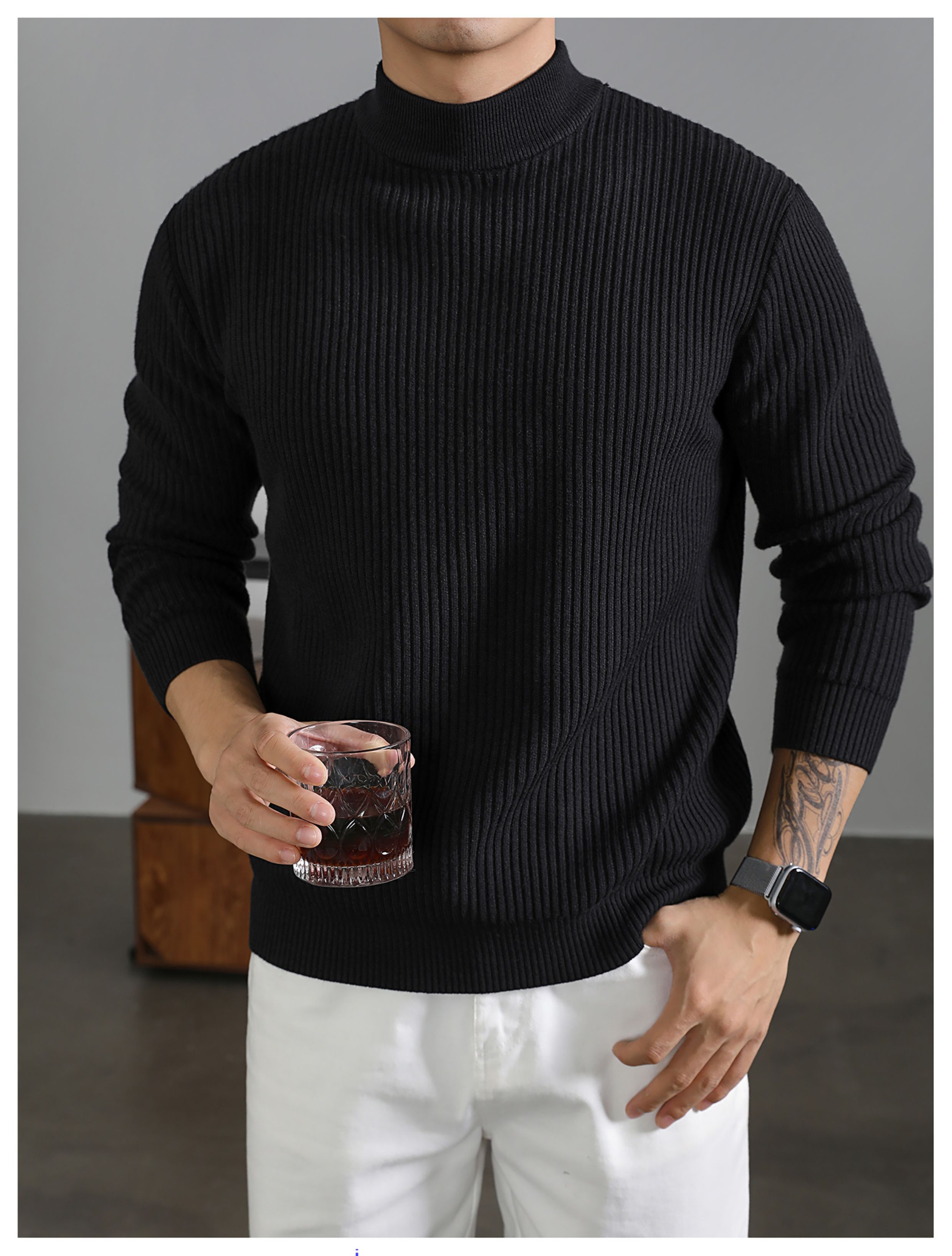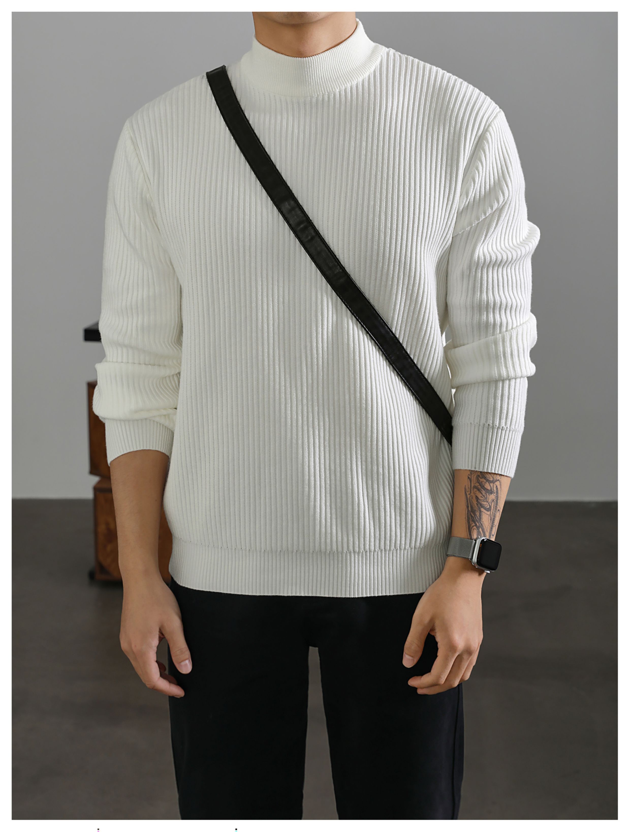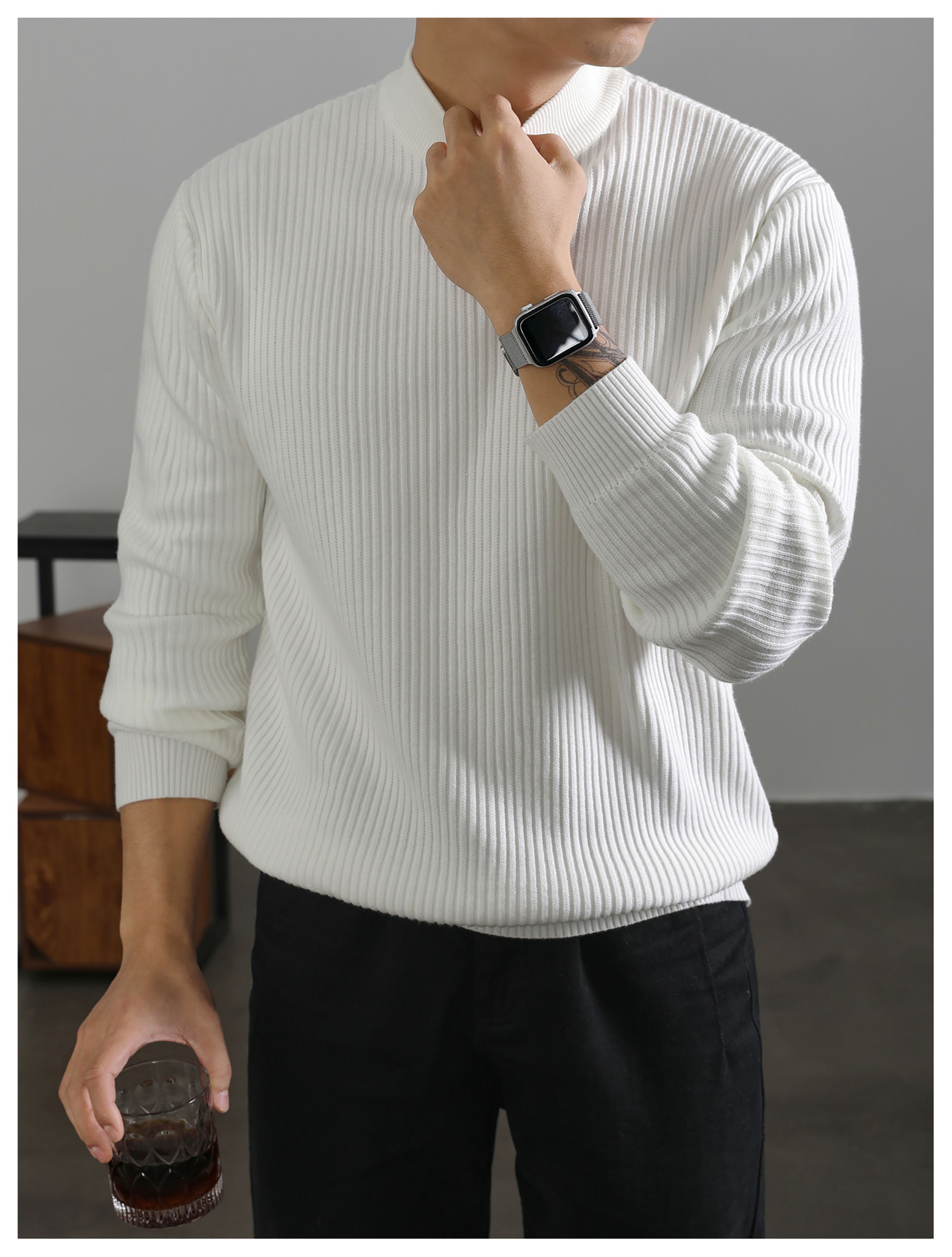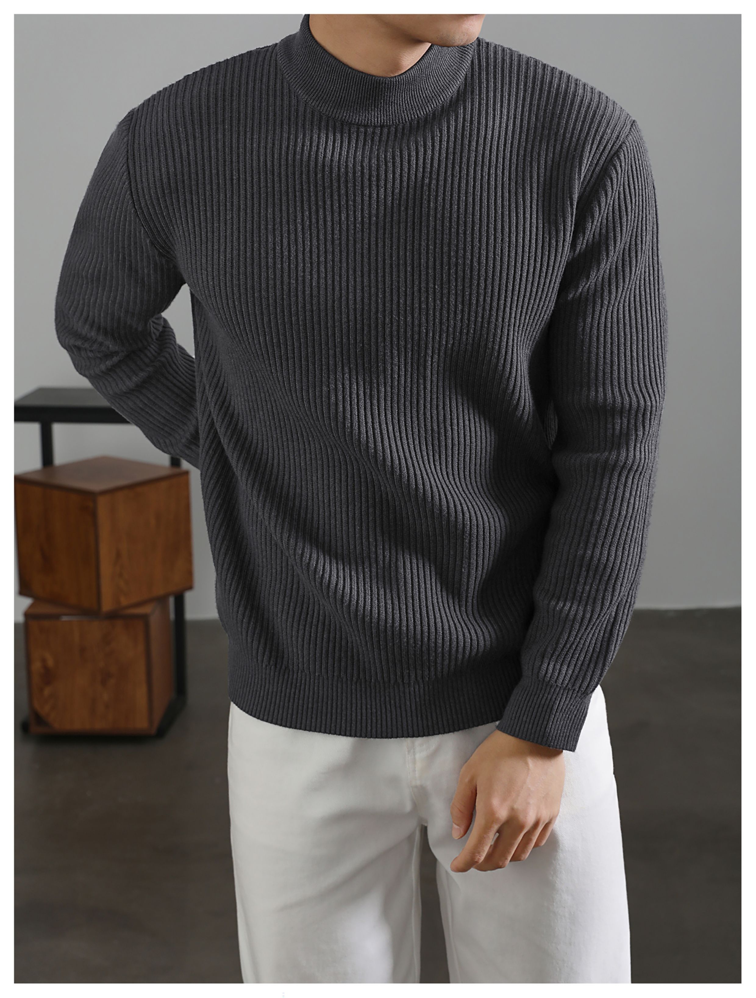 LUUD 咖啡色輕熟復古風毛衣男保暖套頭針織衫竪條紋理提花打底衫