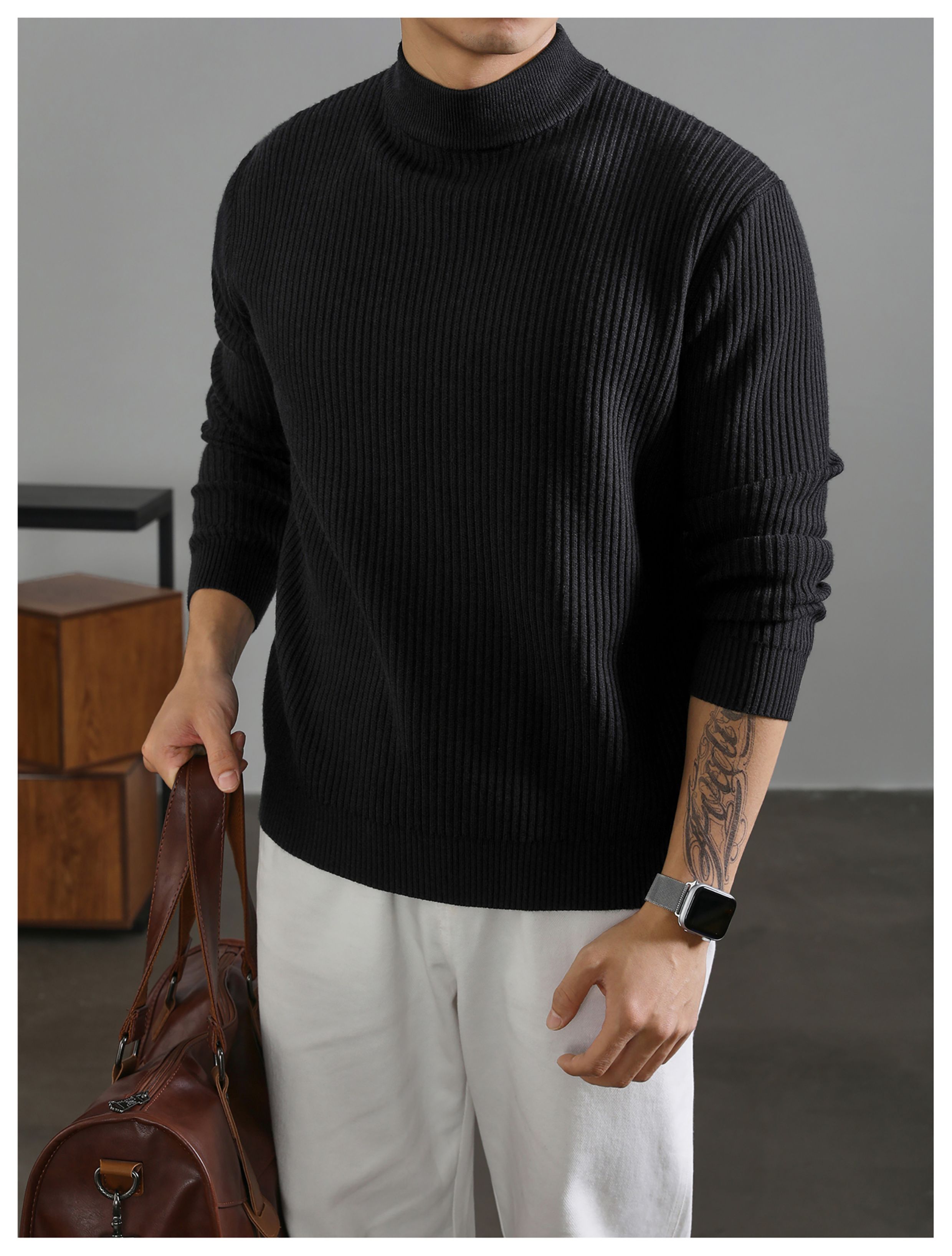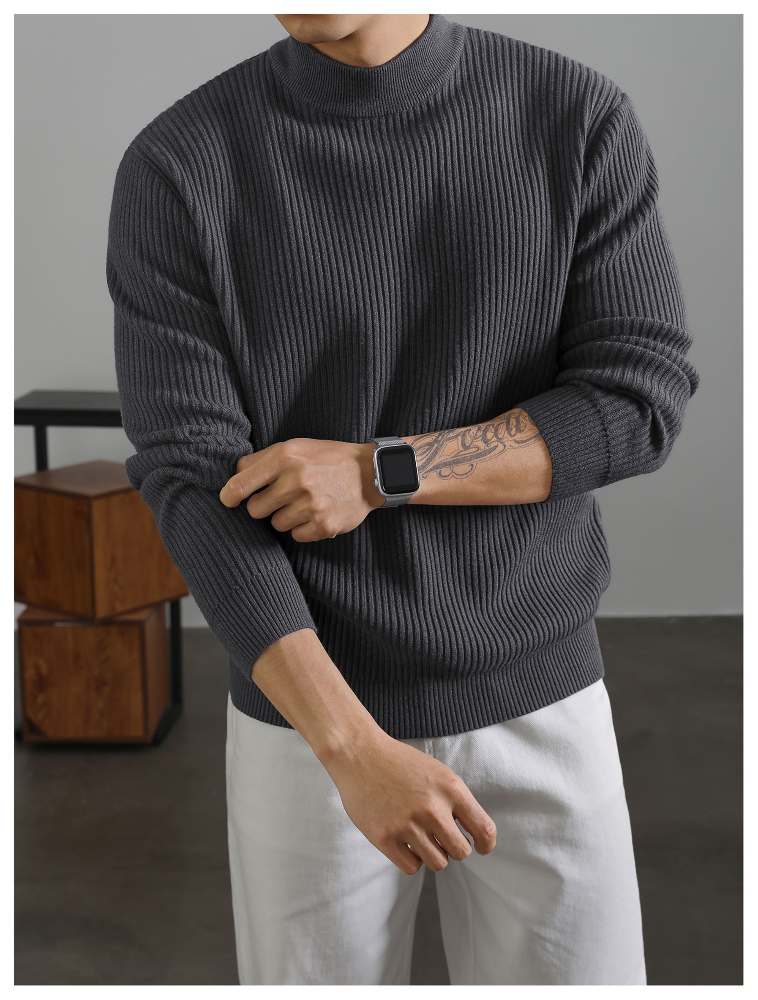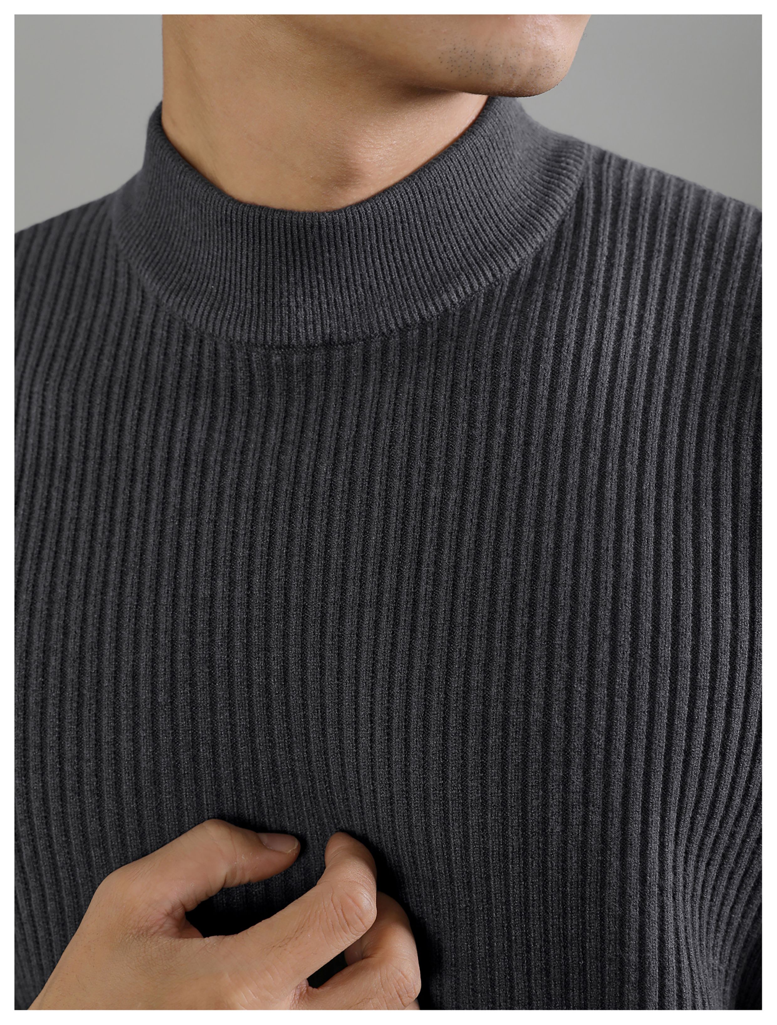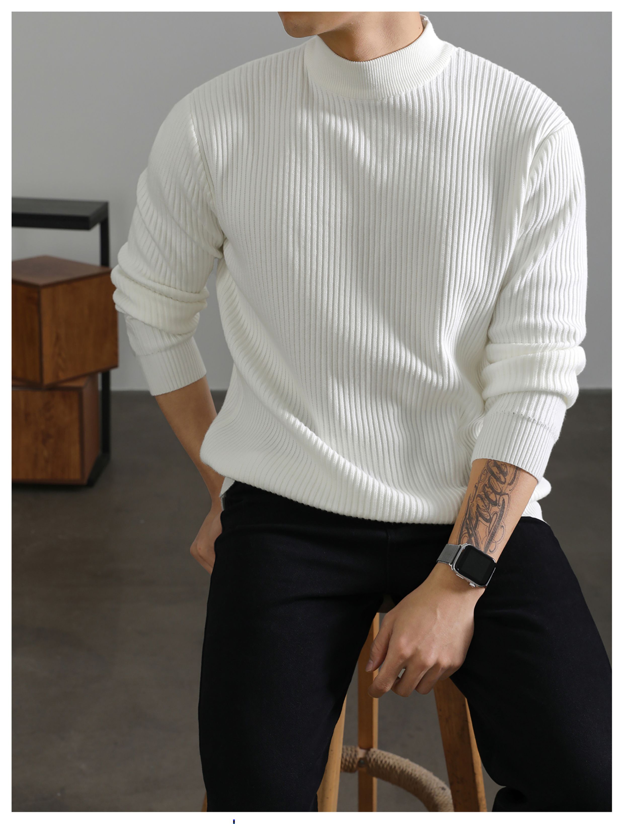 LUUD 咖啡色輕熟復古風毛衣男保暖套頭針織衫竪條紋理提花打底衫