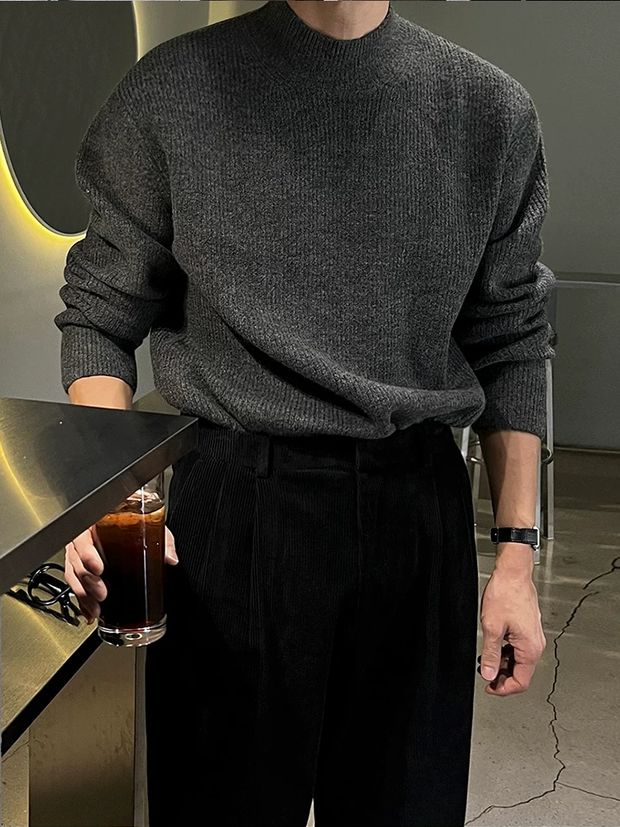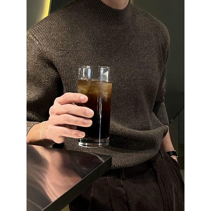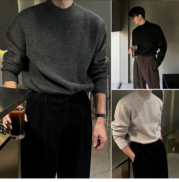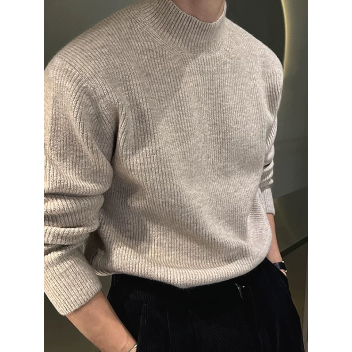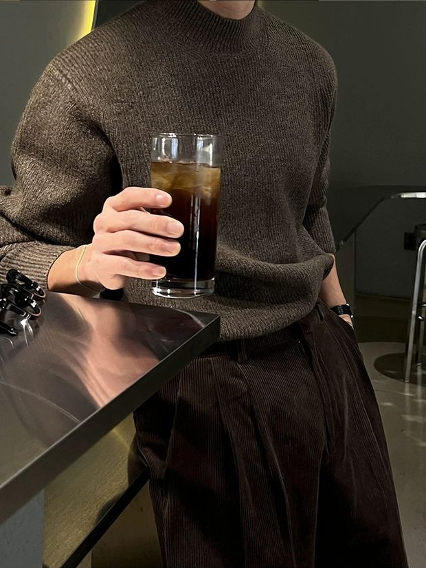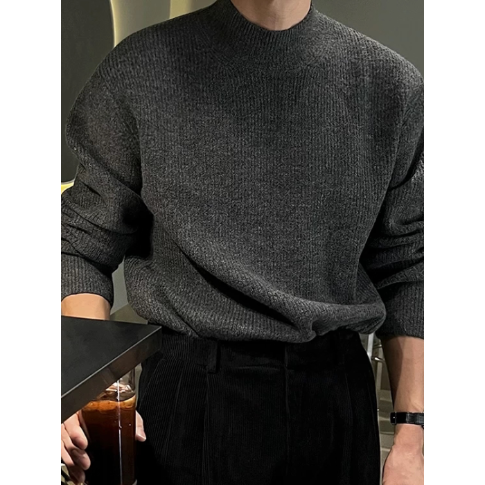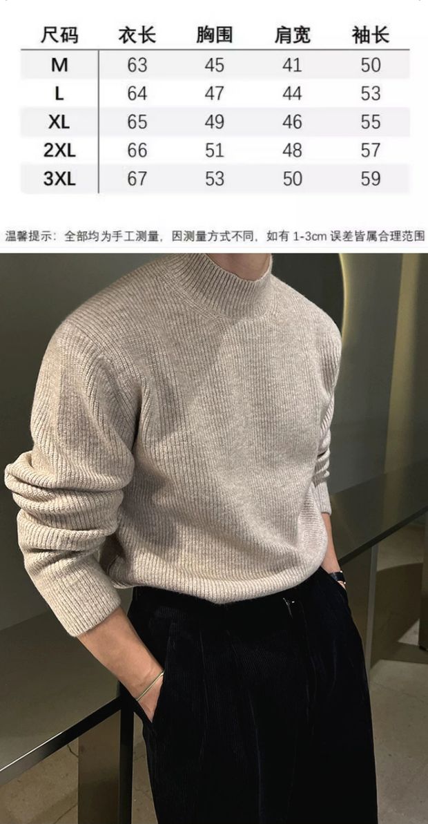 美式半高領針織衫男肌理感修身長袖衛衣薄款透氣包芯紗羊毛打底衫