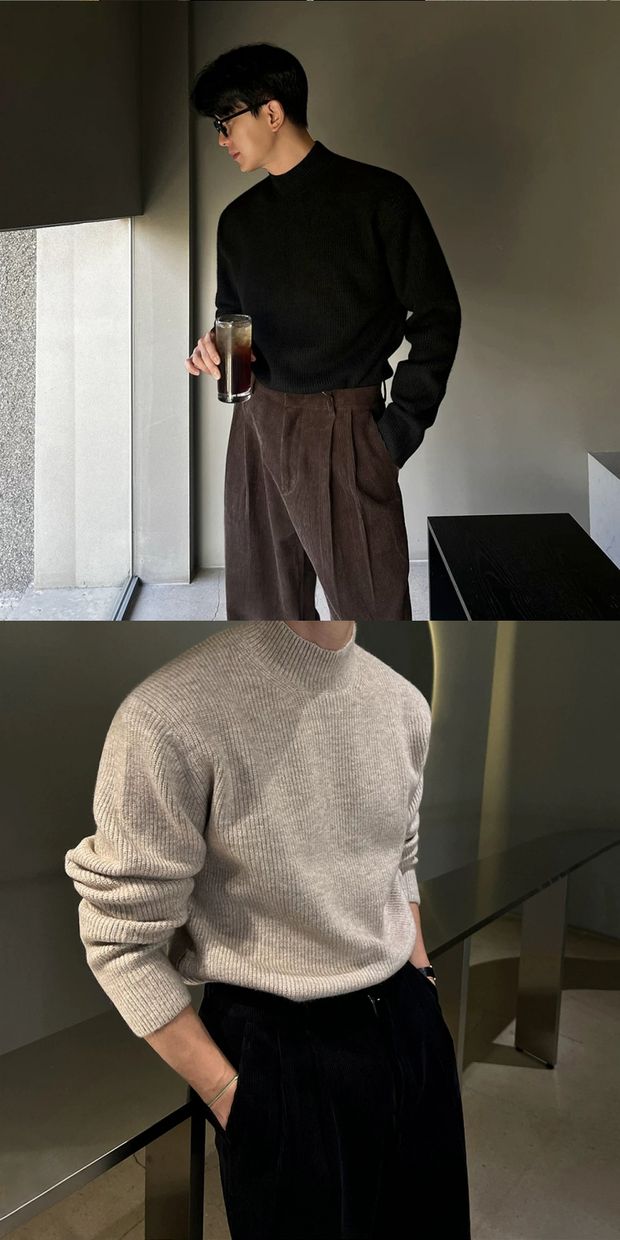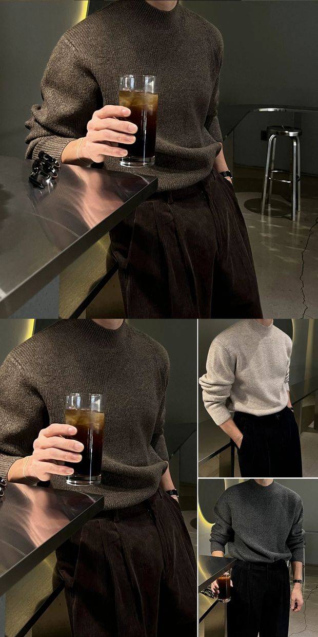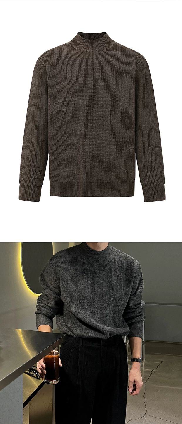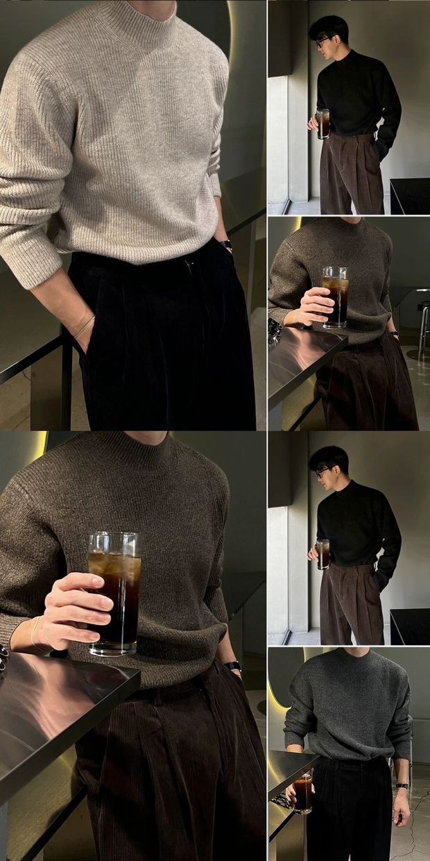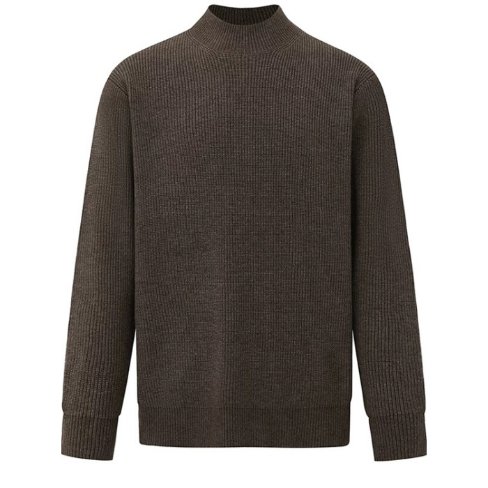 美式半高領針織衫男肌理感修身長袖衛衣薄款透氣包芯紗羊毛打底衫
