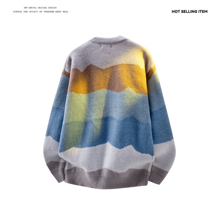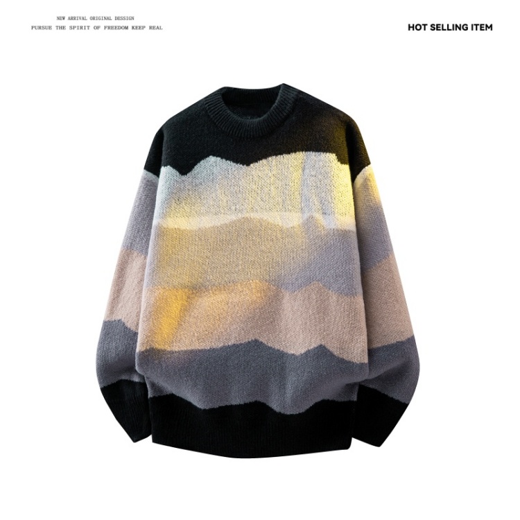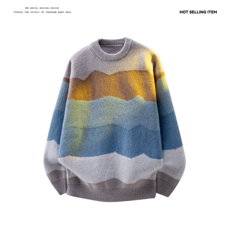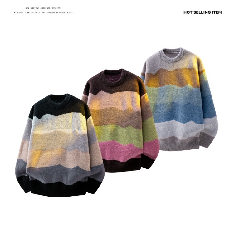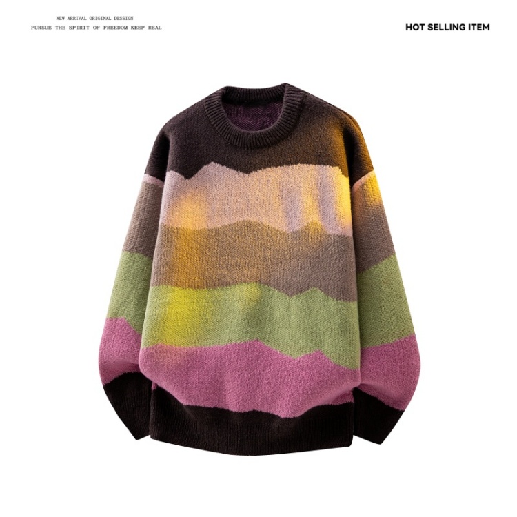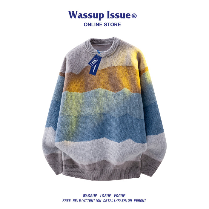 WASSUP ISSUE多巴胺時尚圓領針織衫毛衣男款秋冬季痞帥寬松上衣男