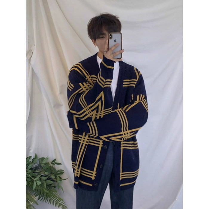 日系慵嬾風男士開衫針織衫秋冬季新款潮流外套高級感寬鬆百搭毛衣