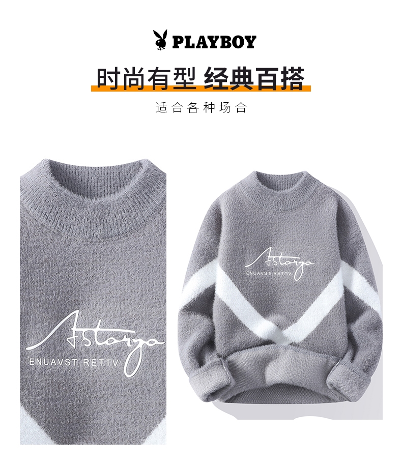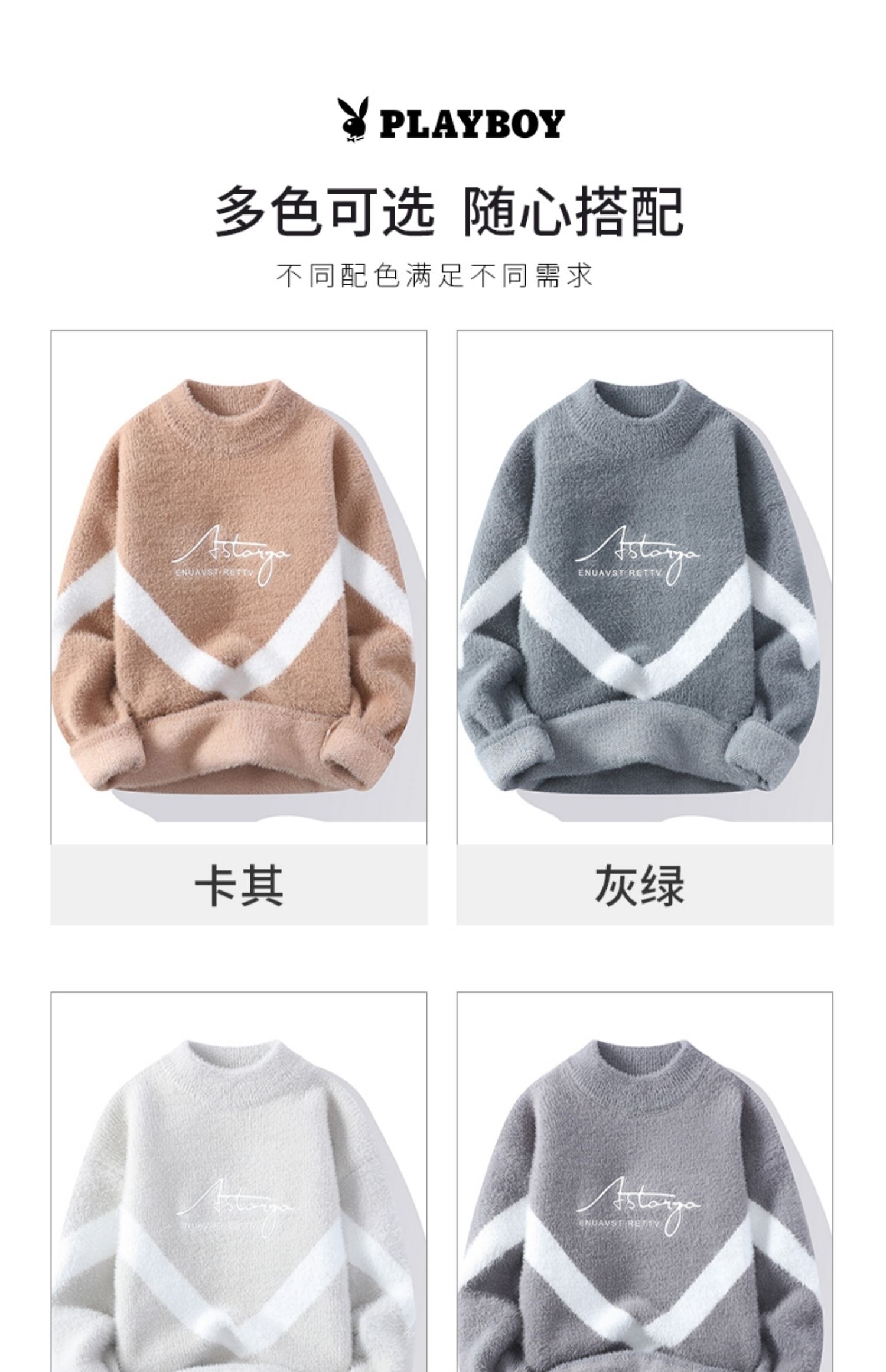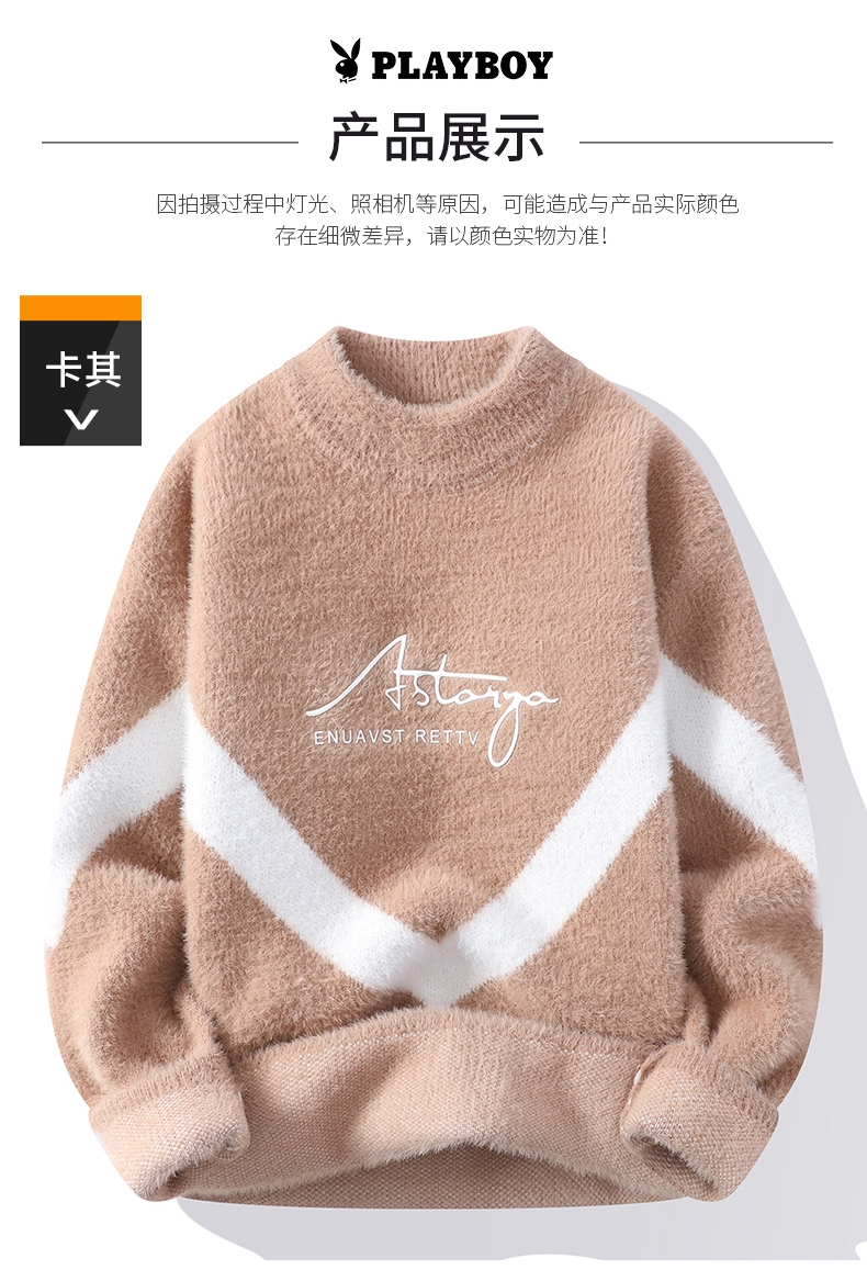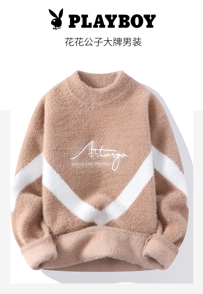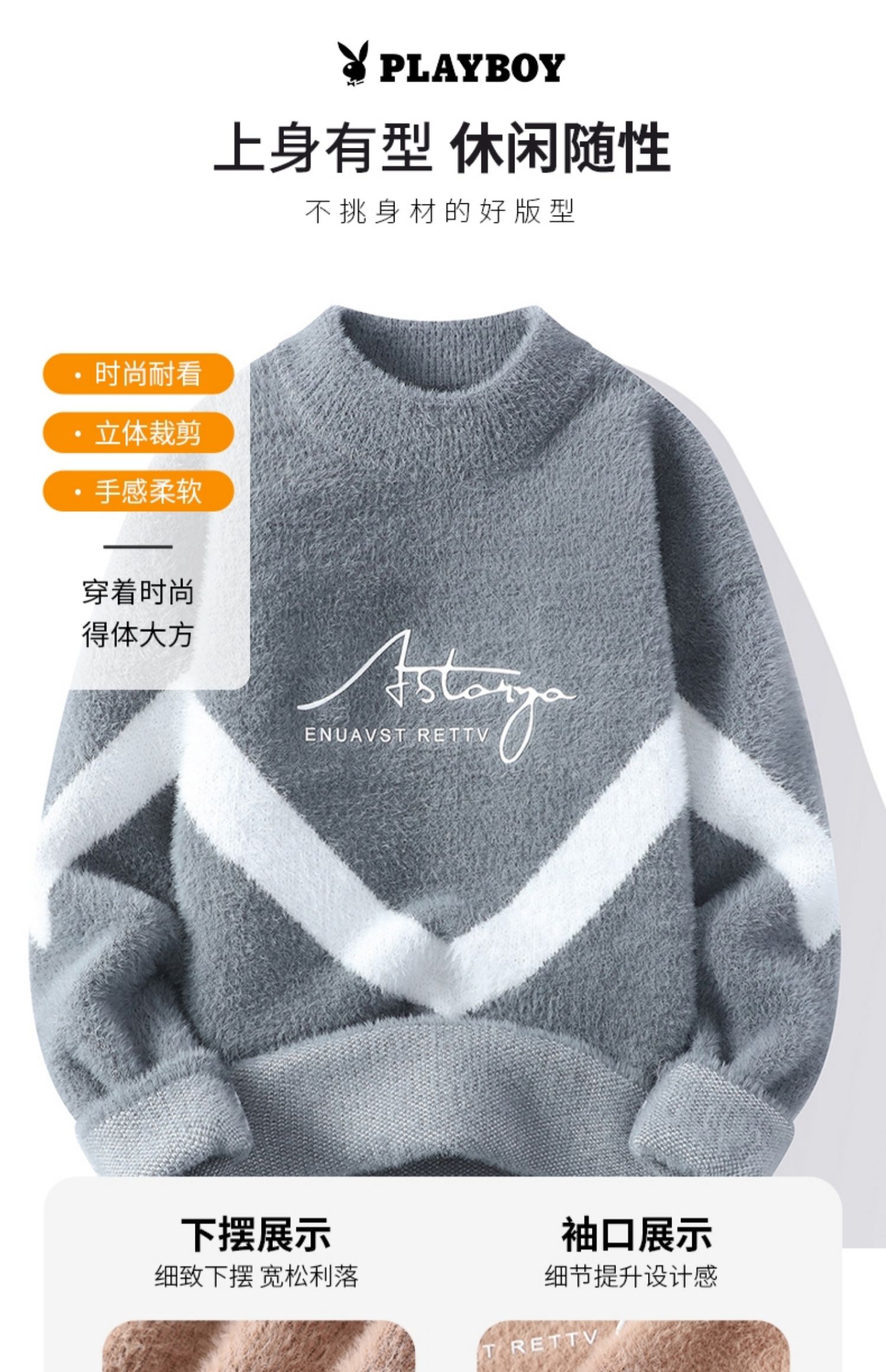 花花公子水貂絨毛衣男士冬季韓版加厚保暖圓領羊毛衫男潮流打底衫