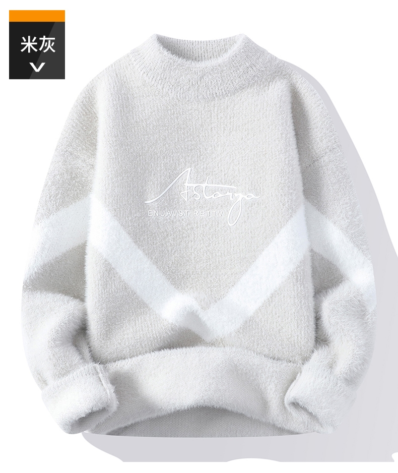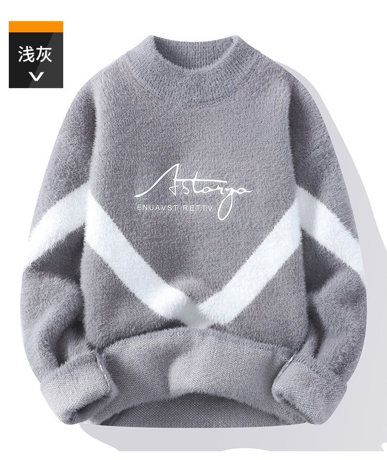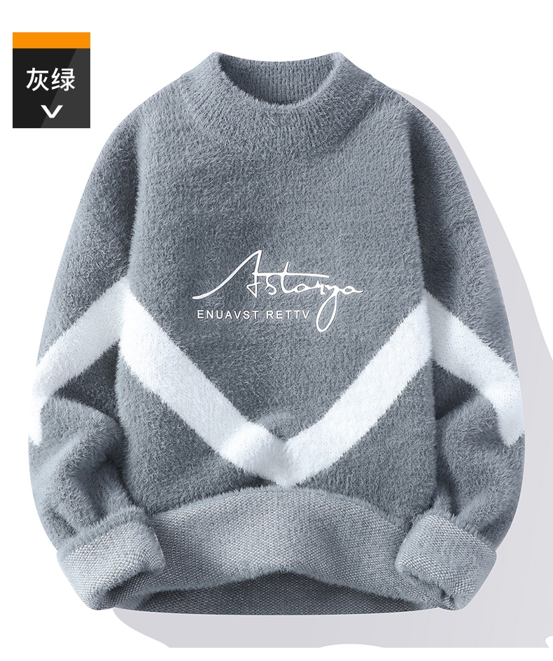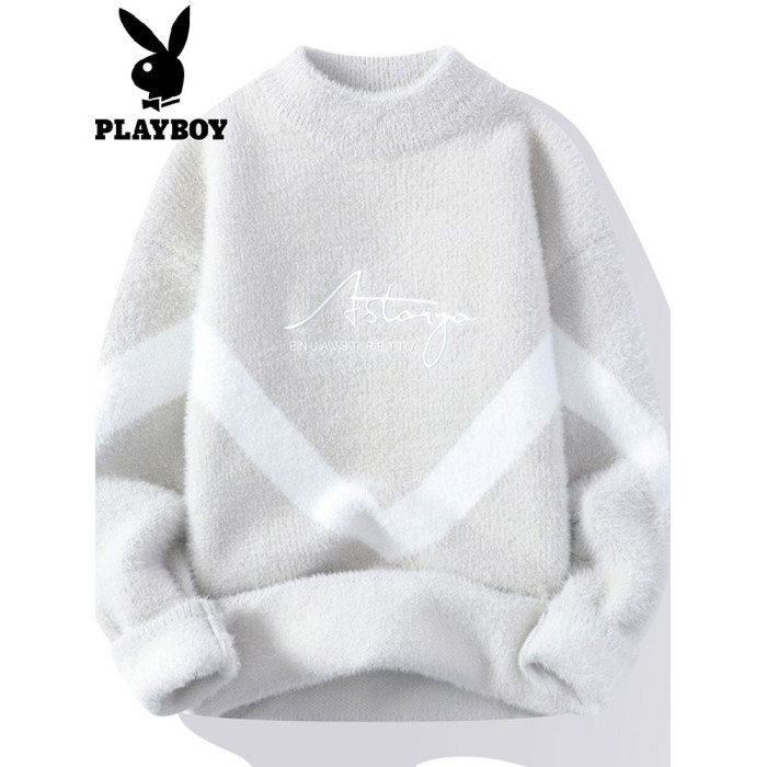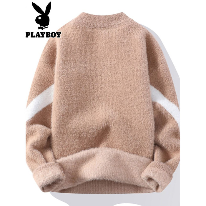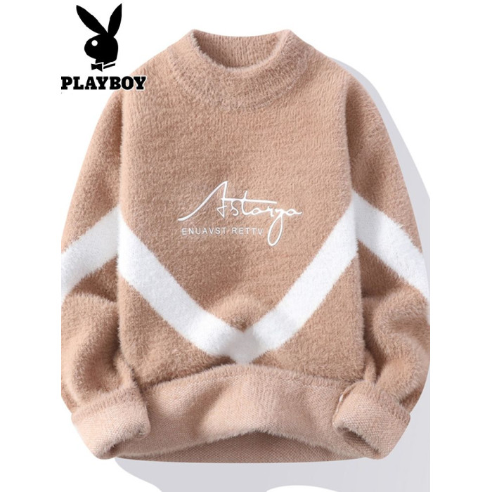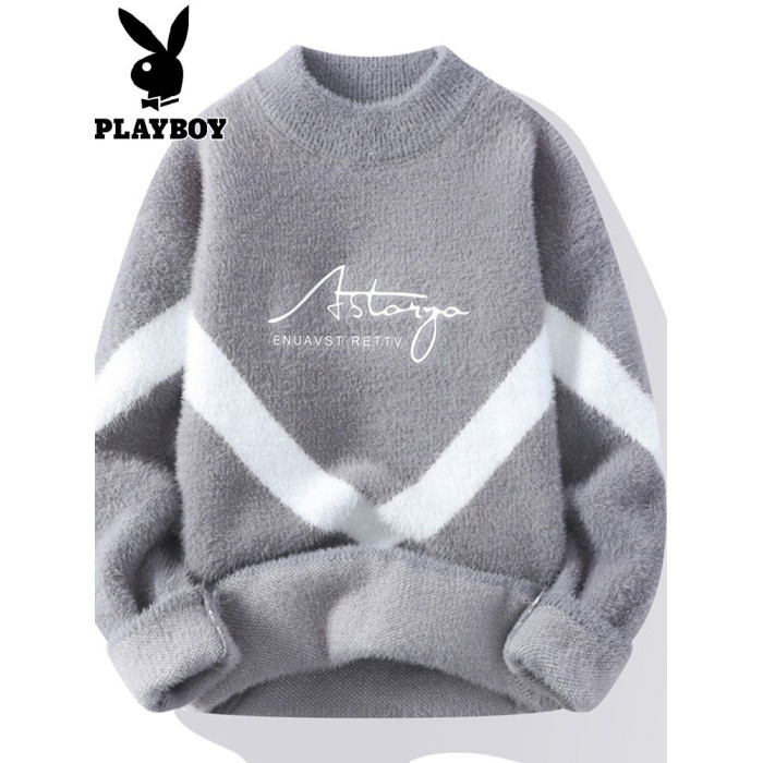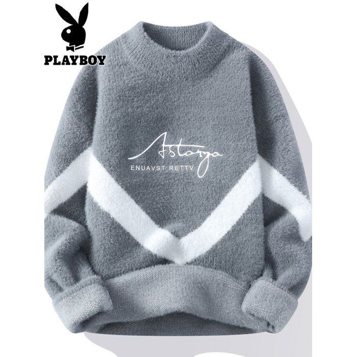 花花公子水貂絨毛衣男士冬季韓版加厚保暖圓領羊毛衫男潮流打底衫