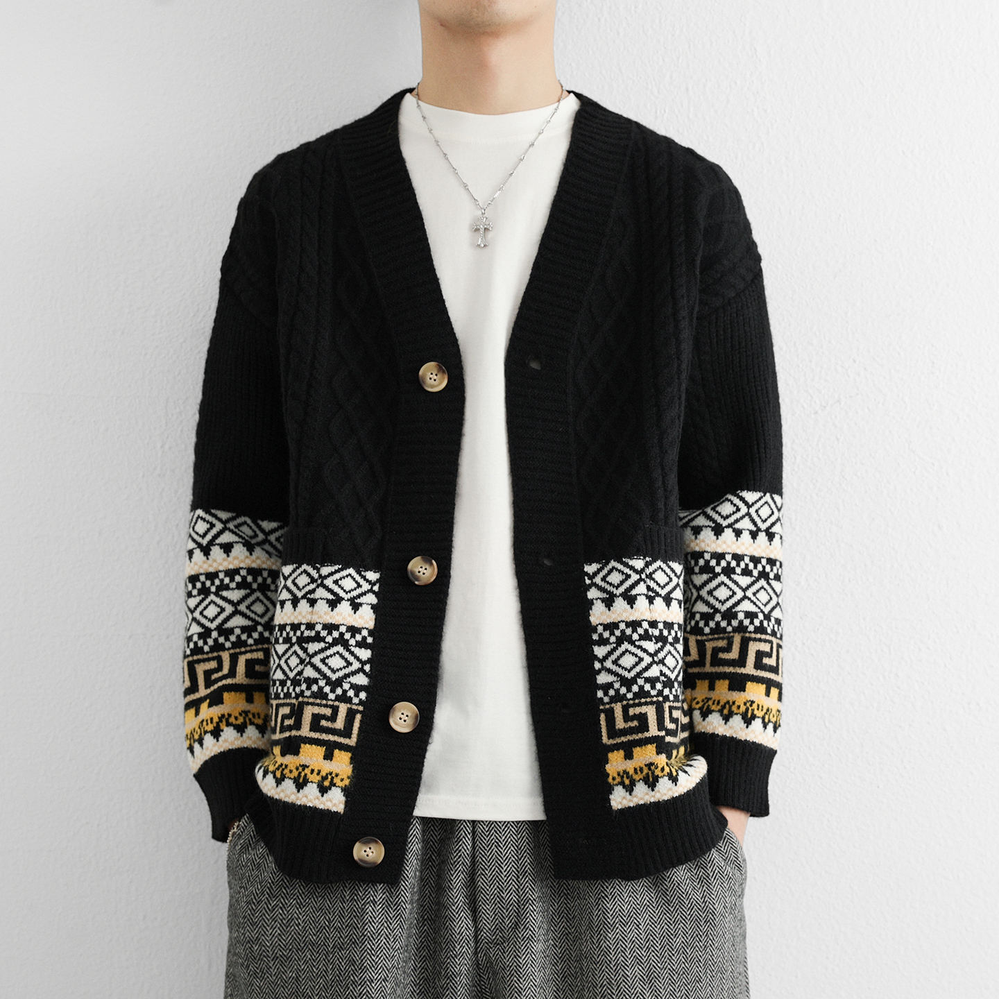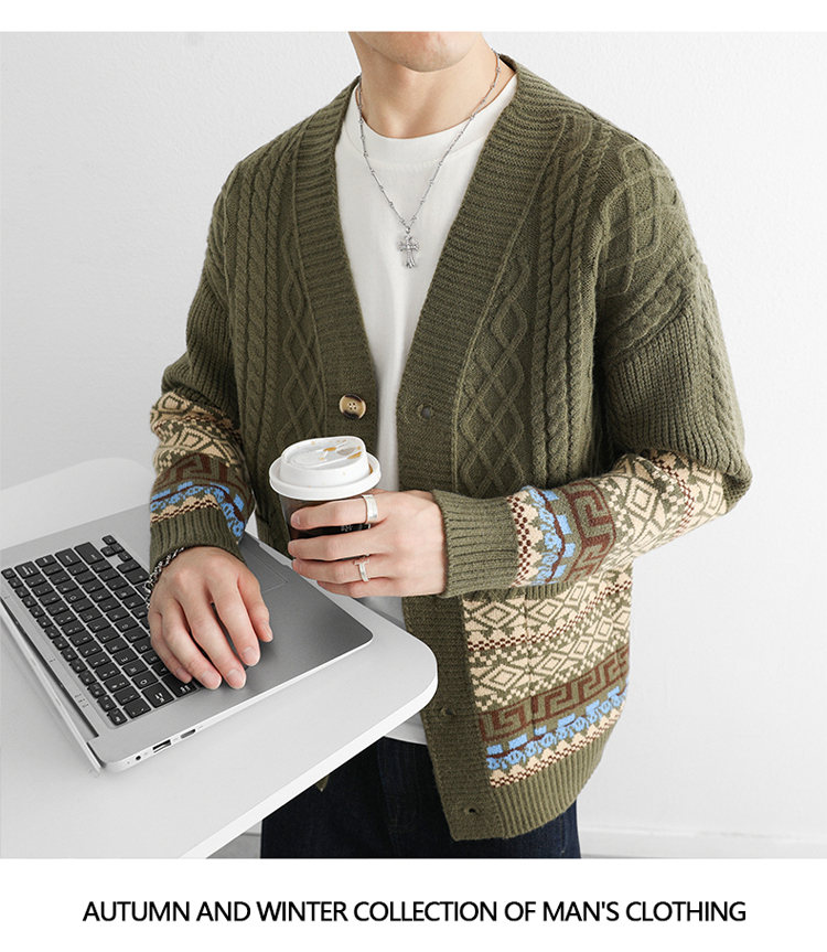新款男士毛衣外套秋冬季加厚保暖針織衫休閒百搭時尚潮流開衫外套