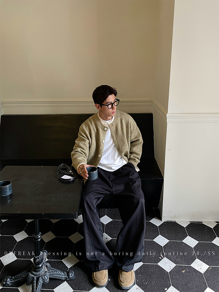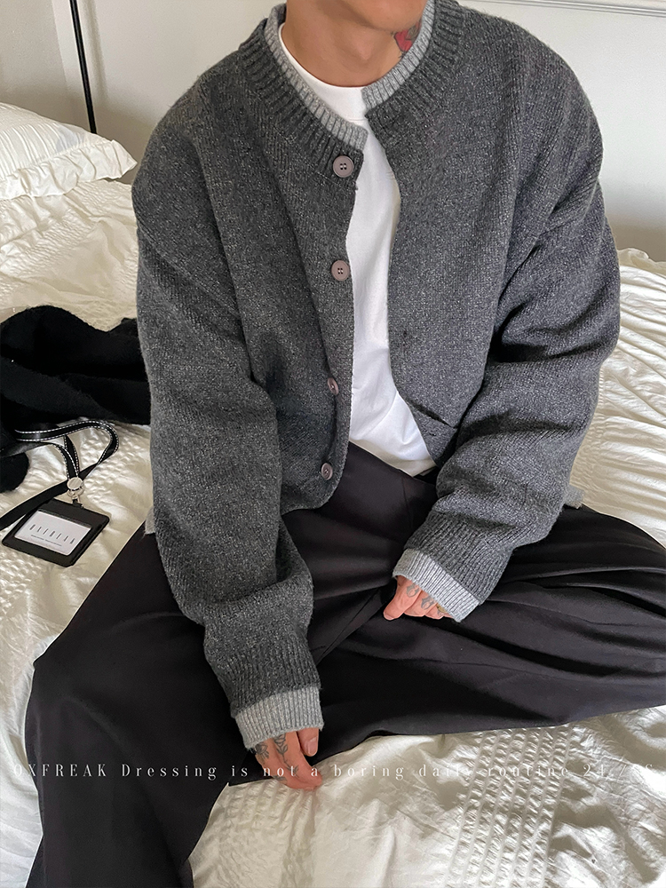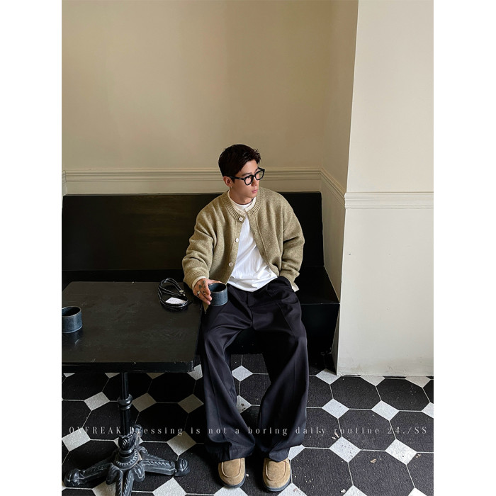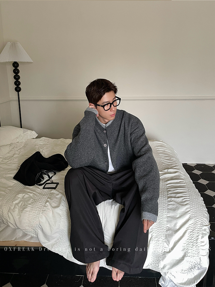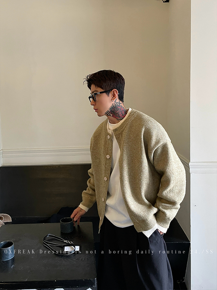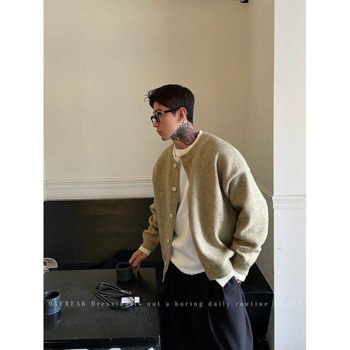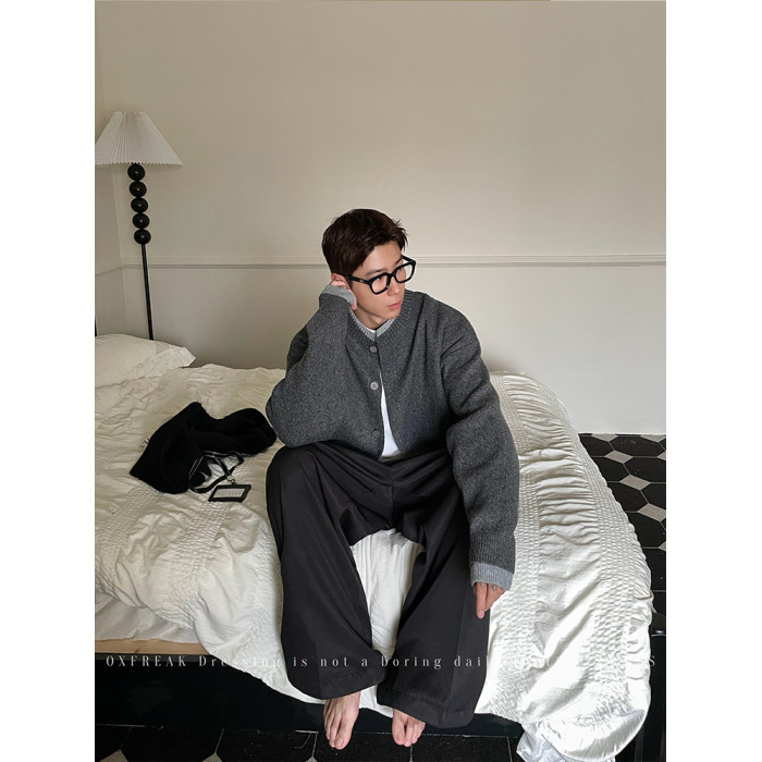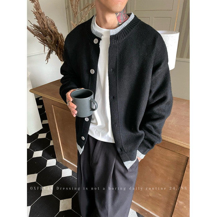 韓版假兩件老錢風開衫針織毛衣男士秋冬季寬松休閒痞帥保暖外套潮
