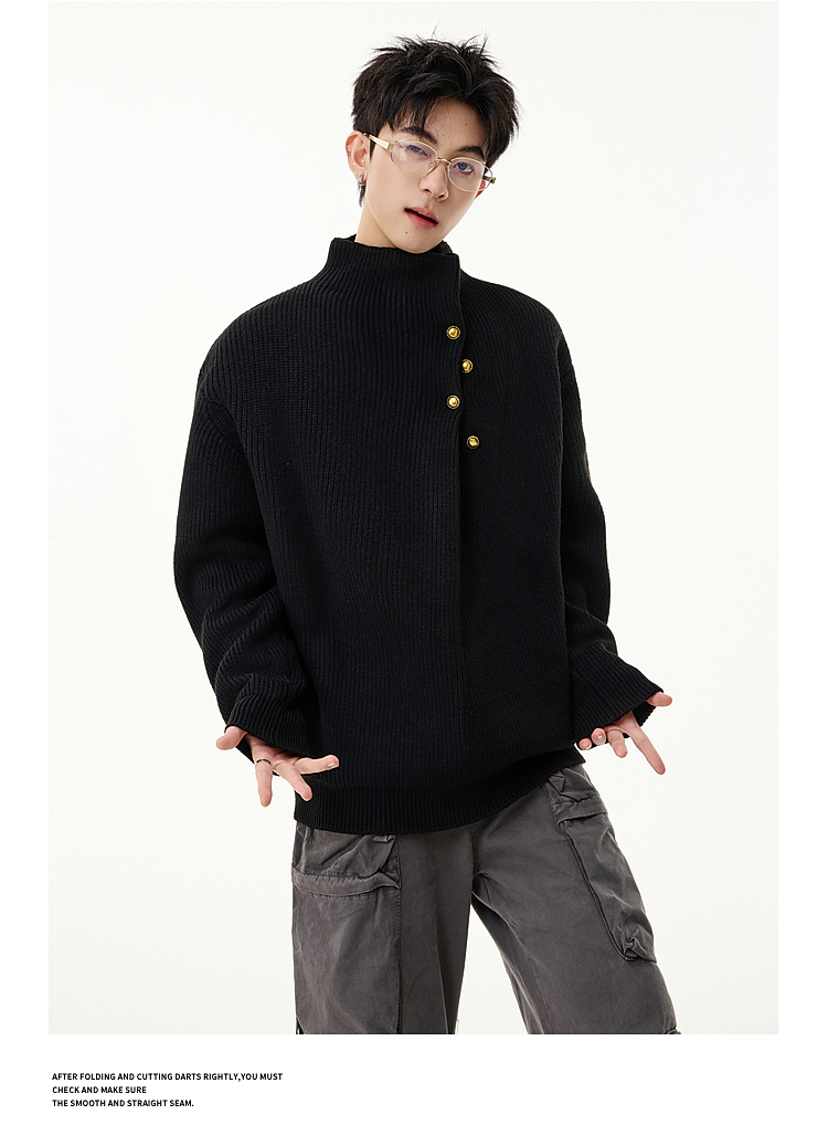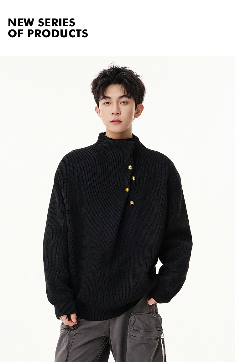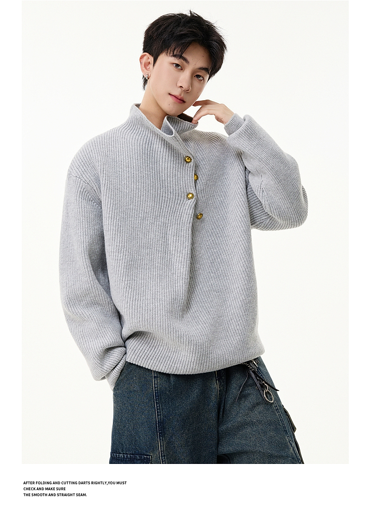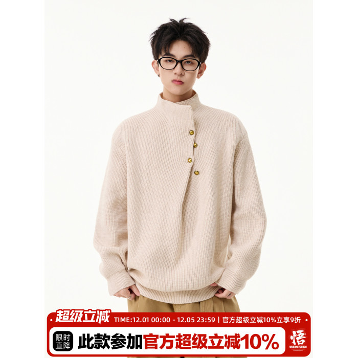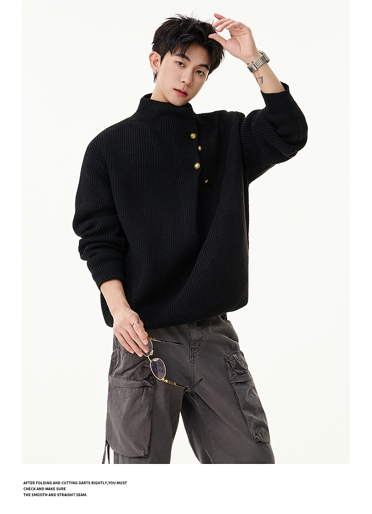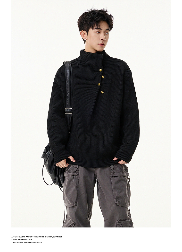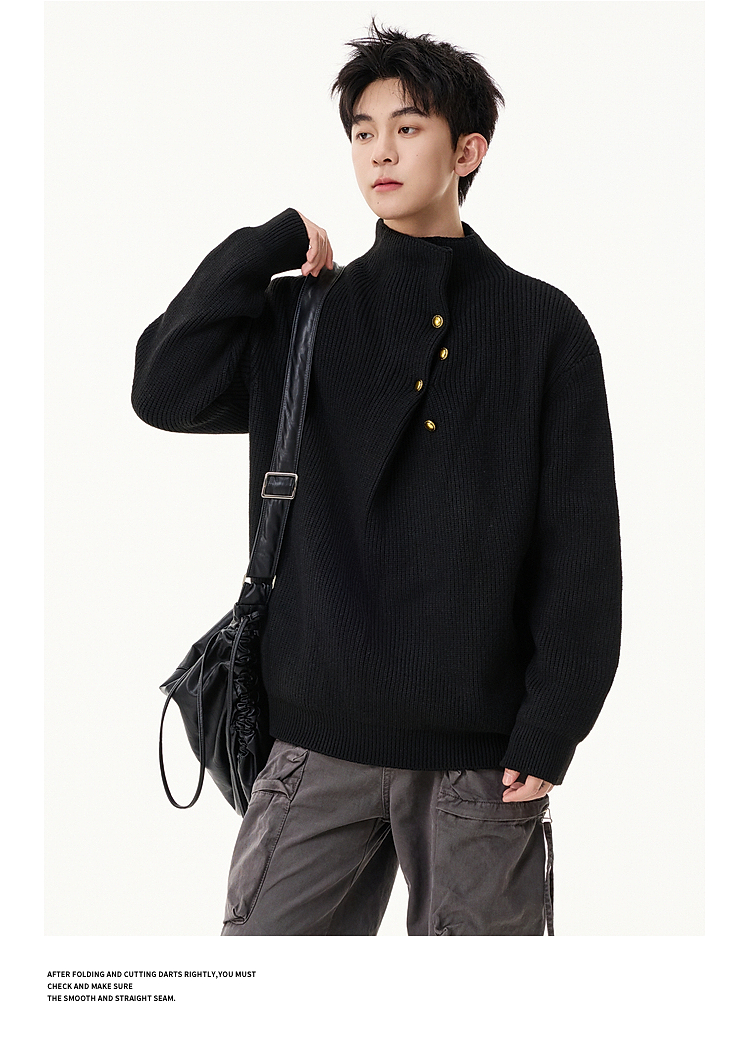 悟空有貨紐釦設計感半高領針織衫男秋季潮牌cleanfit小衆休閒毛衣