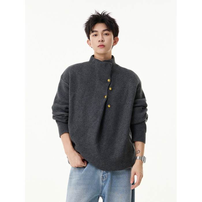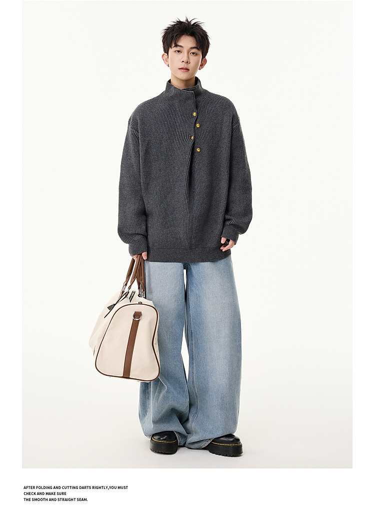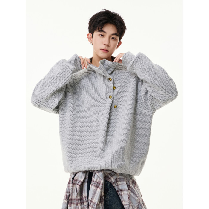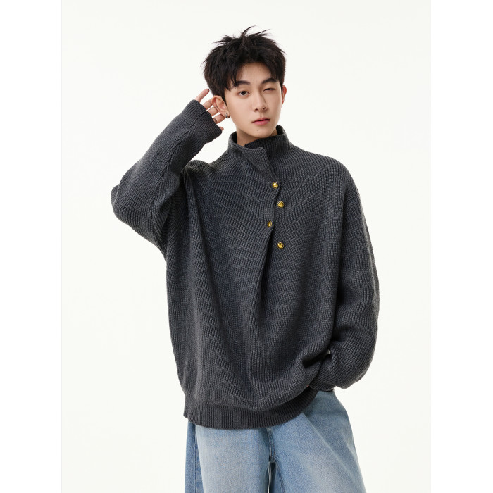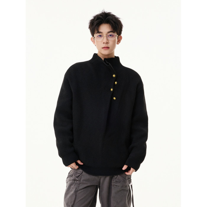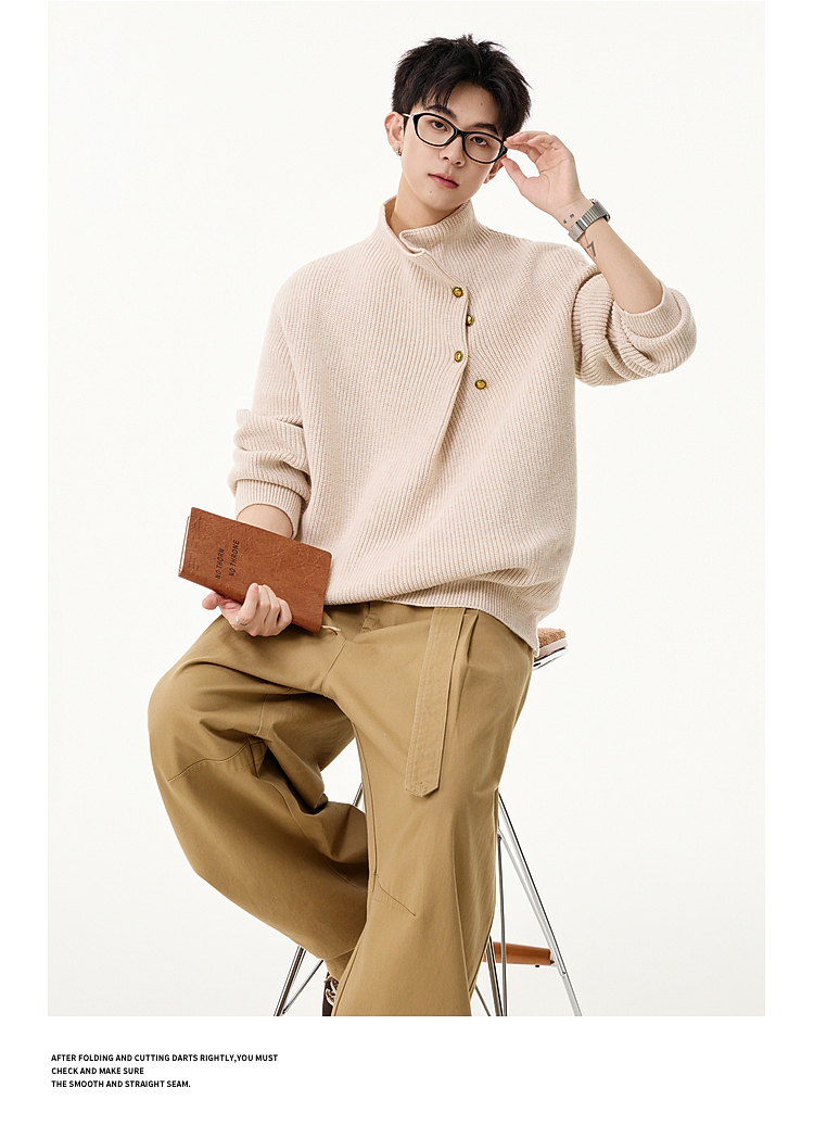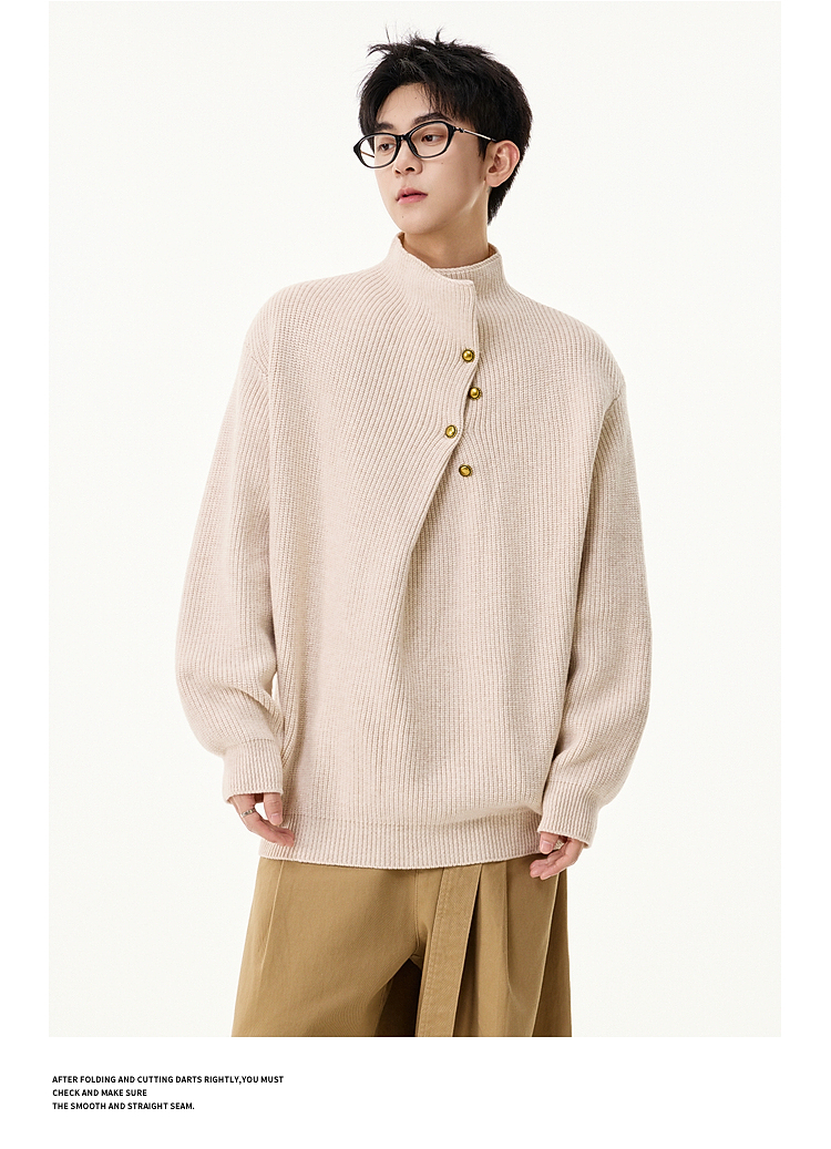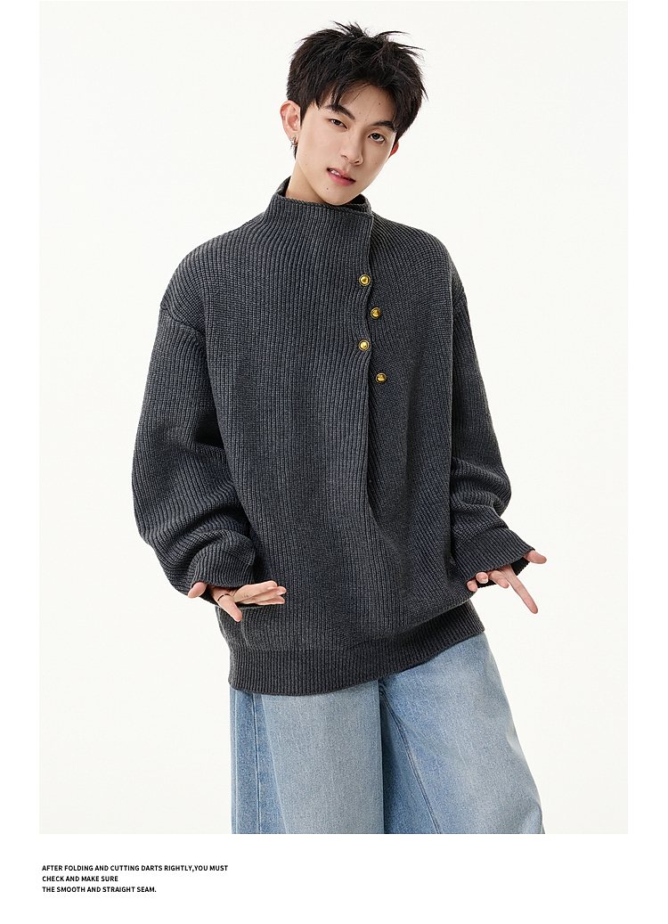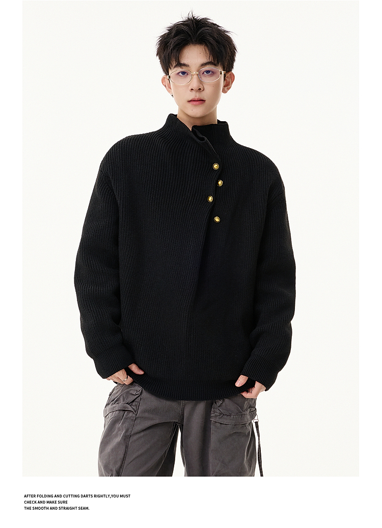 悟空有貨紐釦設計感半高領針織衫男秋季潮牌cleanfit小衆休閒毛衣