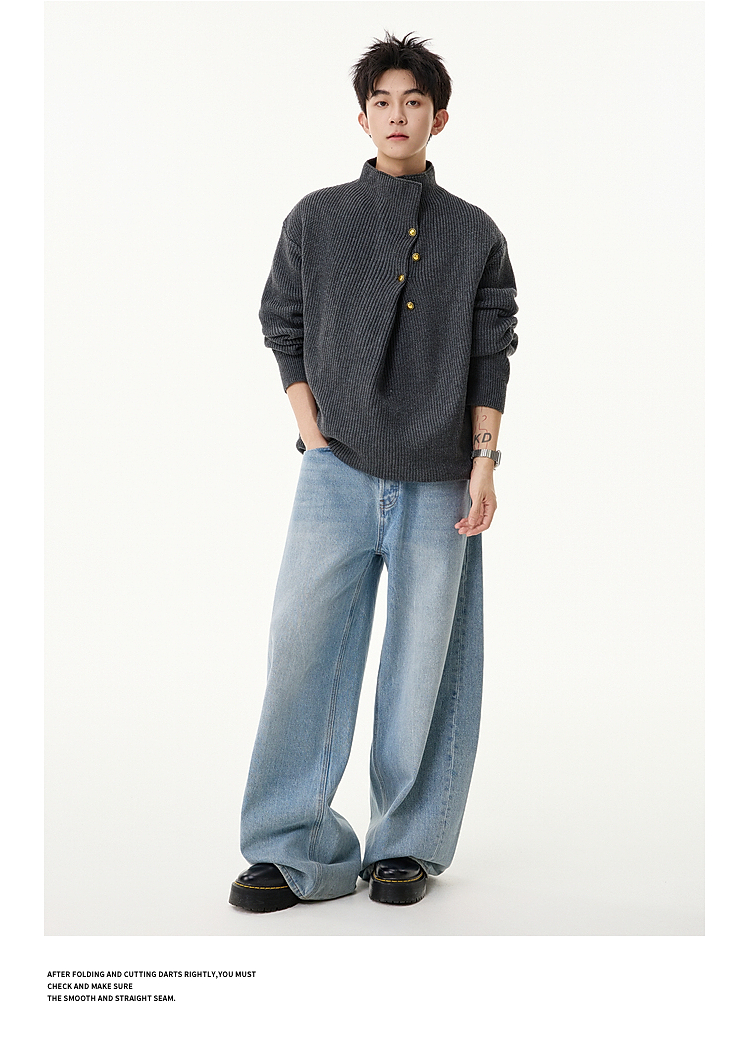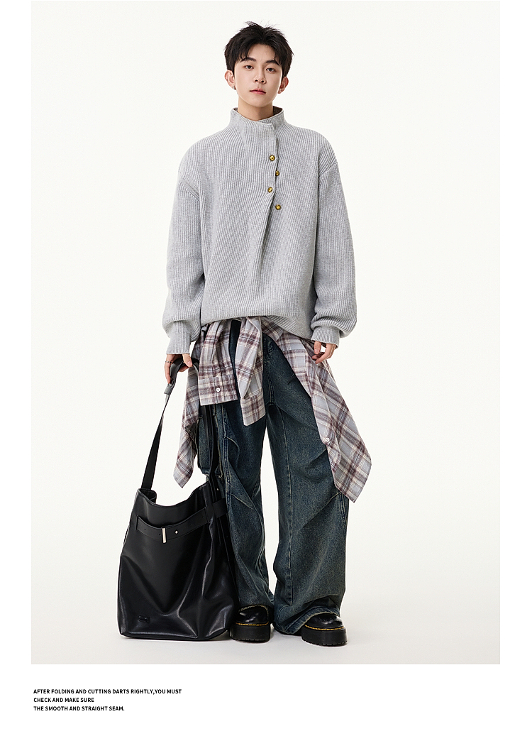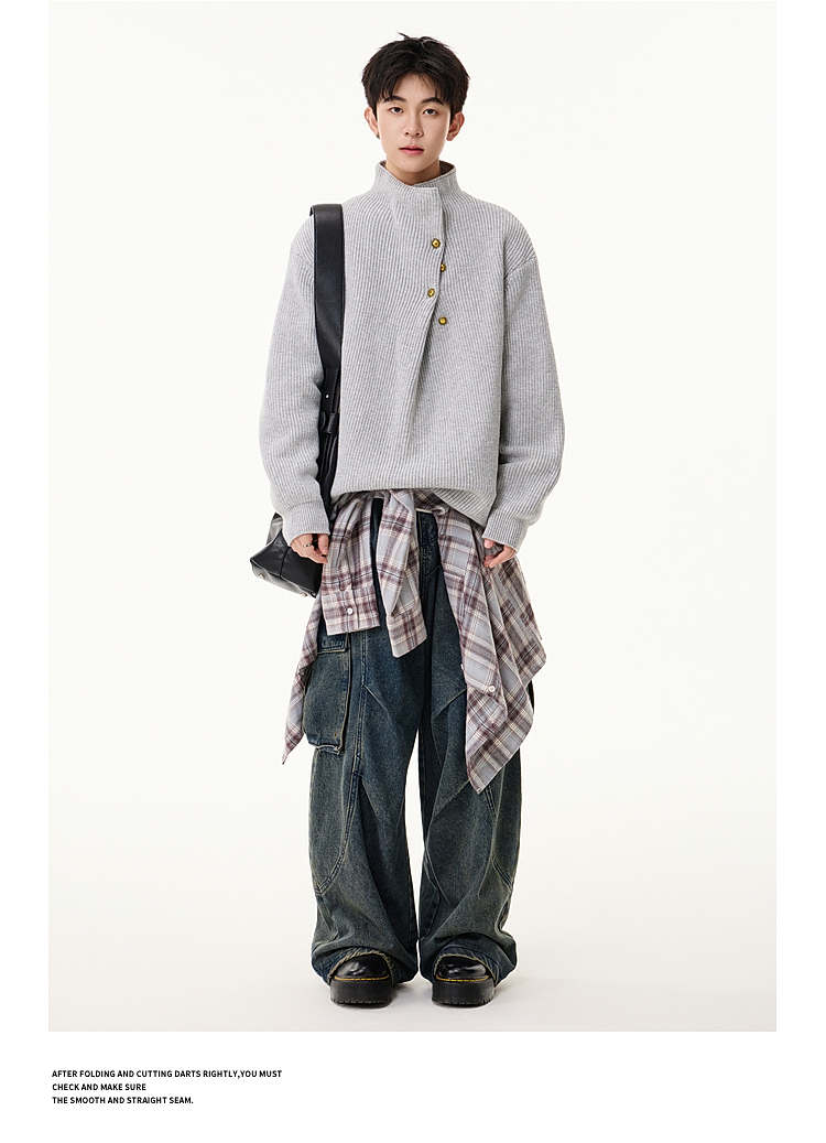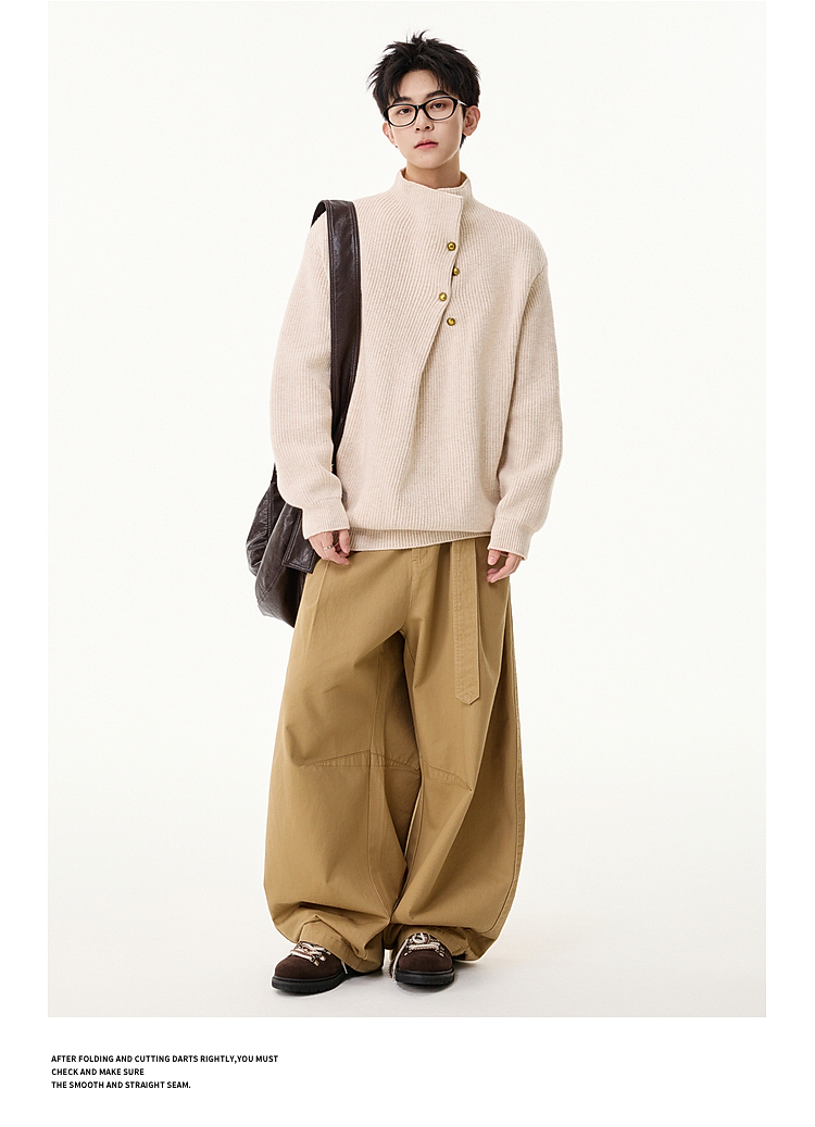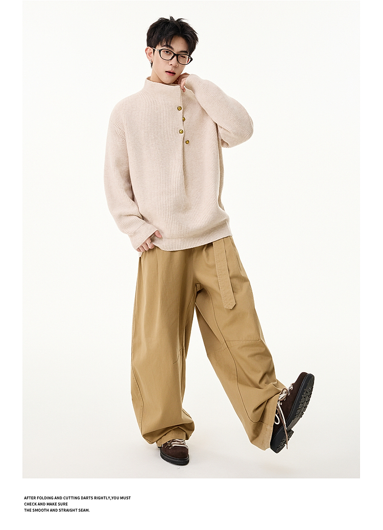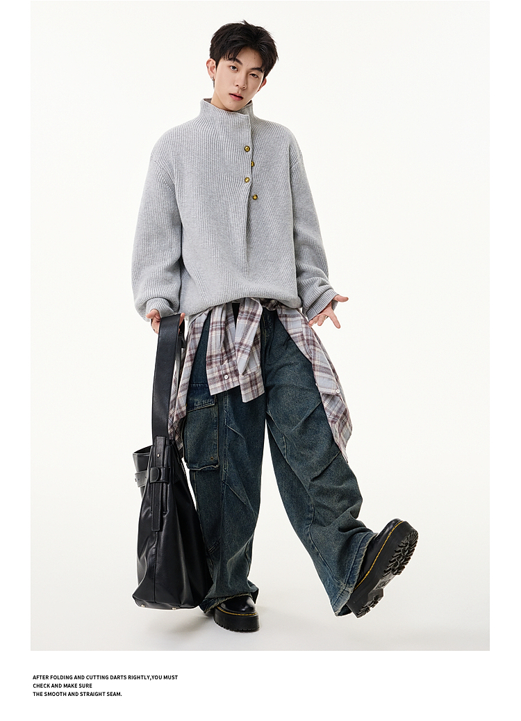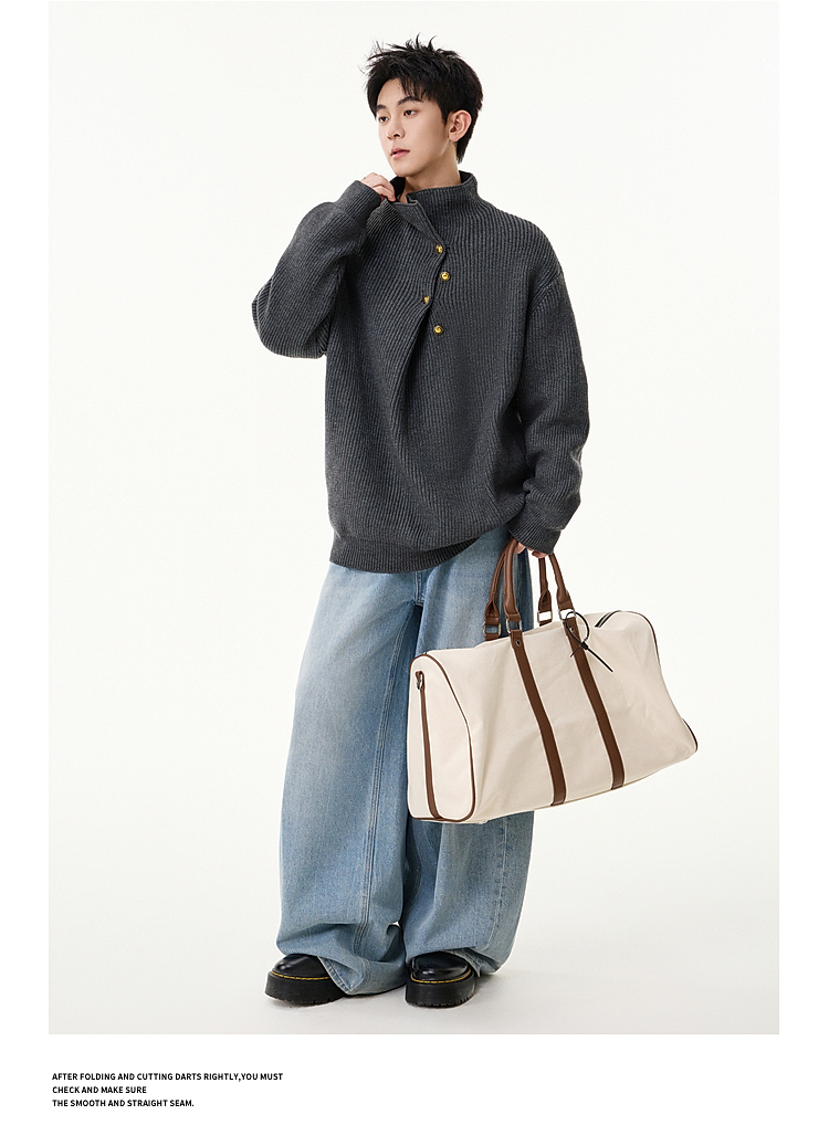 悟空有貨紐釦設計感半高領針織衫男秋季潮牌cleanfit小衆休閒毛衣