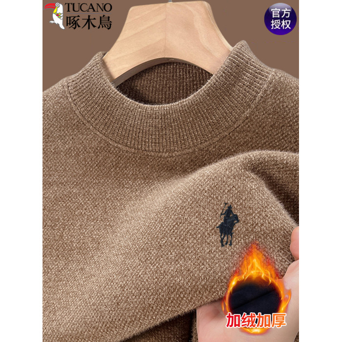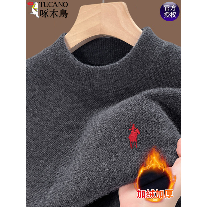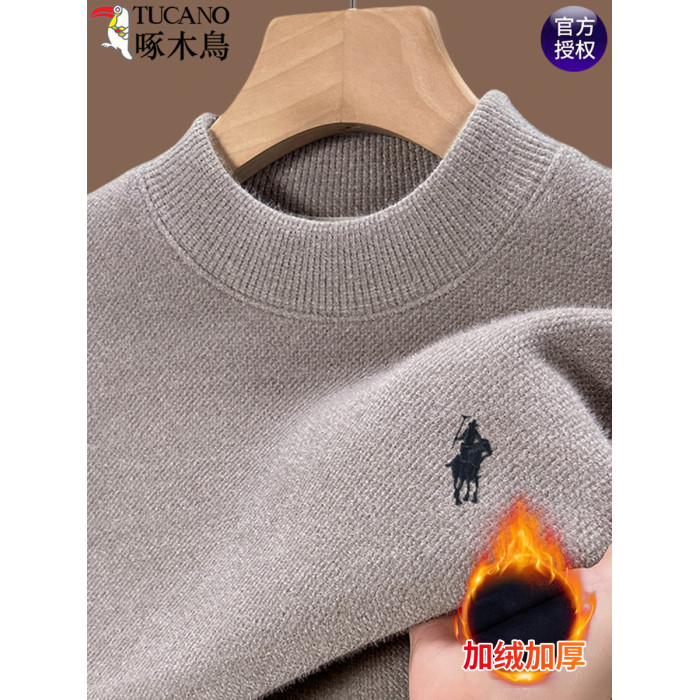啄木鳥一體絨半高領毛衣男加厚加絨保暖上衣潮流雪尼爾針織打底衫
