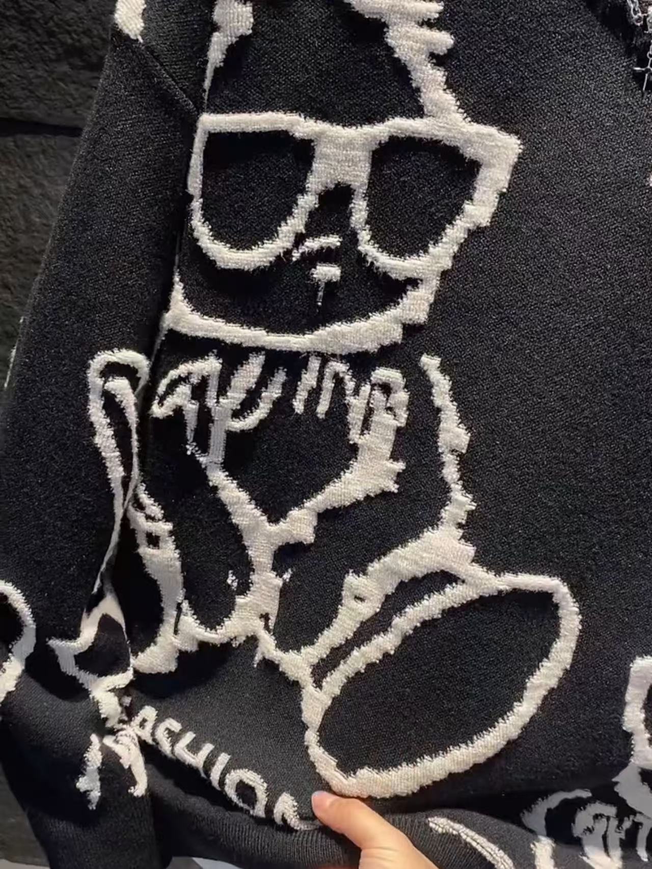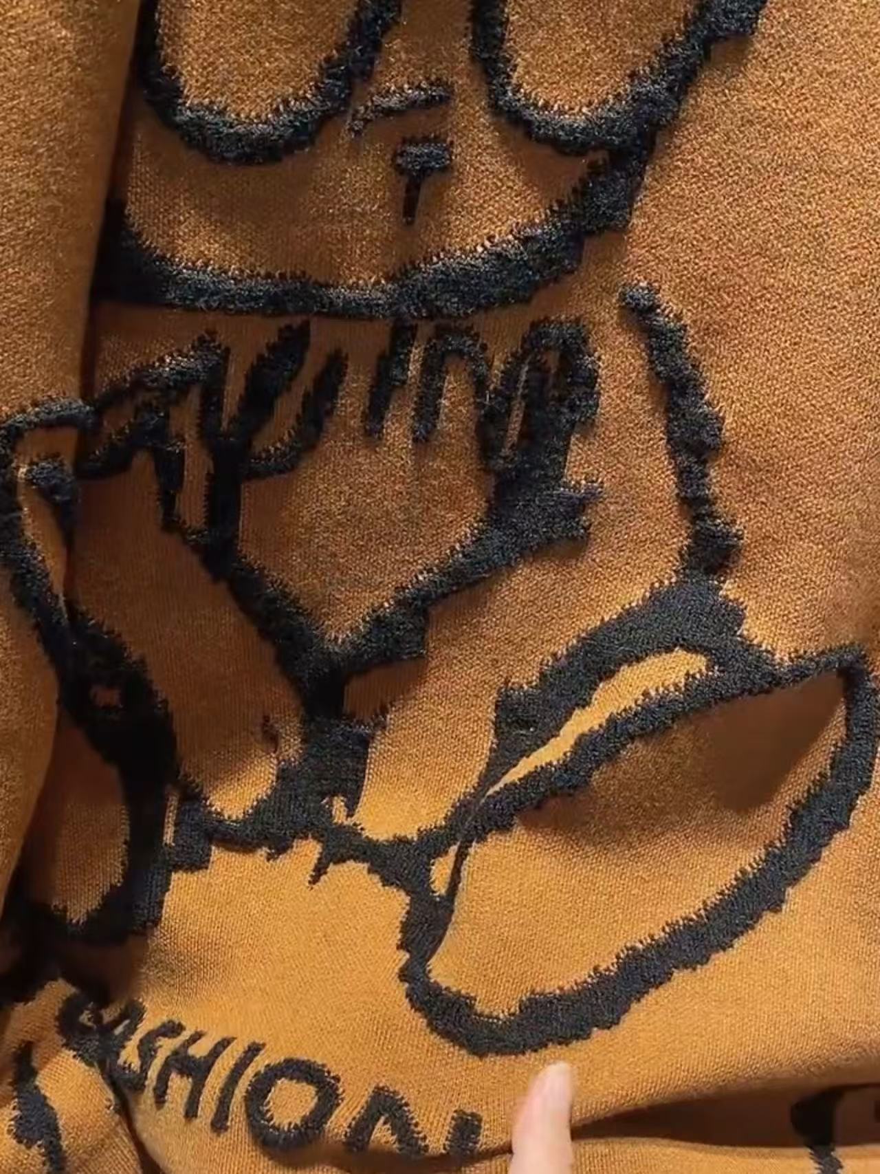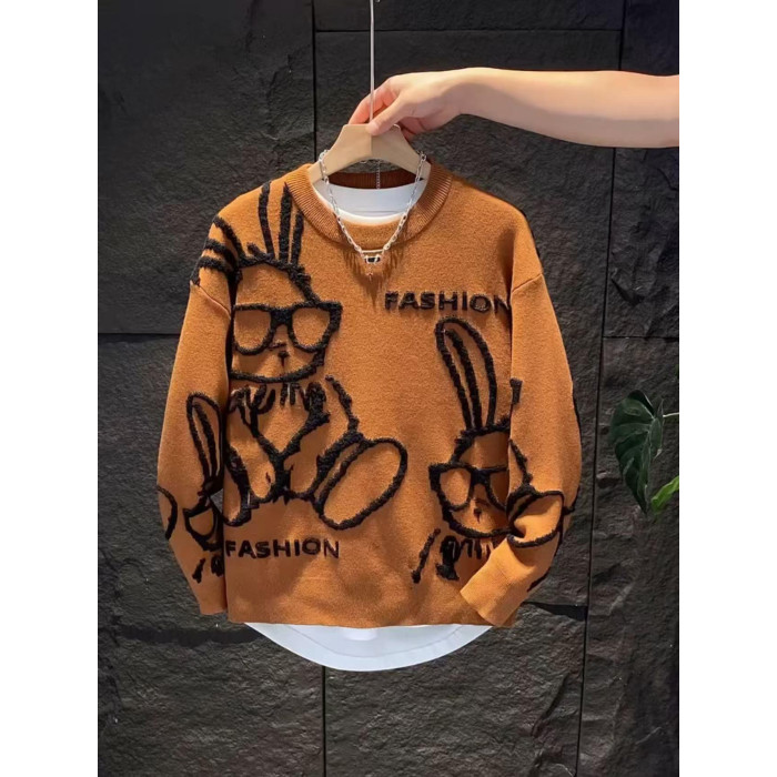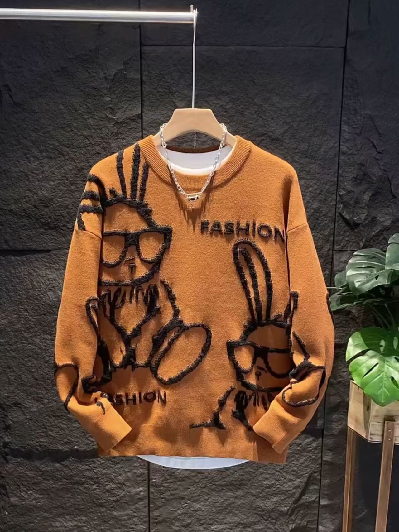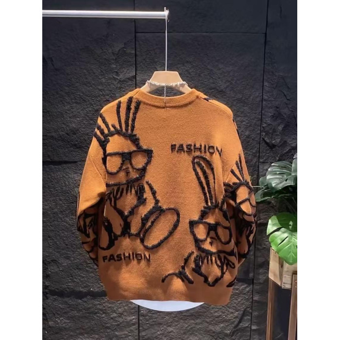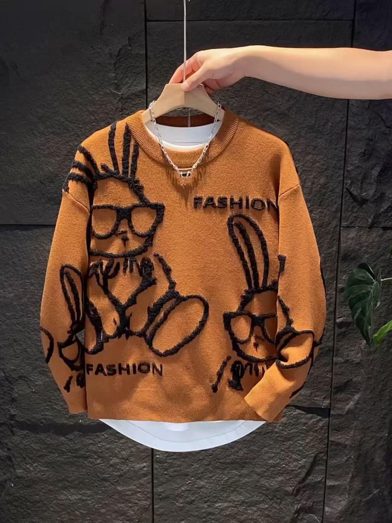 潮牌卡通印花兔子毛衣男秋冬情侶潮流套頭上衣休閒百搭圓領針織衫