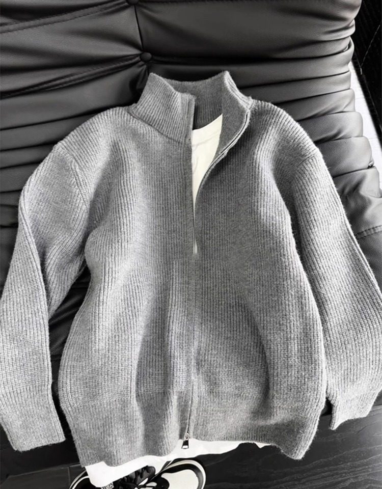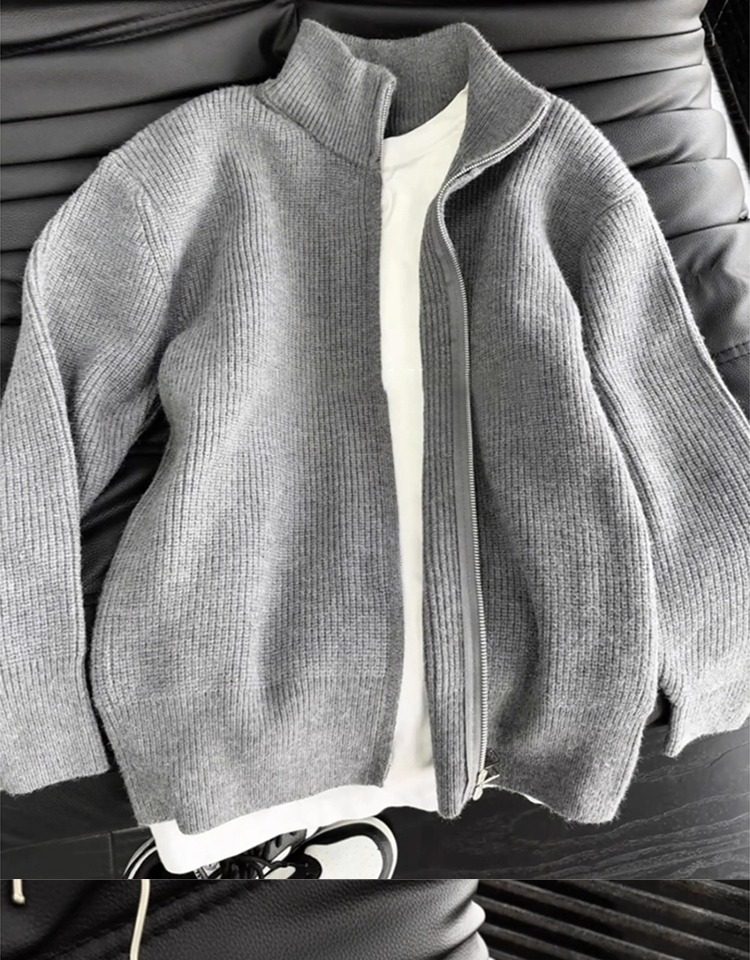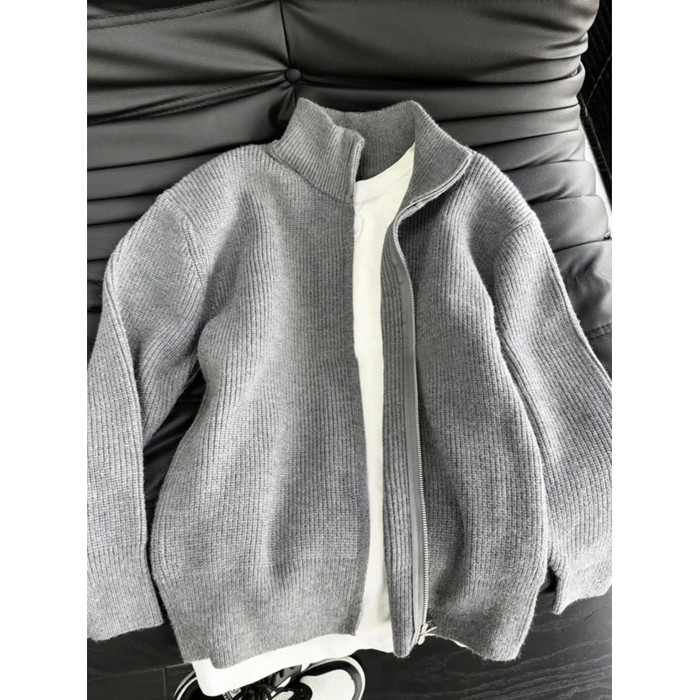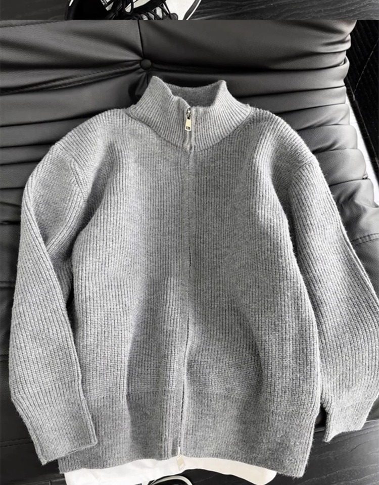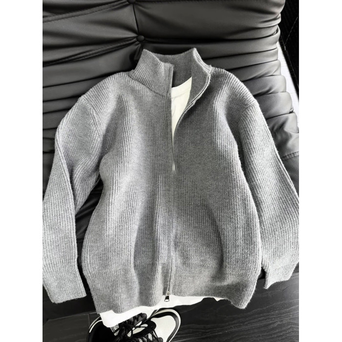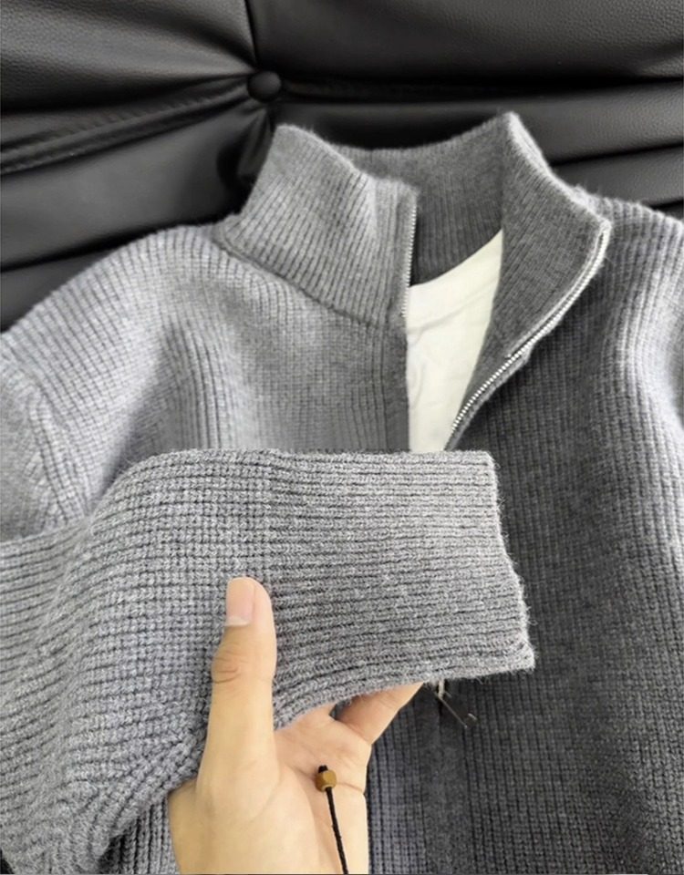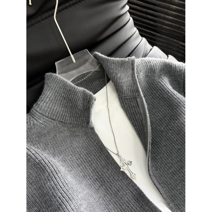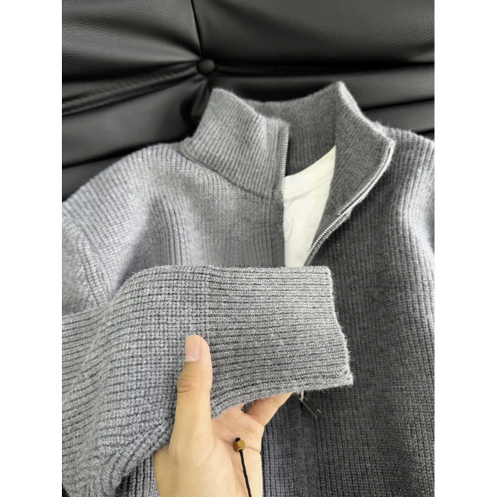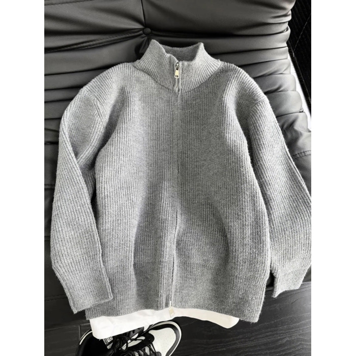 cleanfit灰色拉鍊毛衣男款秋冬慵嬾風加厚針織開衫外套高級感夾克